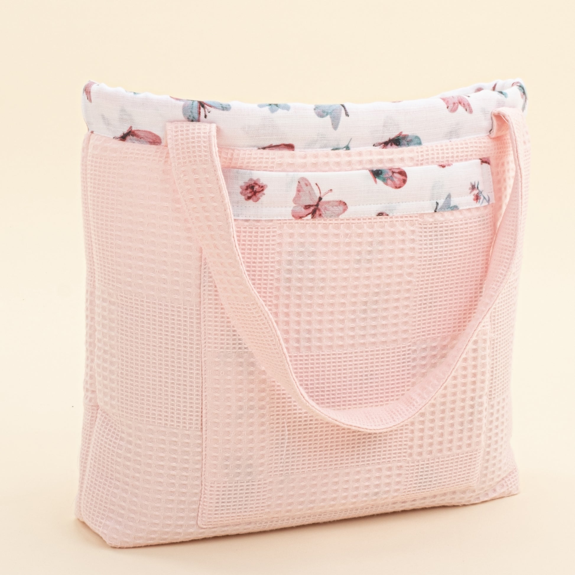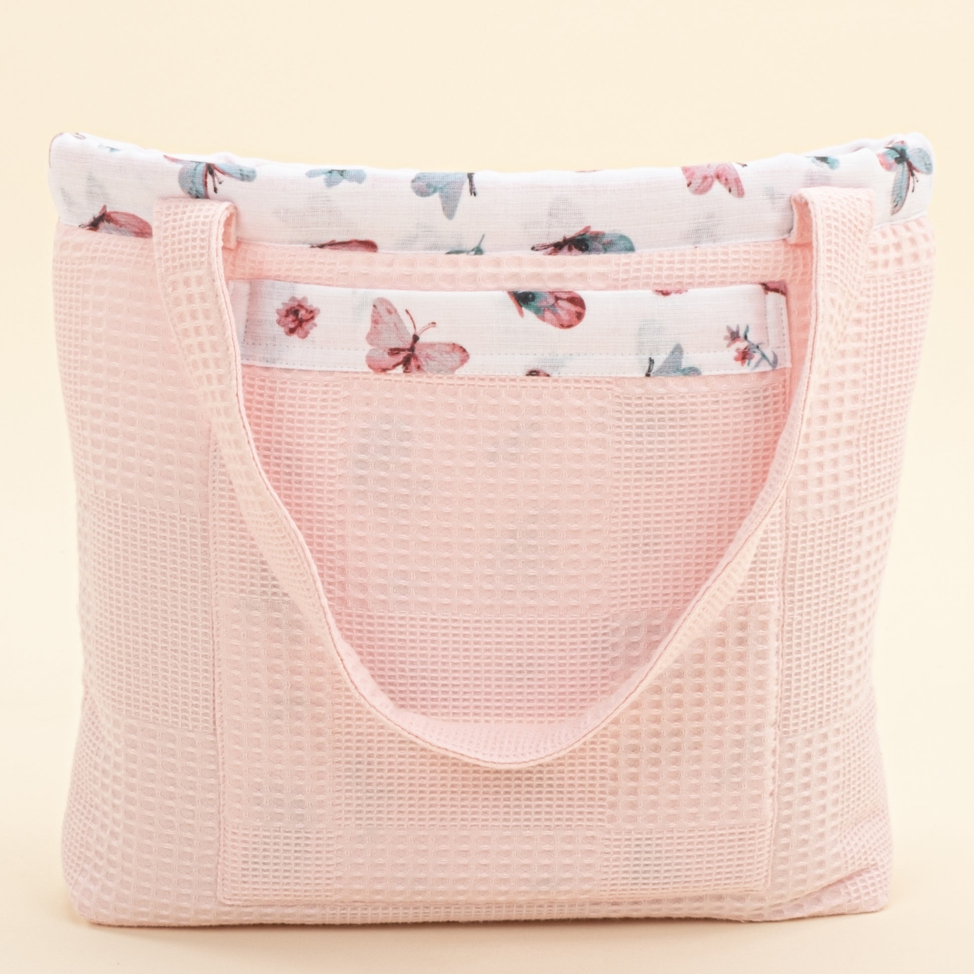 Bebek Bakım Çantası - Pembe Waffle - Kelebekler
