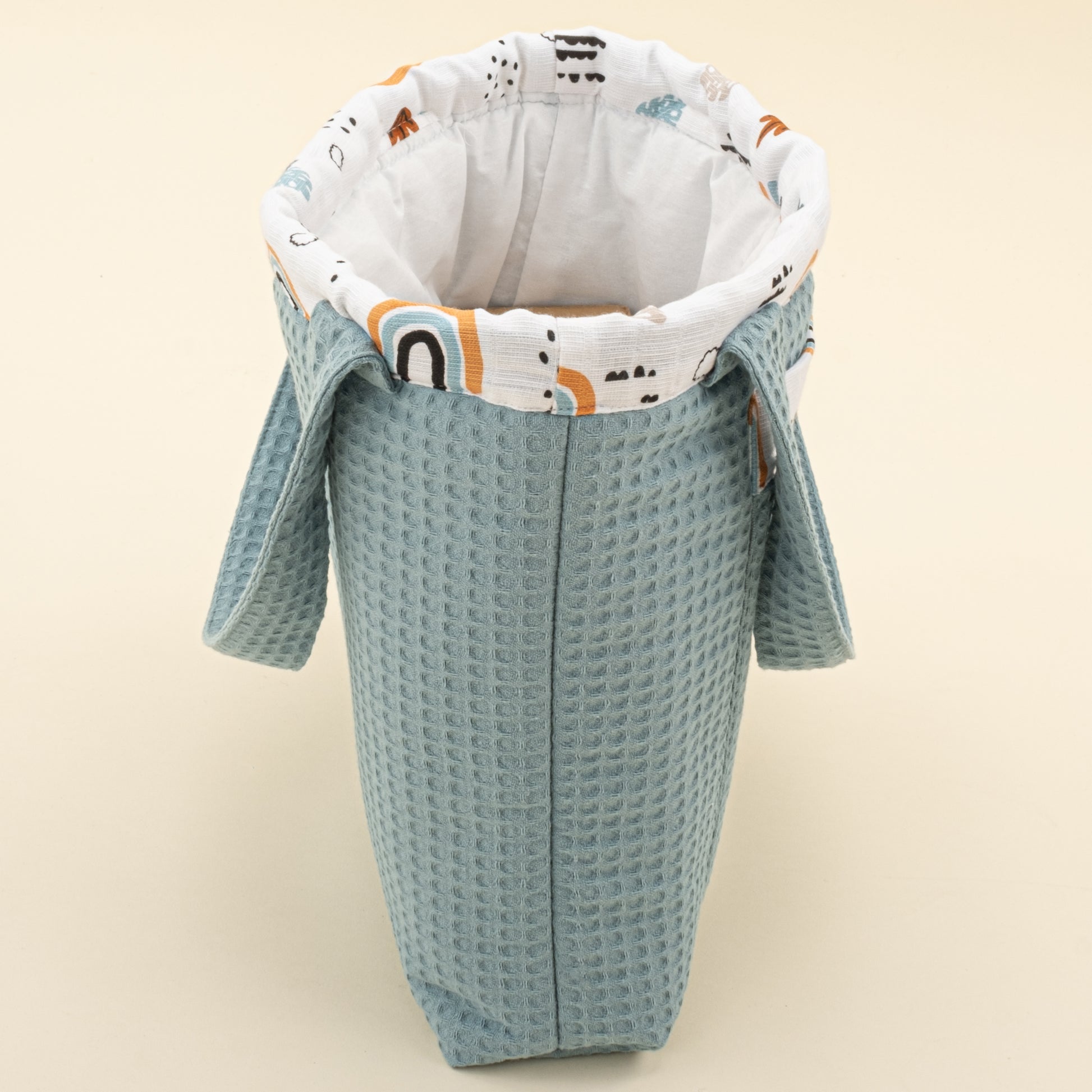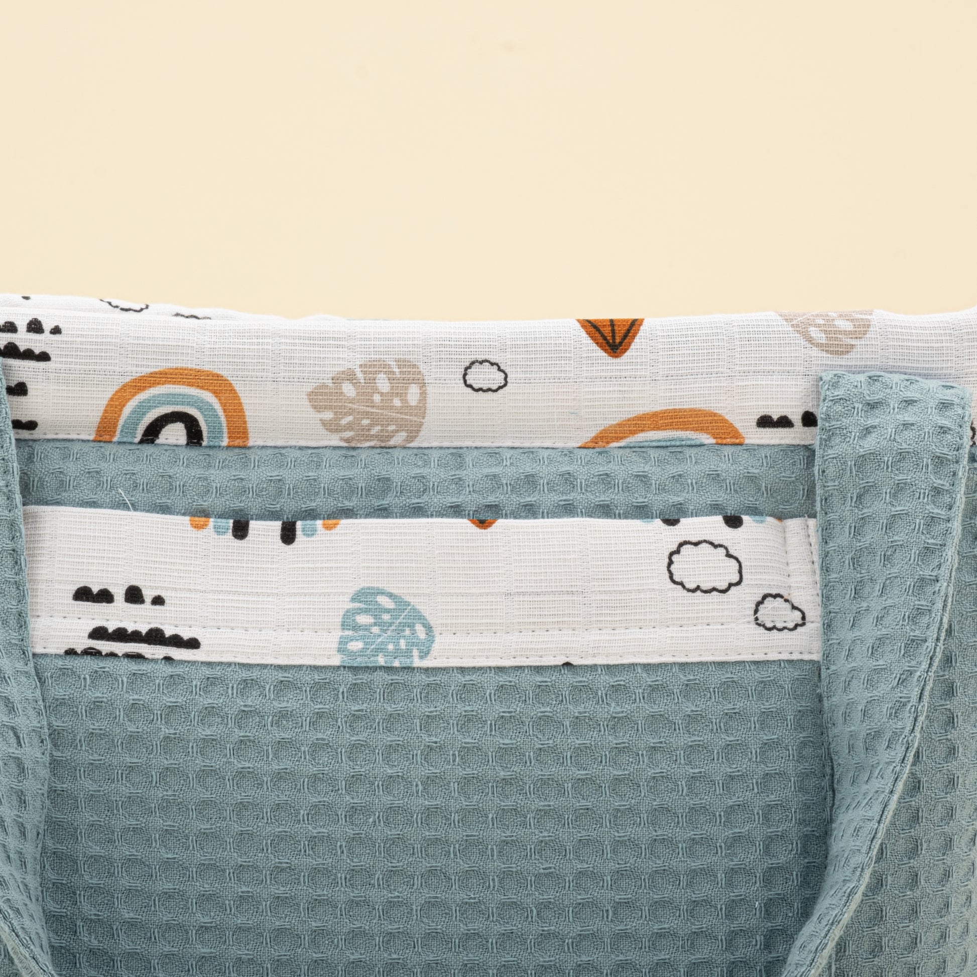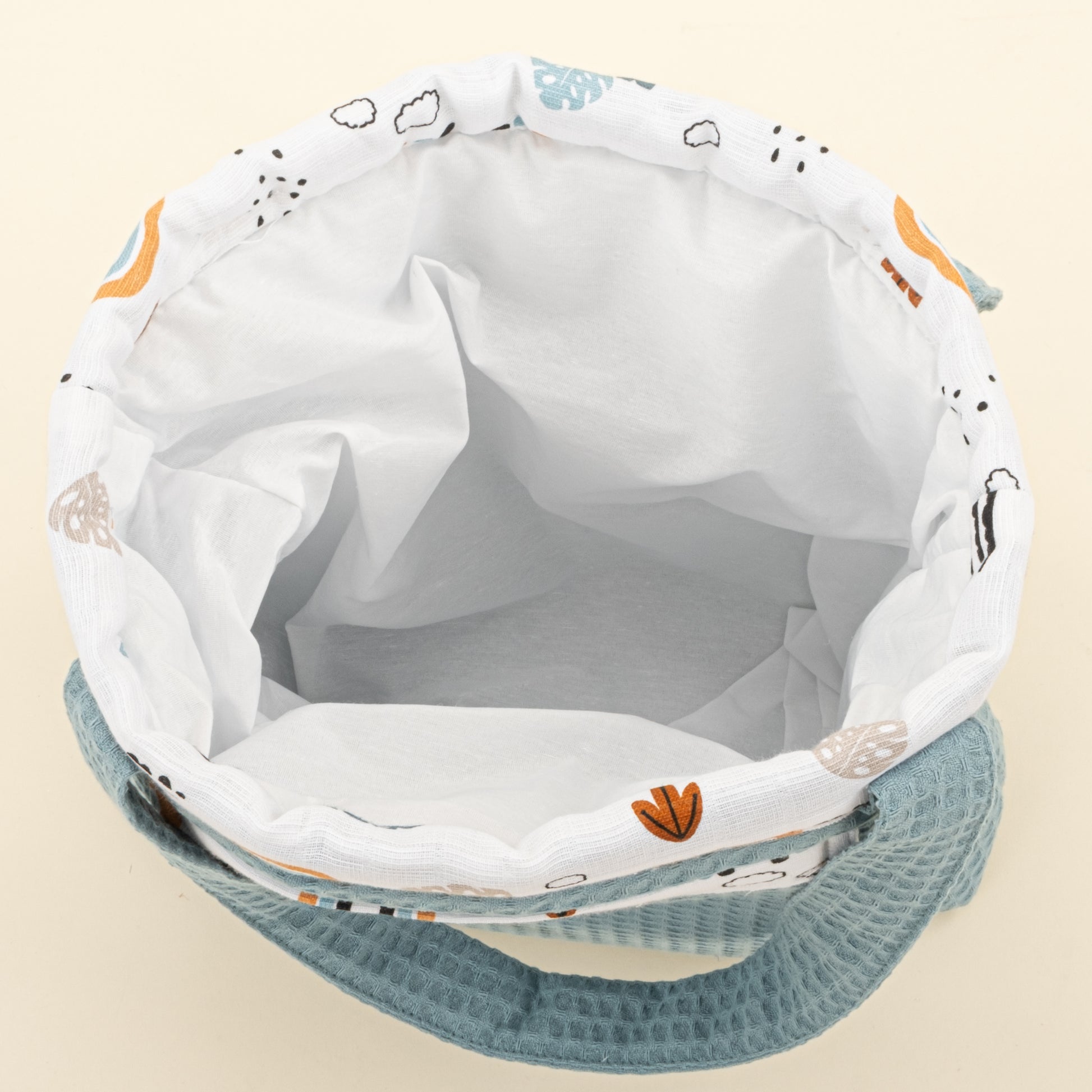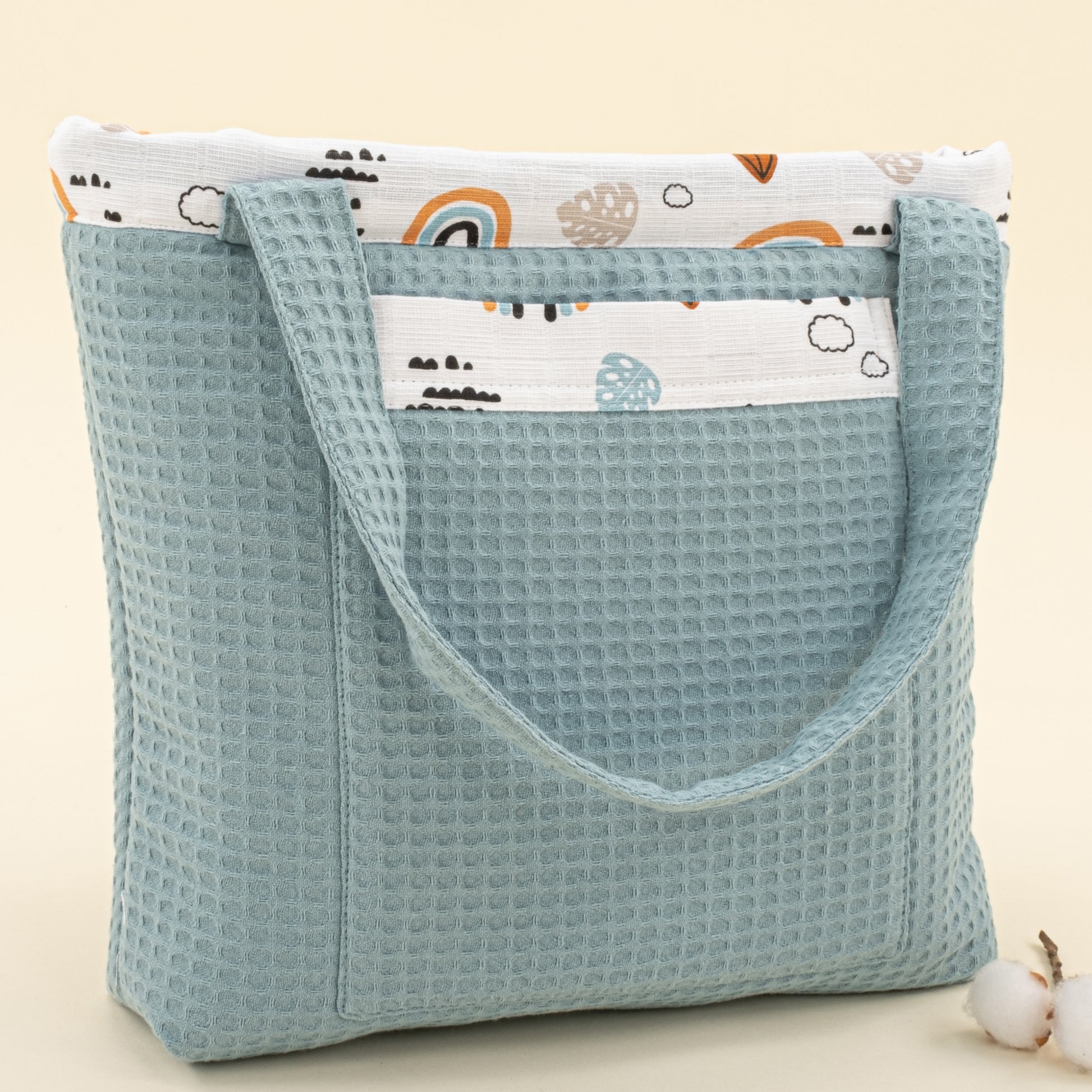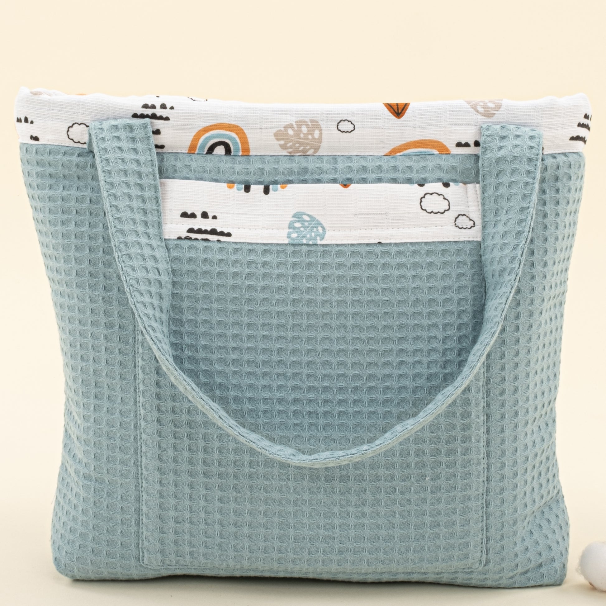 bebek bezi, yedek giysi, ıslak mendil, emzik vb. eşyalarınızı doğal dokulu müslin çantalarımızda taşıyabilirsiniz.