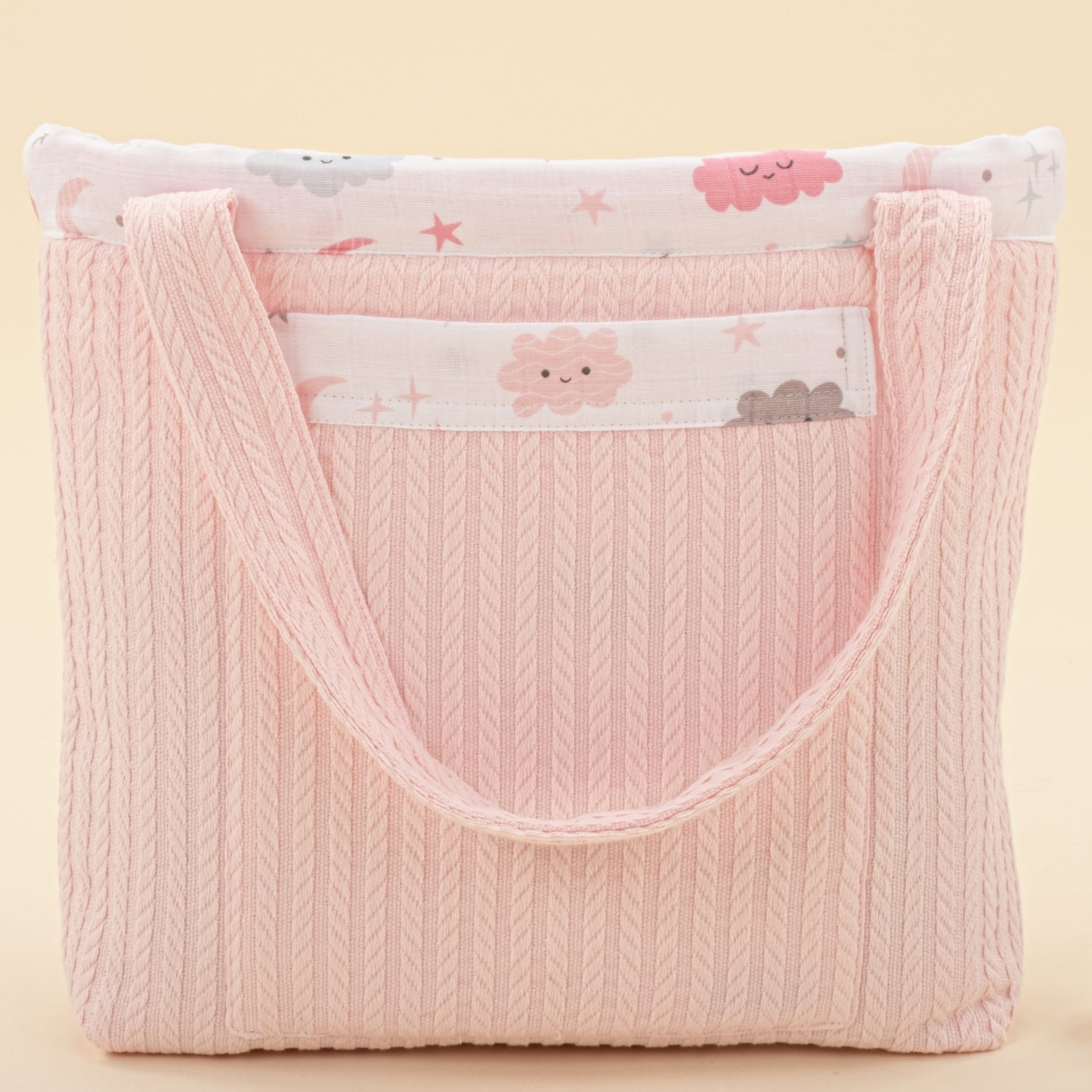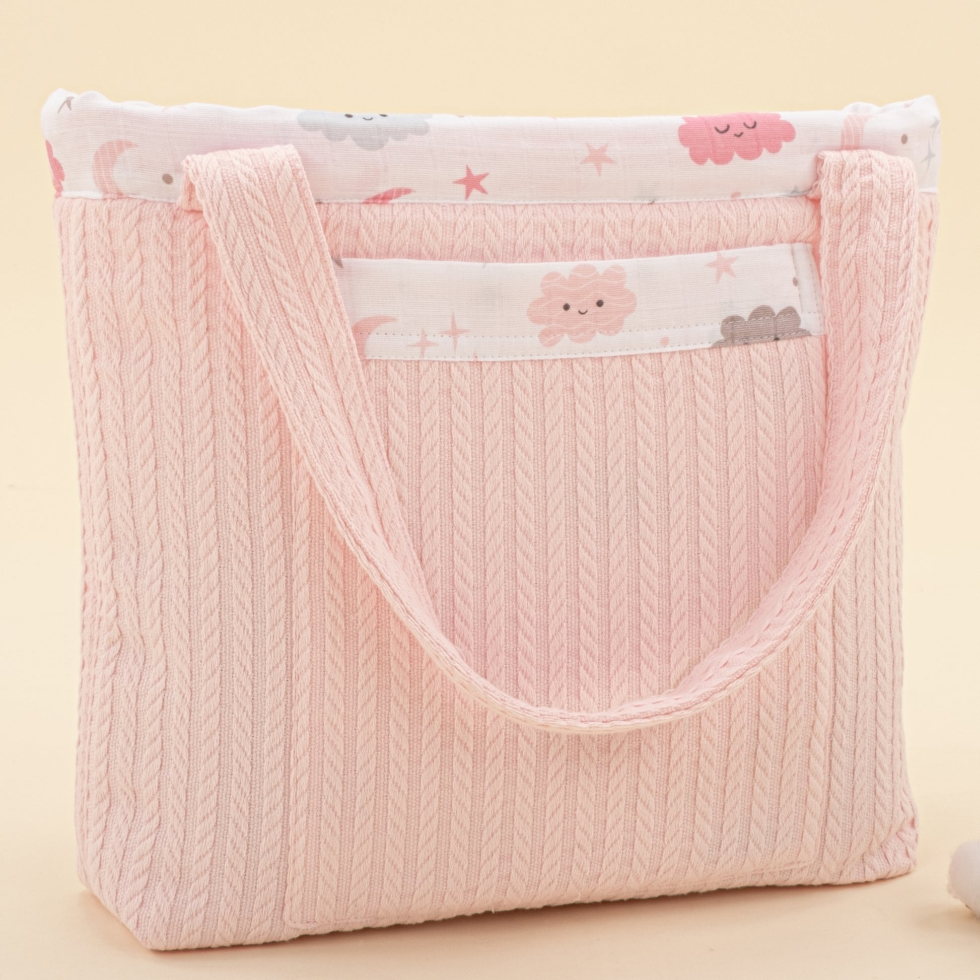 Bebek Bakım Çantası - Şeker Pembe Örgü - Pembe Bulut