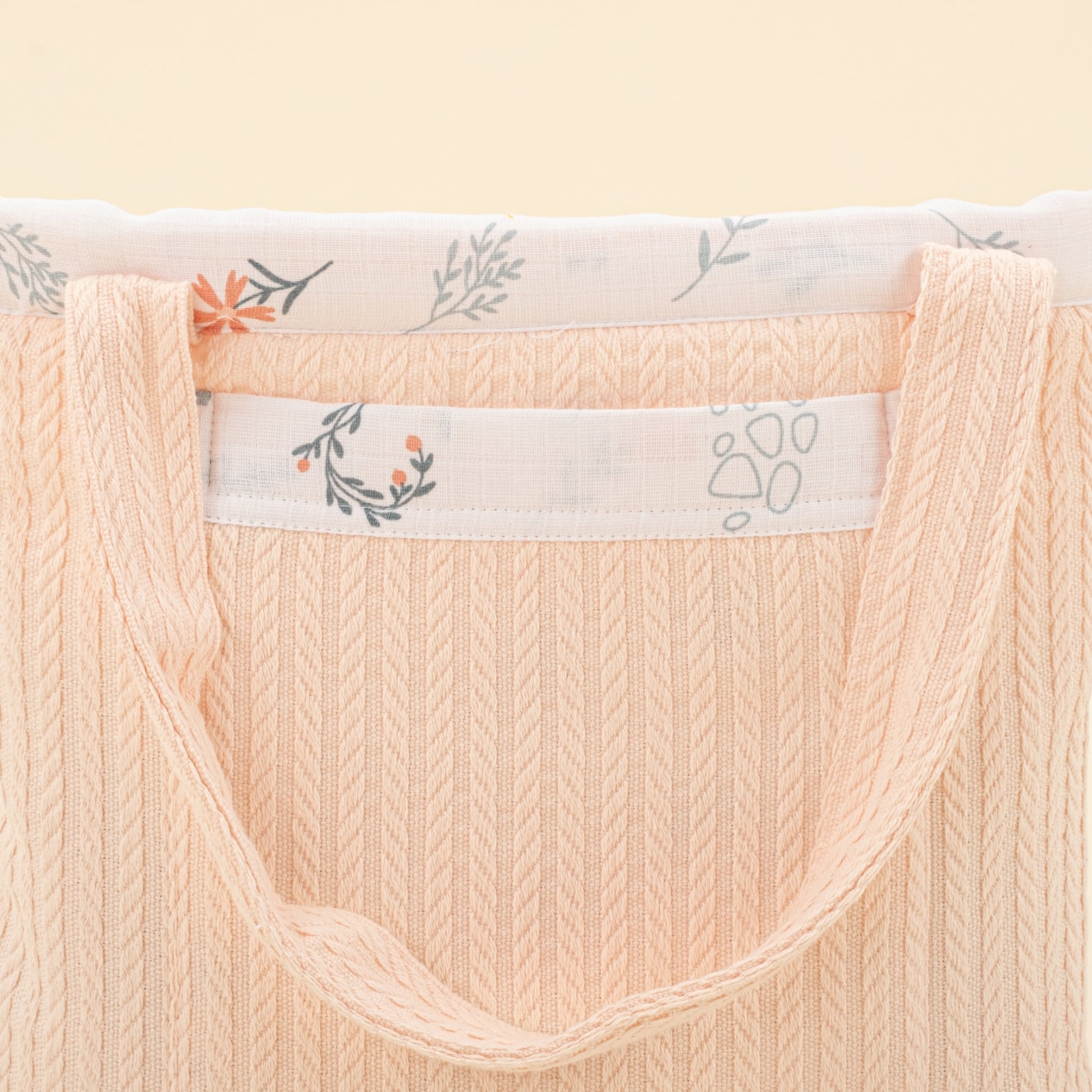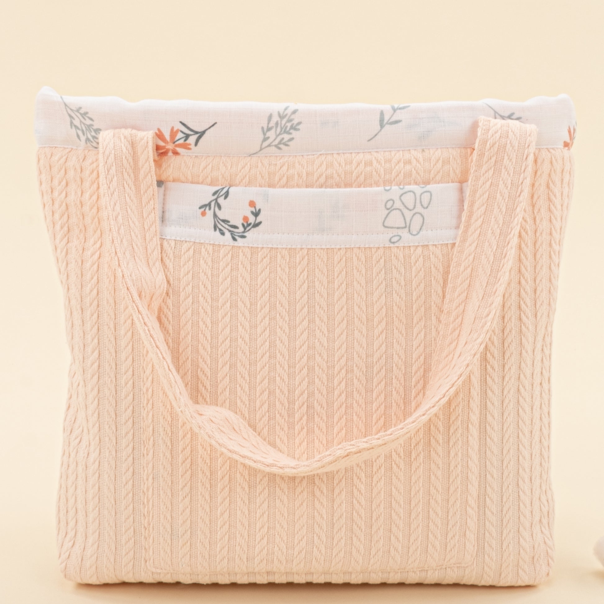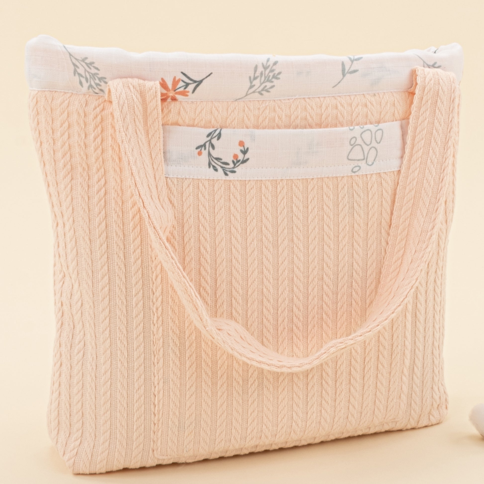 bebek bezi, yedek giysi, ıslak mendil, emzik vb. eşyalarınızı doğal dokulu müslin çantalarımızda taşıyabilirsiniz.