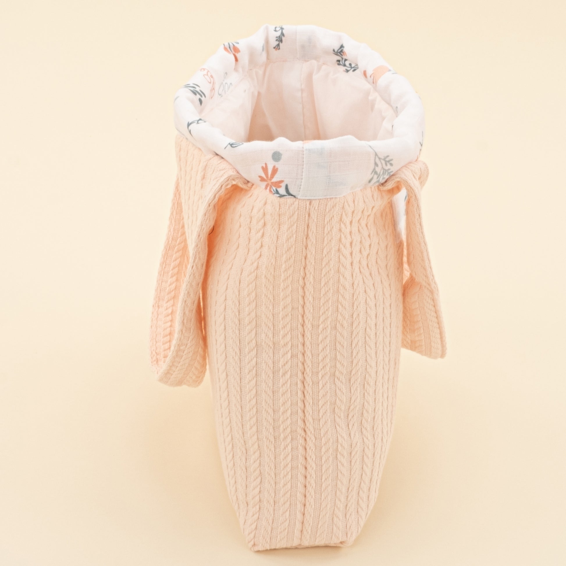 Bebek Bakım Çantası - Somon Örgü - Yeşil Çiçekler