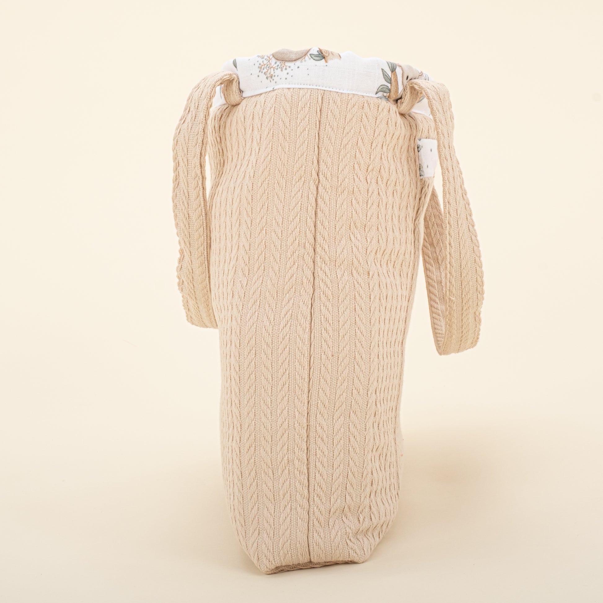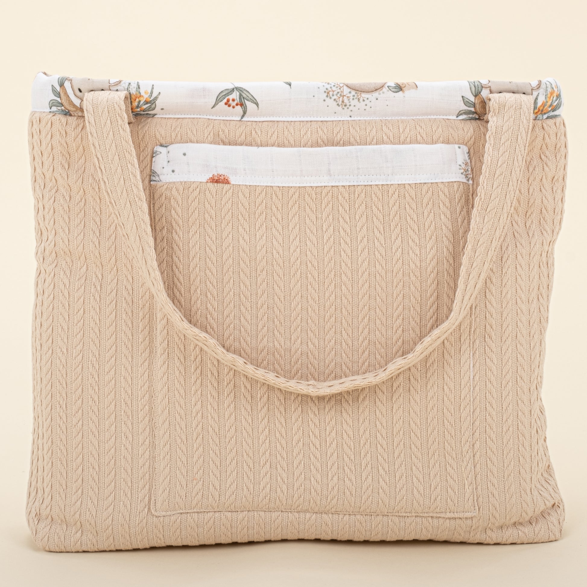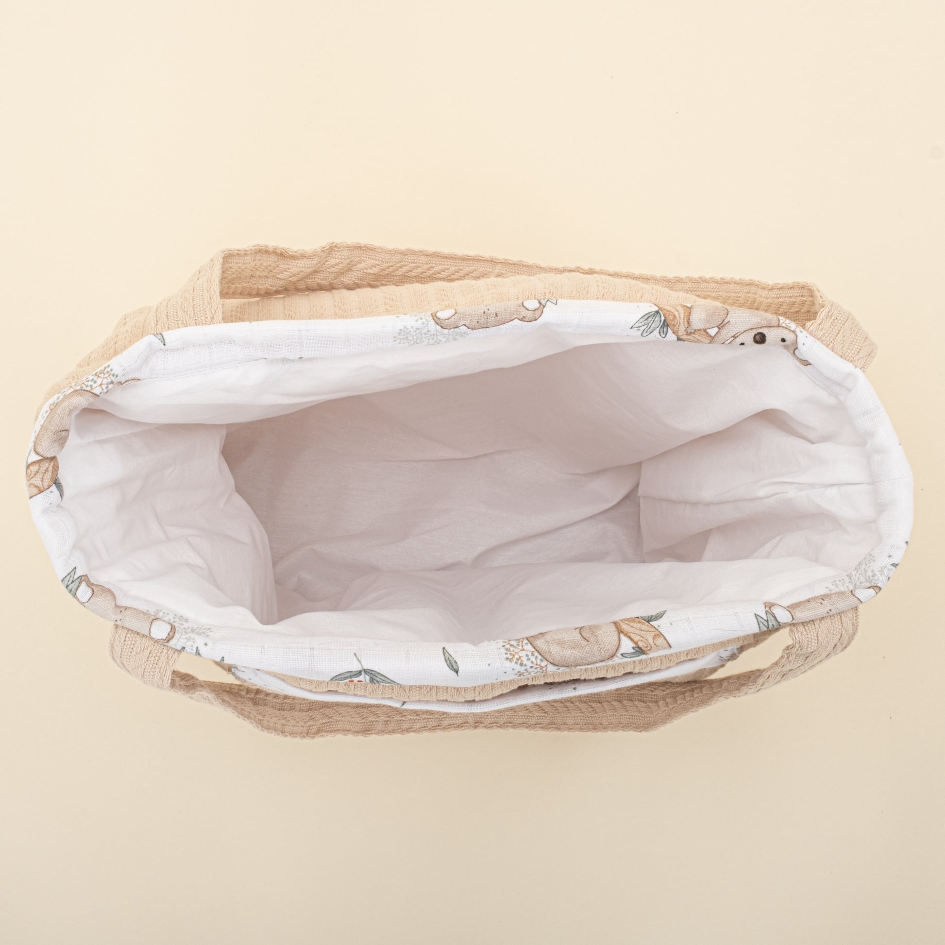 bebek bezi, yedek giysi, ıslak mendil, emzik vb. eşyalarınızı doğal dokulu müslin çantalarımızda taşıyabilirsiniz.