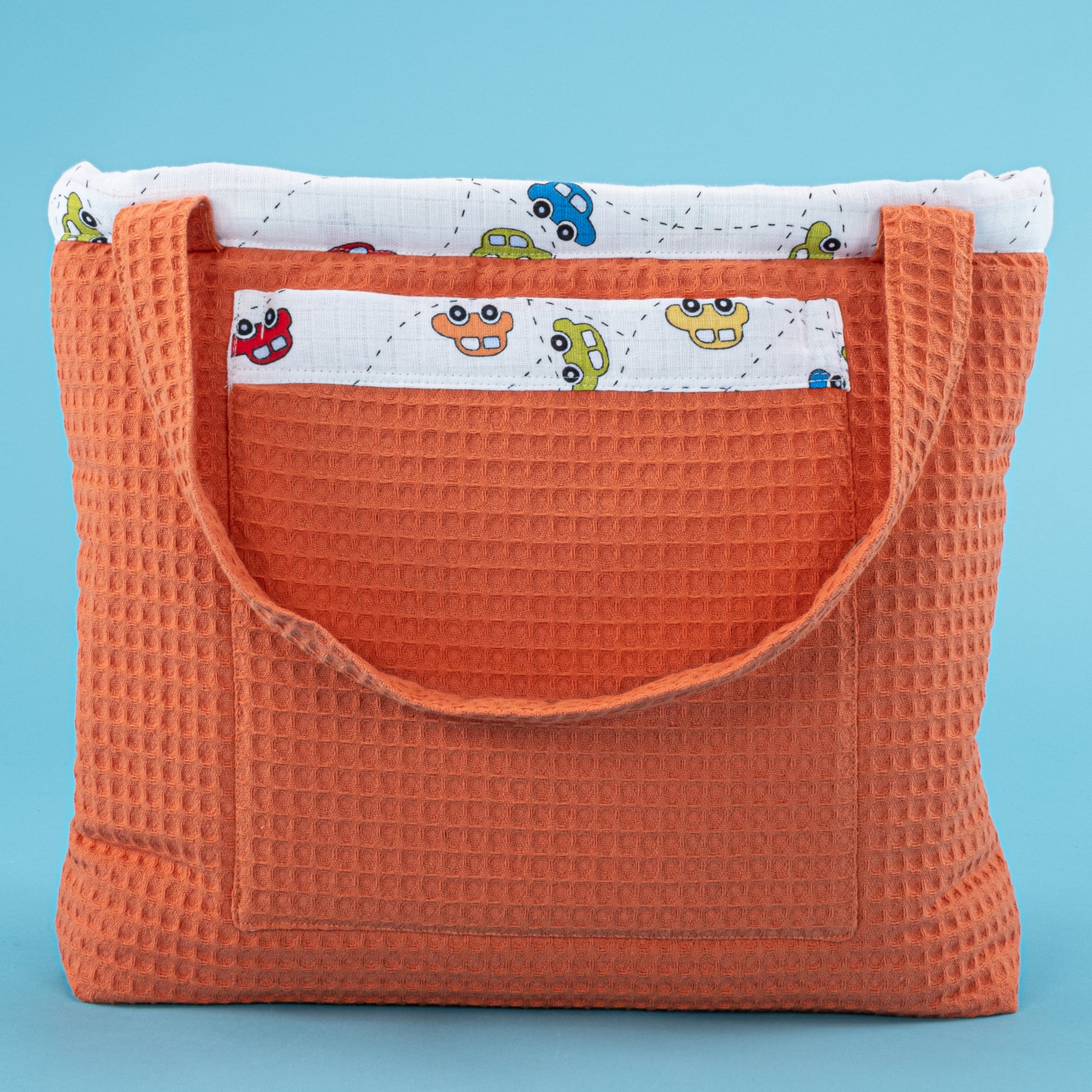 Bebek Bakım Çantası - Turuncu Petek - Renkli Arabalar