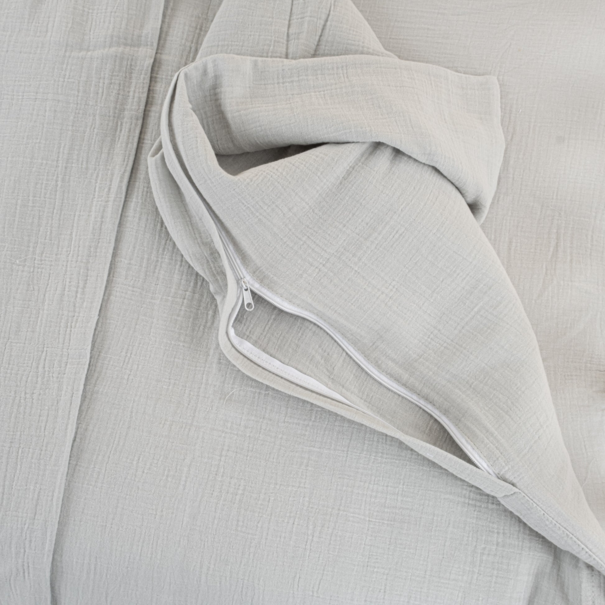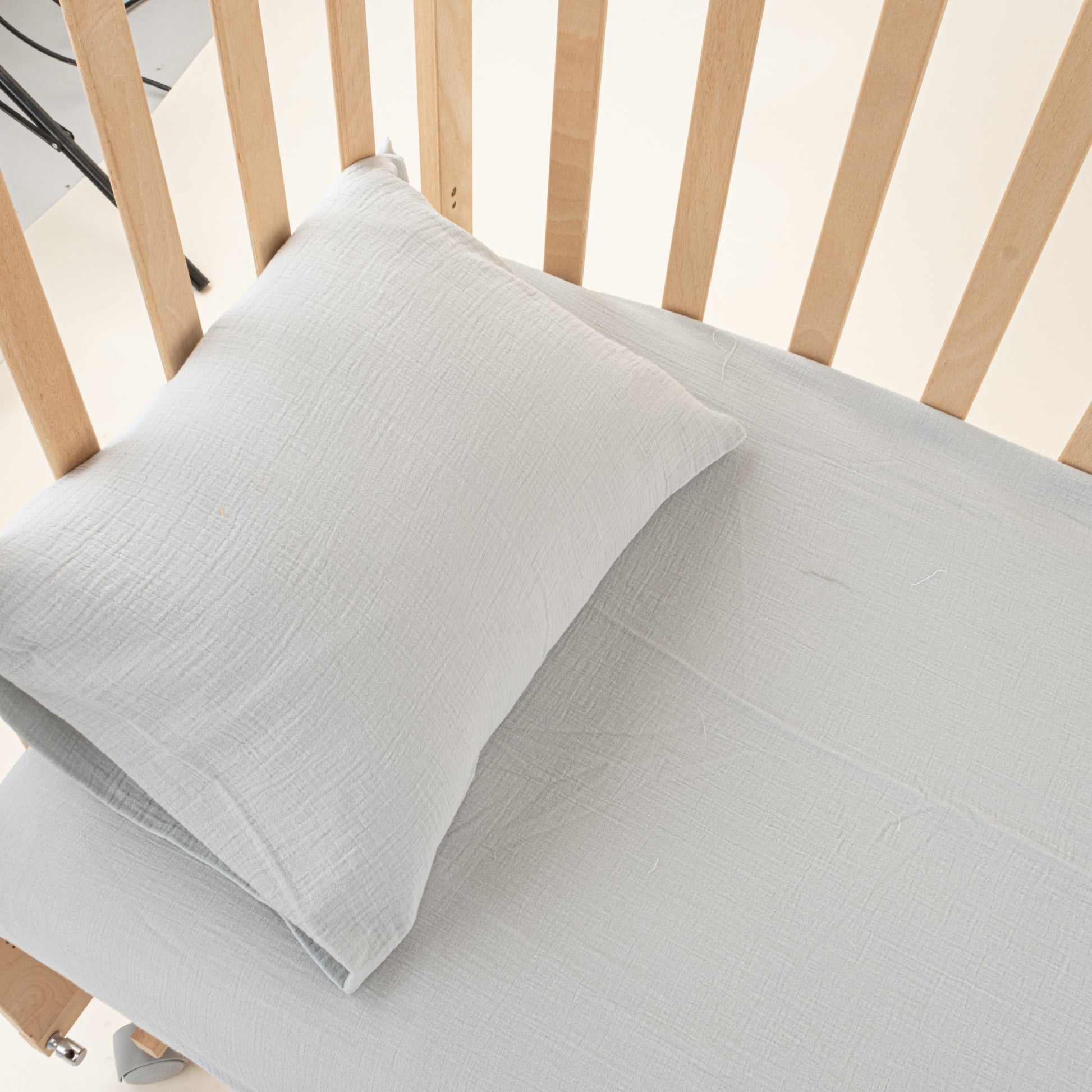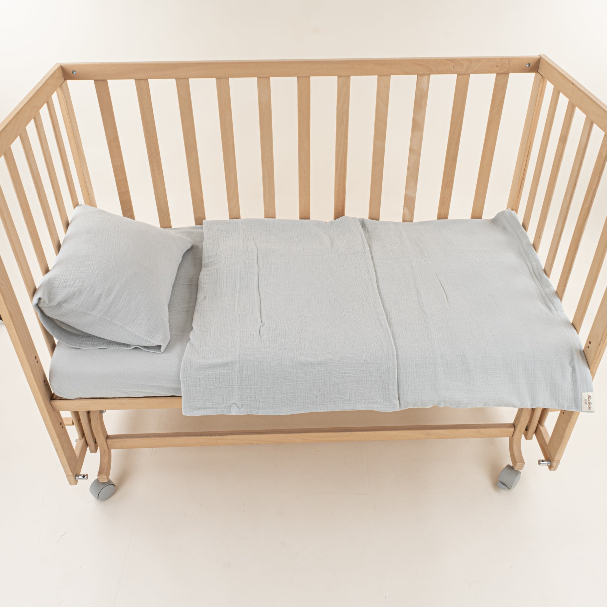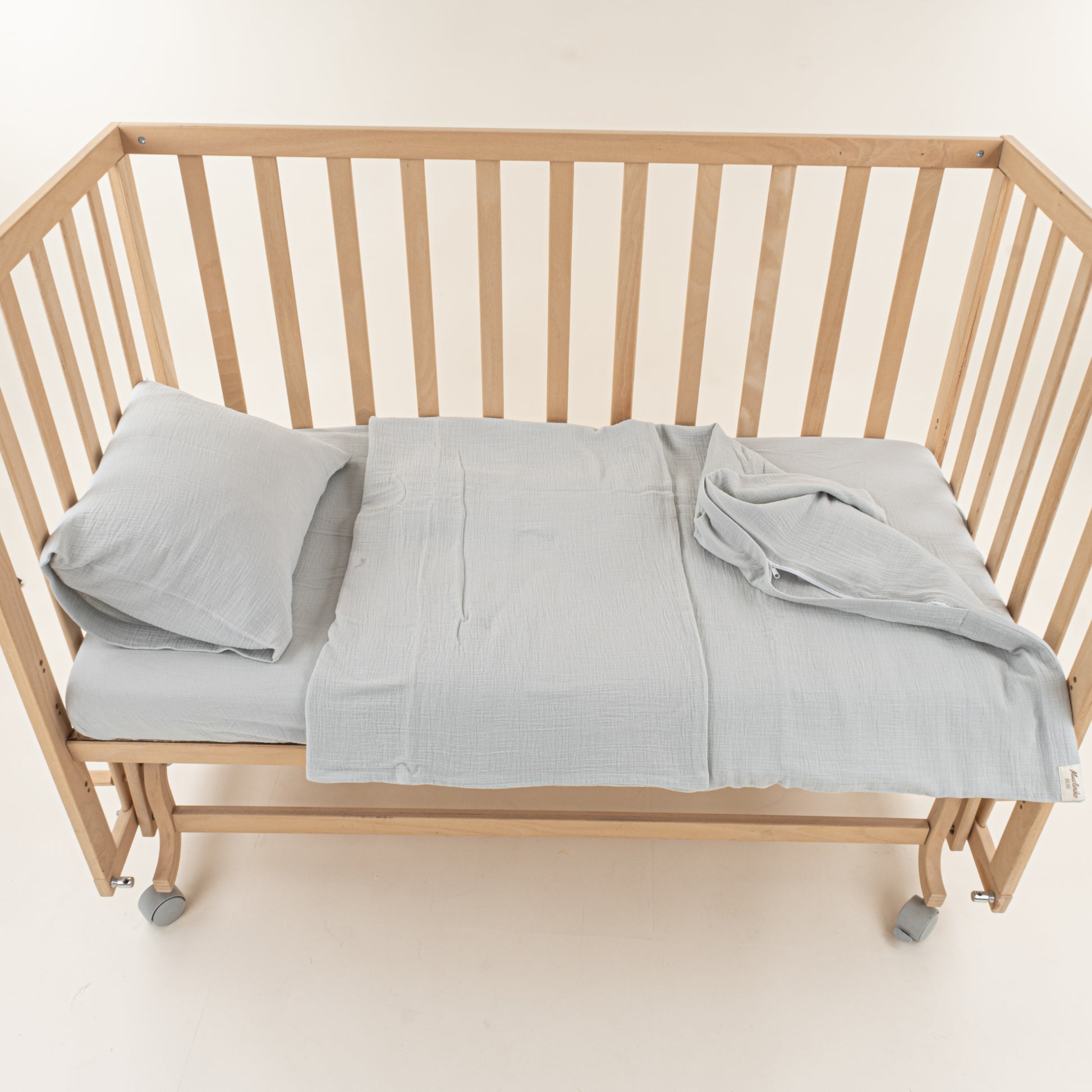 Bebek İki Katlı Organik Muslin Nevresim Seti (Yorgan Kılıfı,Yastık Kılıfı,Lastikli Çarşaf) - İki Katlı Organik Muslin gri