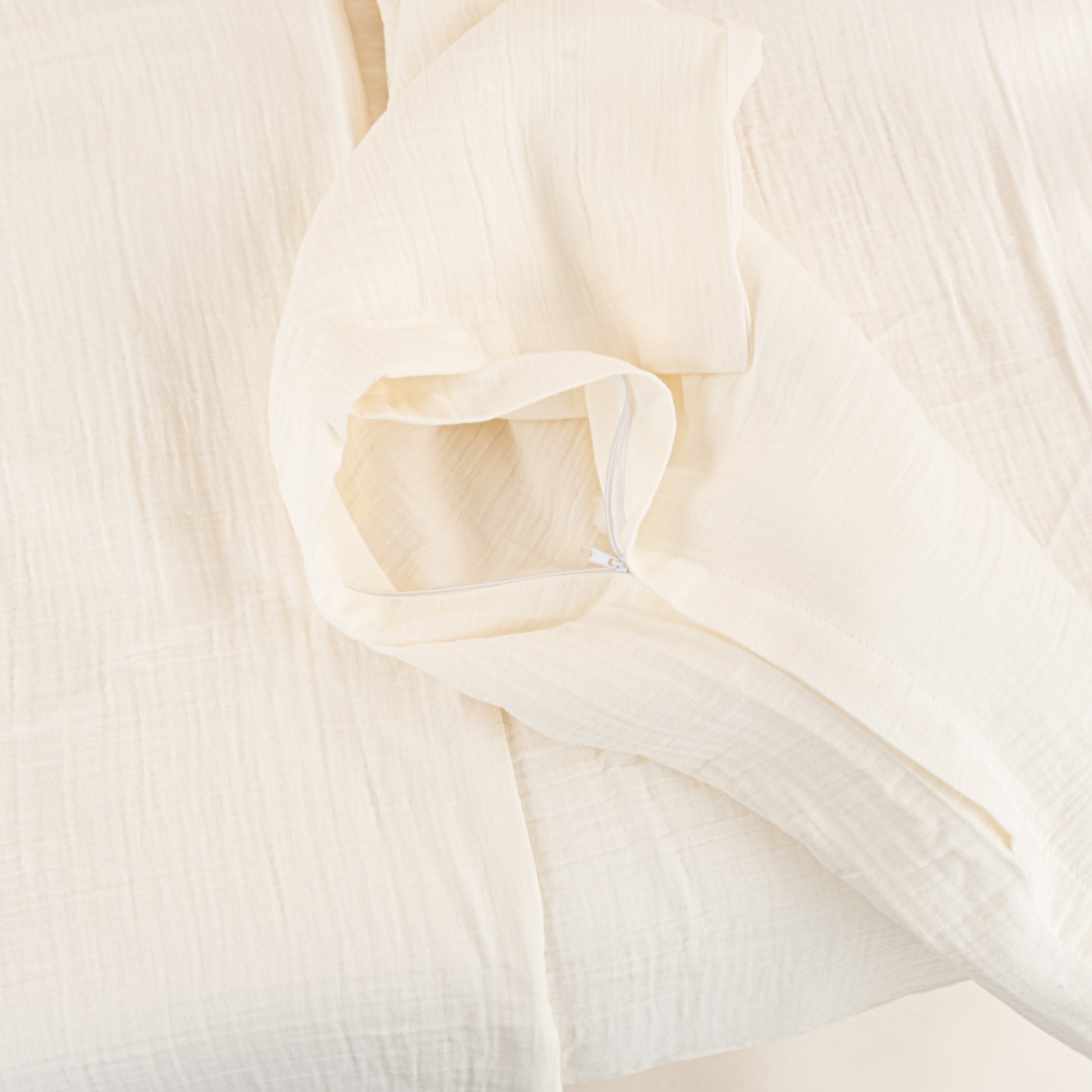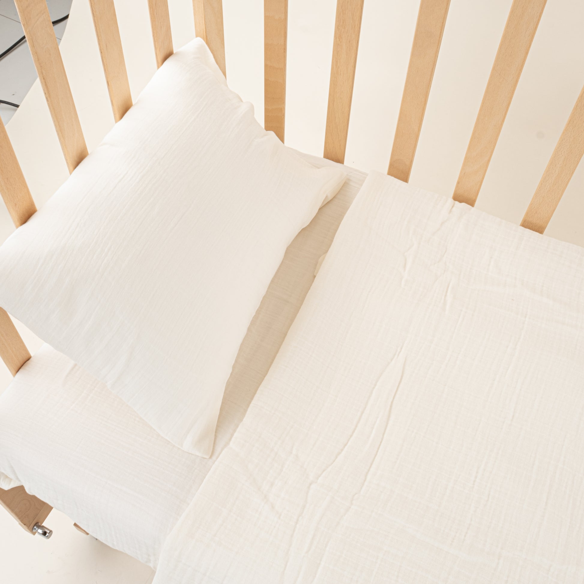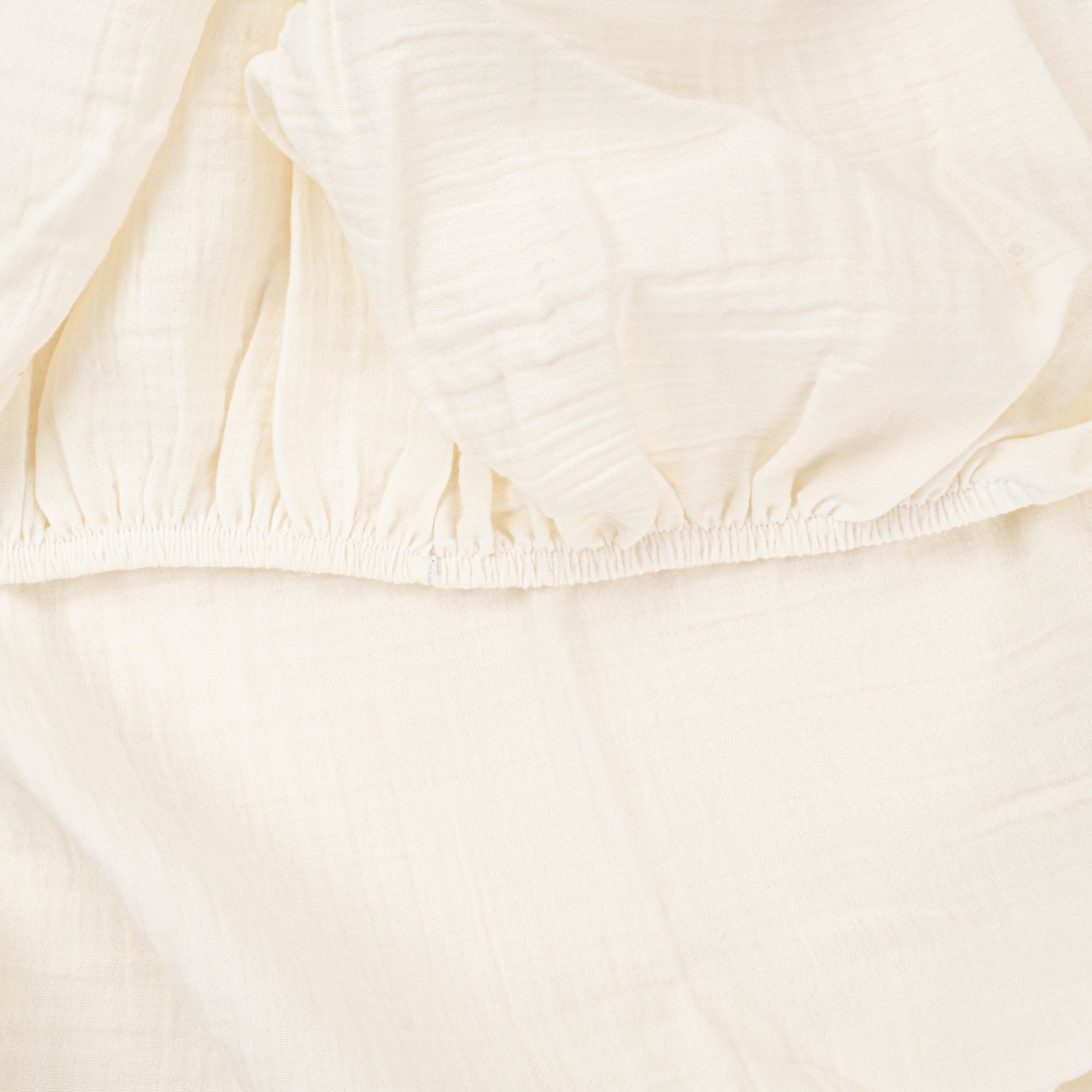 Bebek İki Katlı Organik Muslin Nevresim Seti (Yorgan Kılıfı,Yastık Kılıfı,Lastikli Çarşaf) - İki Katlı Organik Muslin Krem