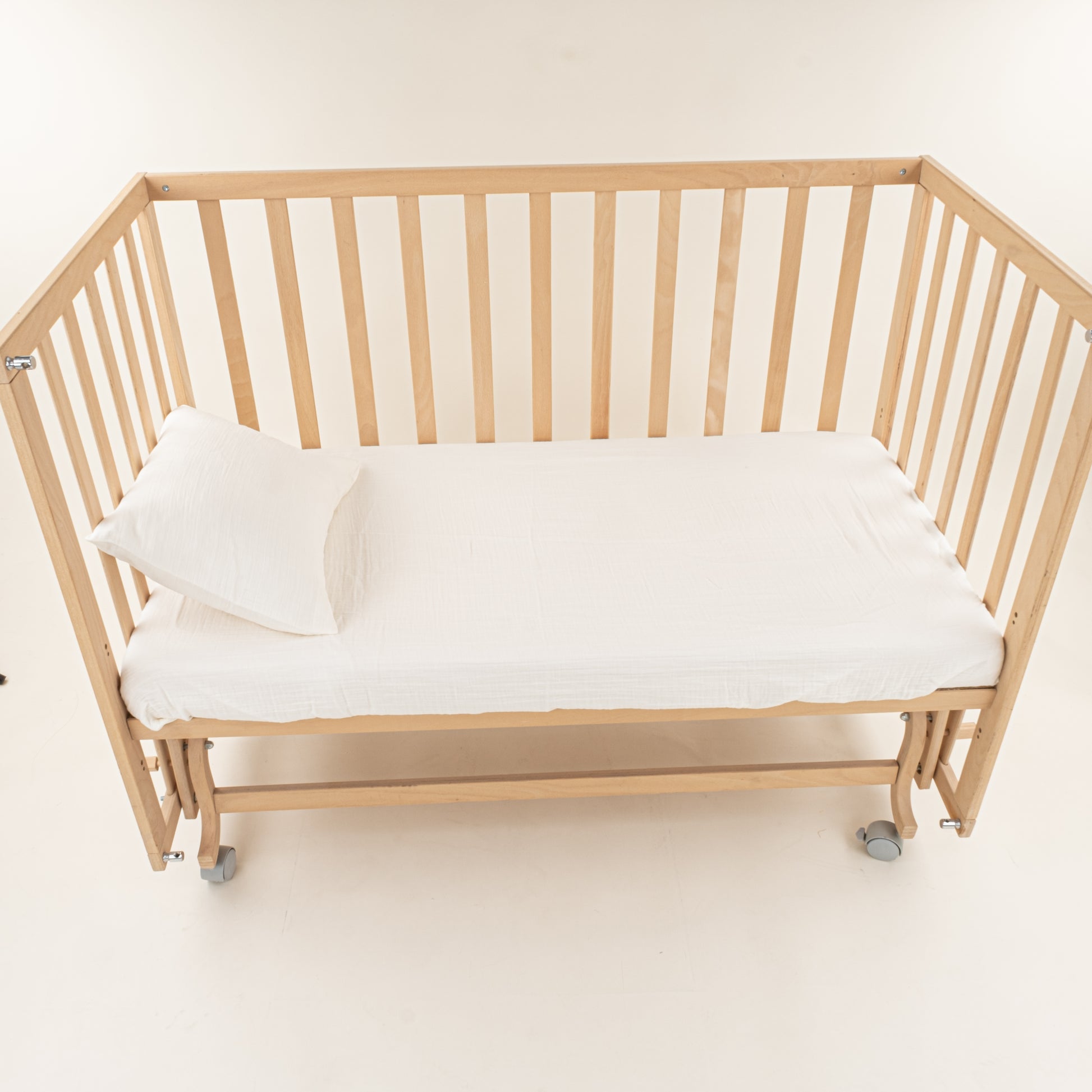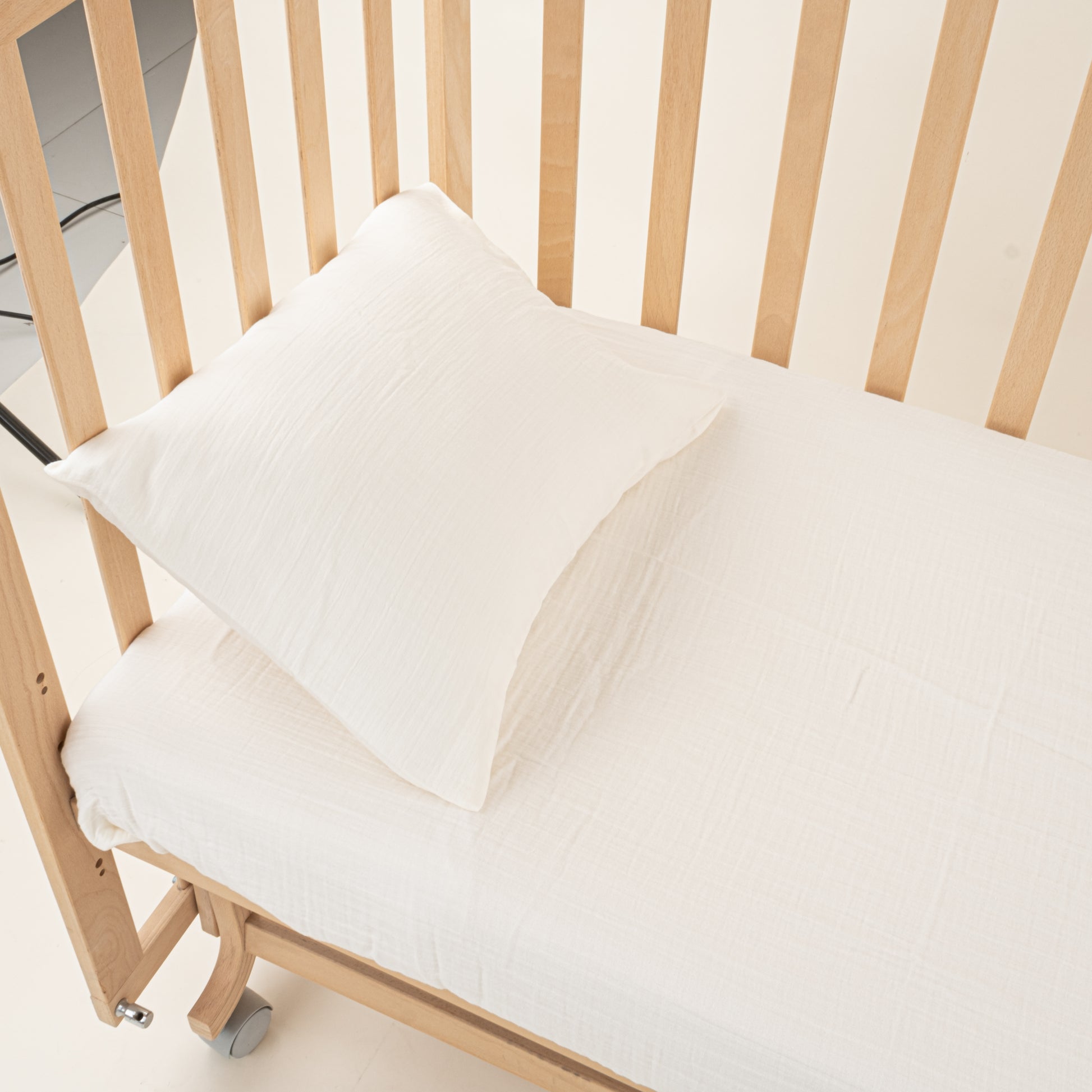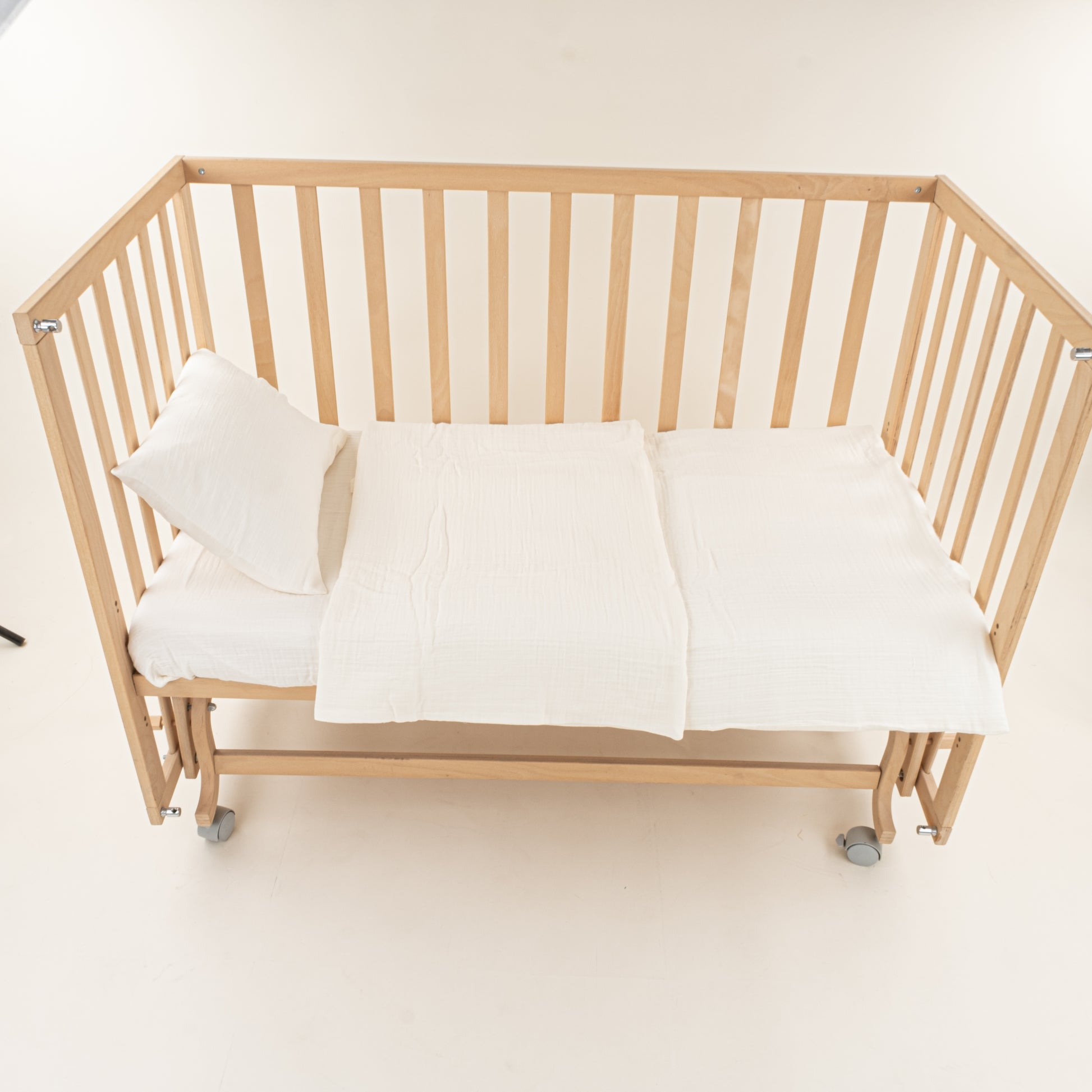 Bebek İki Katlı Organik Muslin Nevresim Seti (Yorgan Kılıfı,Yastık Kılıfı,Lastikli Çarşaf) - İki Katlı Organik Muslin Krem