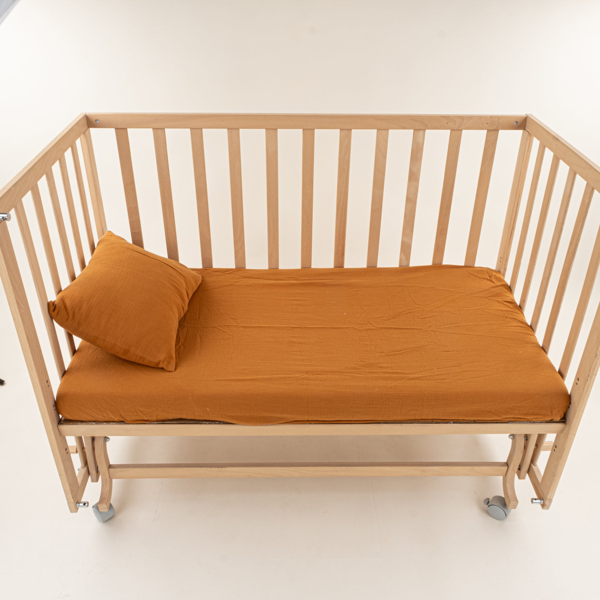 Bebek Lastikli Çarşaf ve Yastık Kılıfı - Dört Katlı Organik Muslin - Hardal