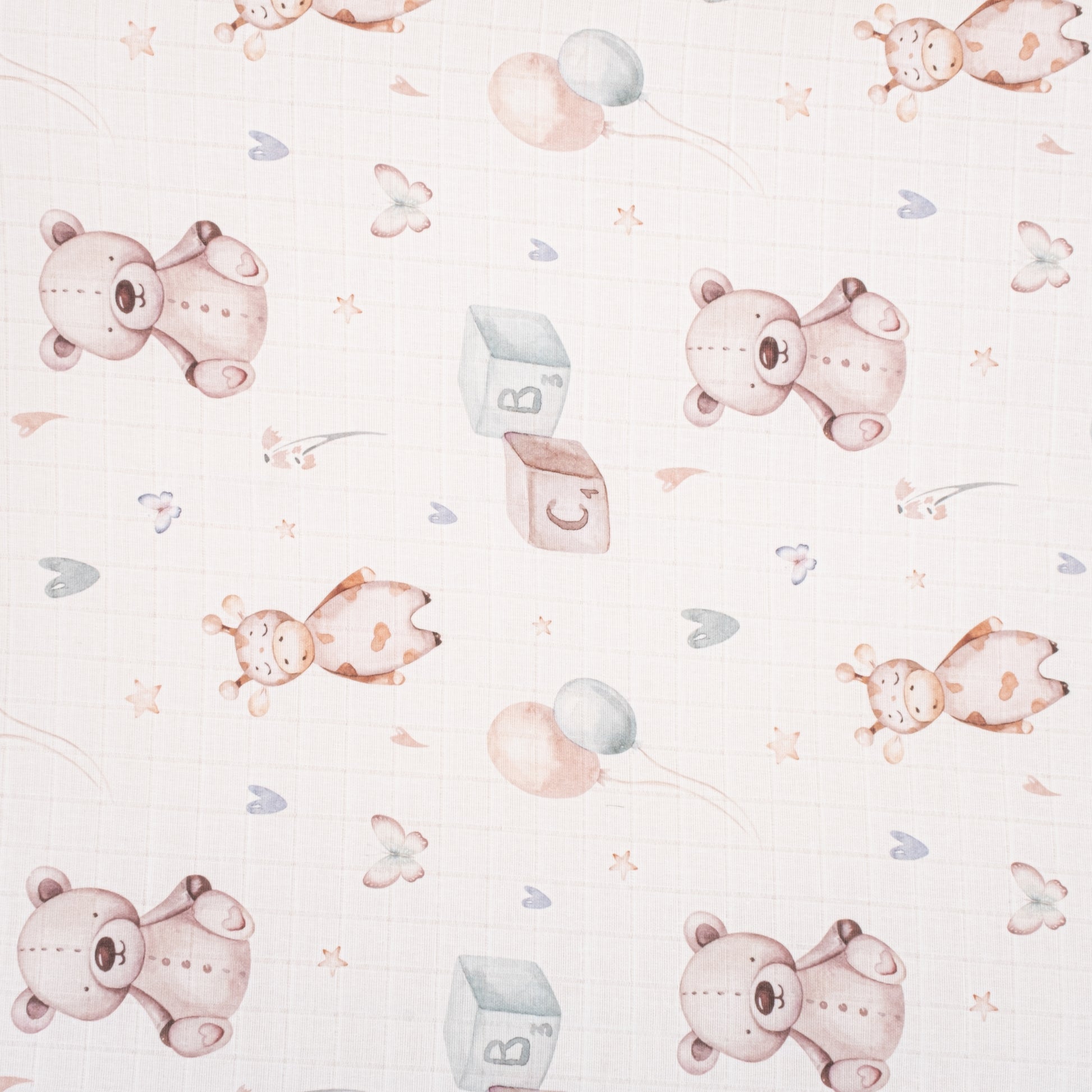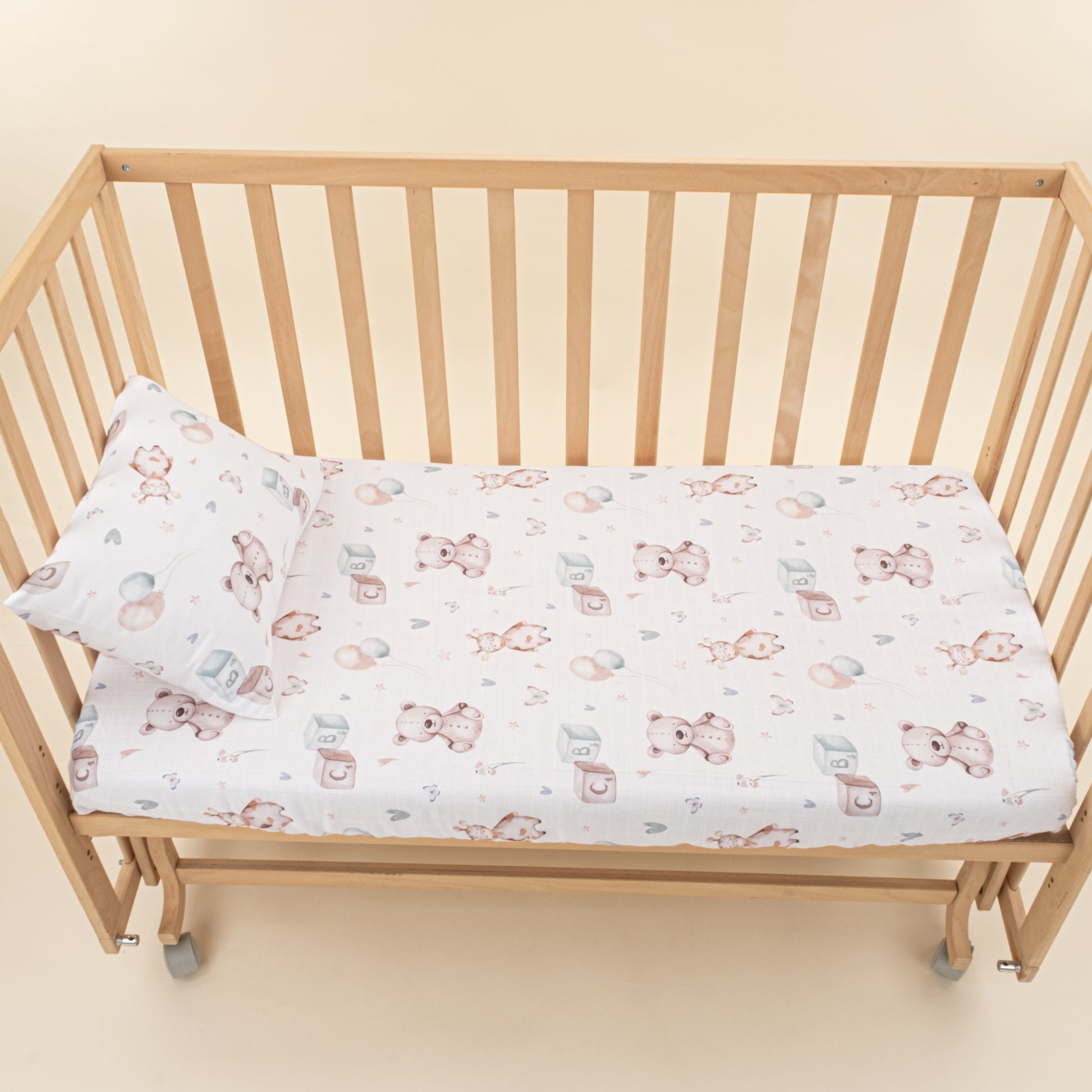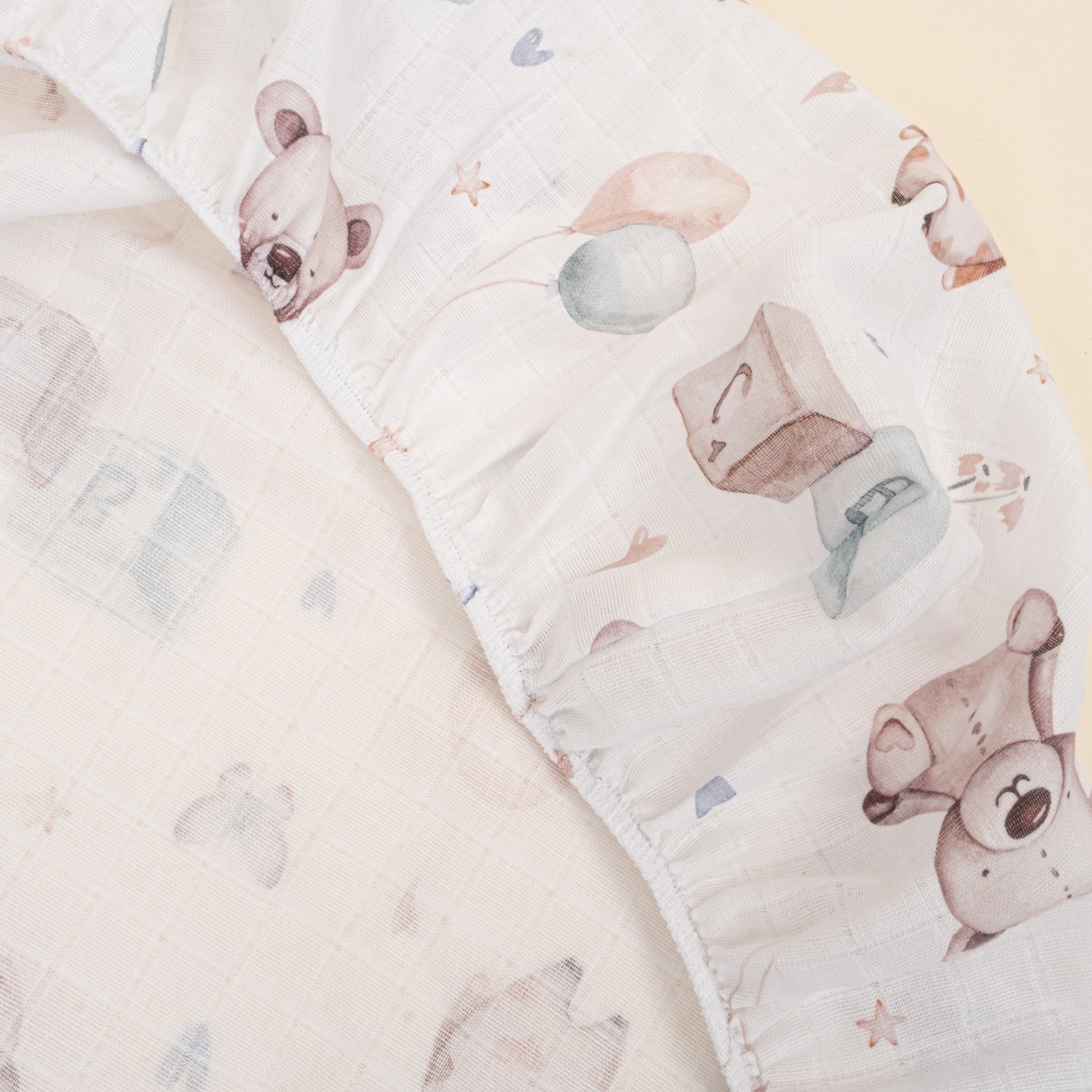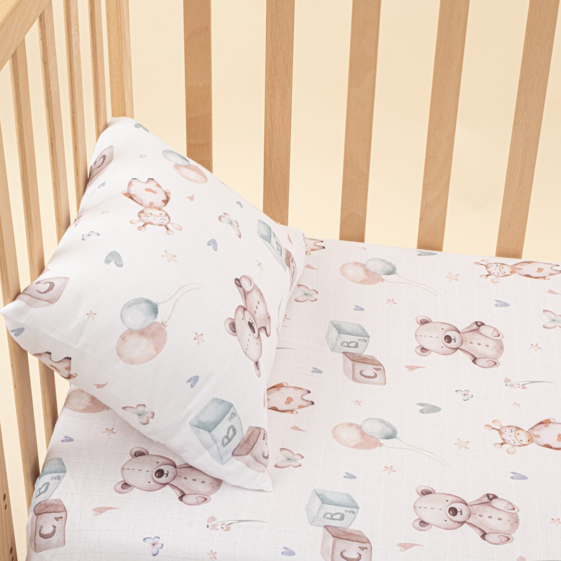 Bebek Lastikli Çarşaf ve Yastık Kılıfı - Dijital Baskı Muslin - Sevimli Ayıcıklar