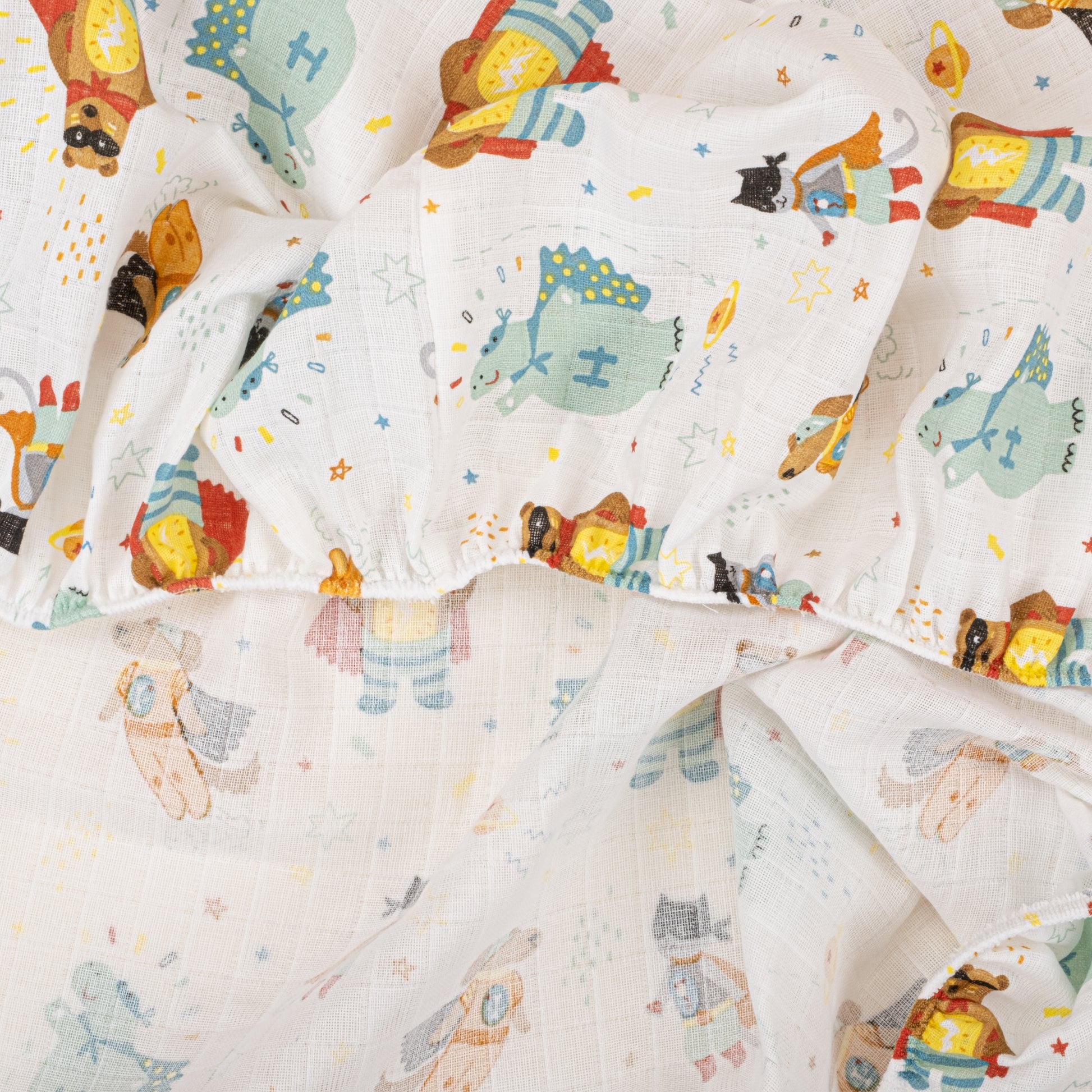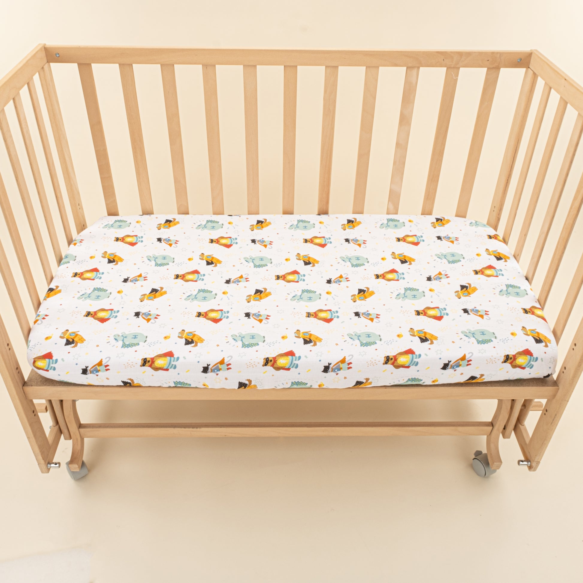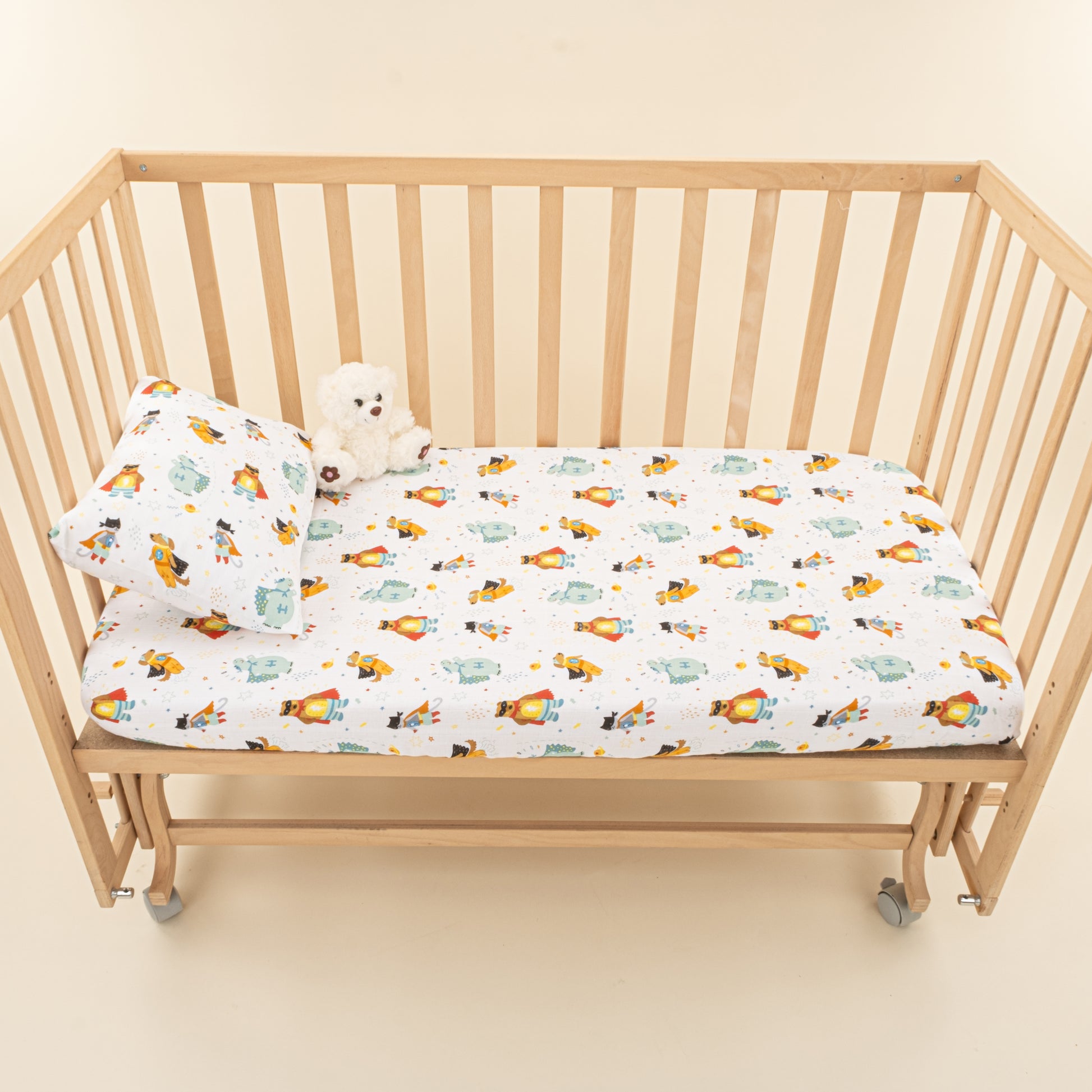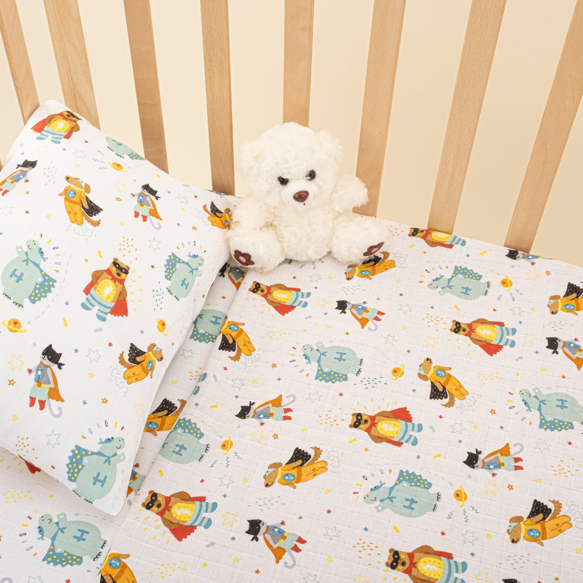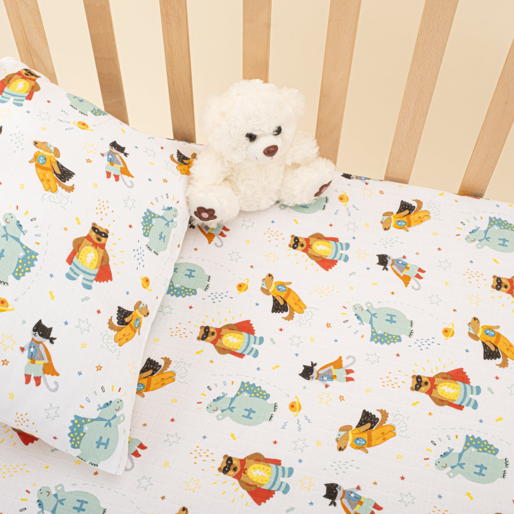 Bebek Muslin Nevresim Seti (Yorgan Kılıfı,Yastık Kılıfı,Lastikli Çarşaf) - Hardal Muslin - Süper Kahramanlar
