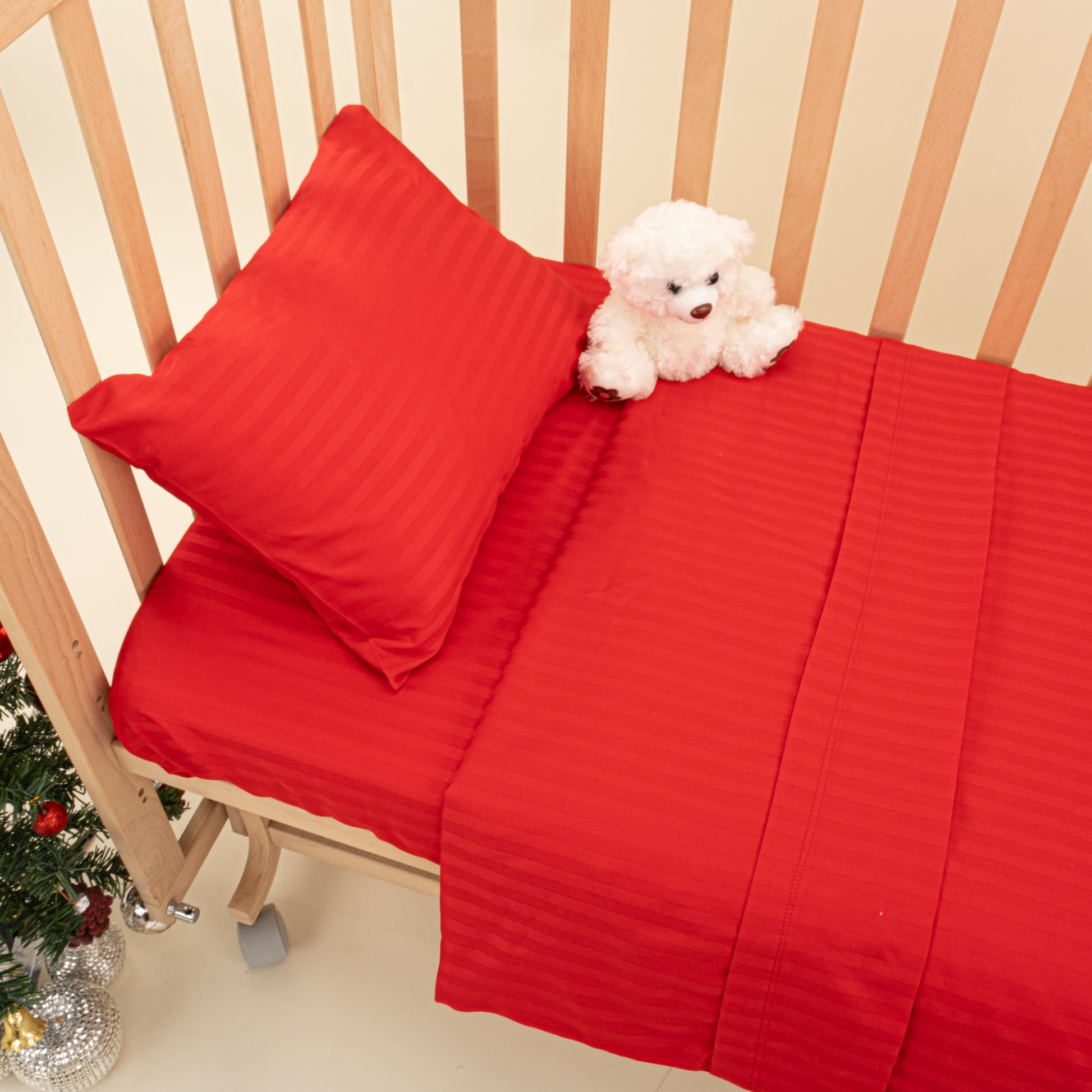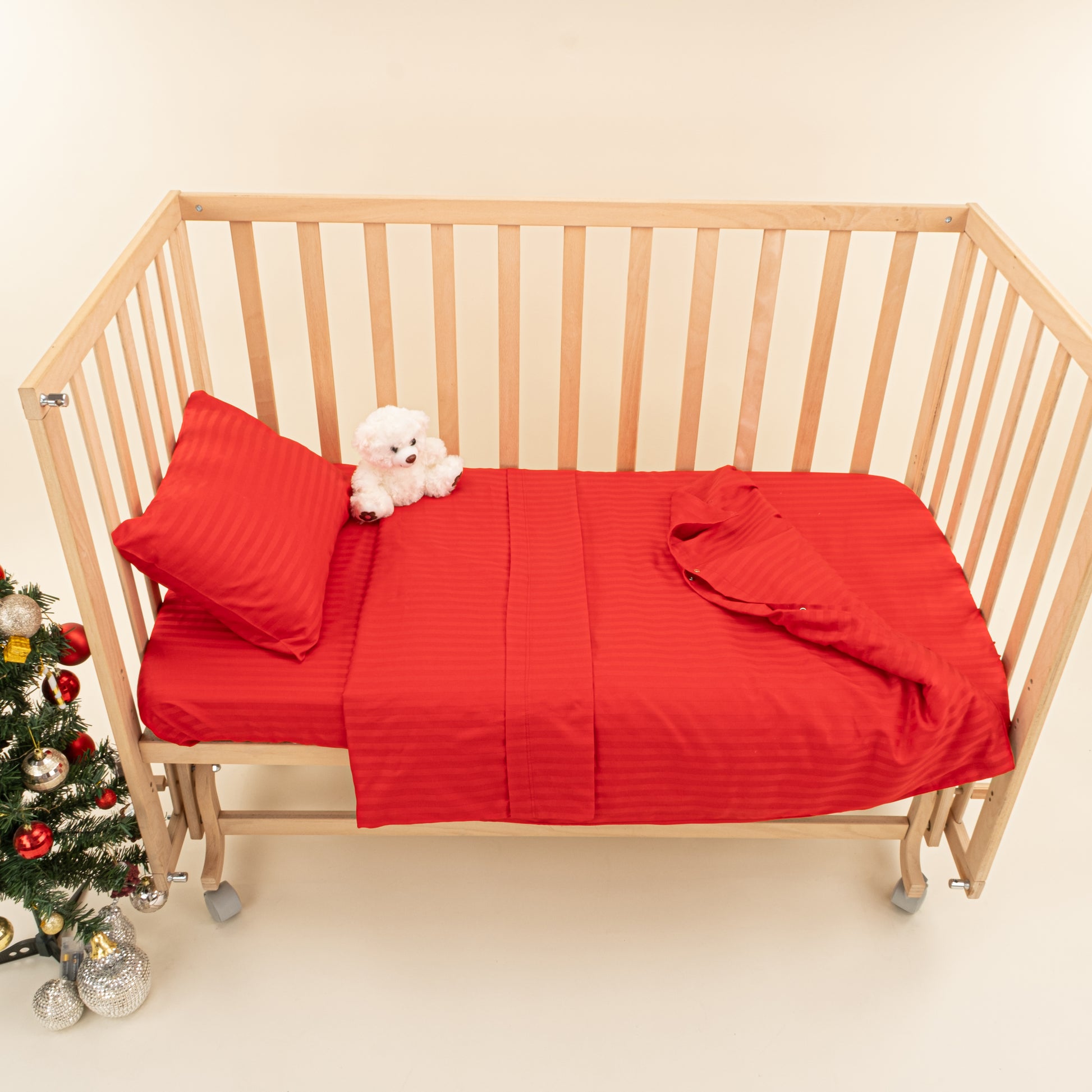 Bebek Saten Nevresim Seti (Yorgan Kılıfı,Yastık Kılıfı,Lastikli Çarşaf) - Kırmızı Saten
