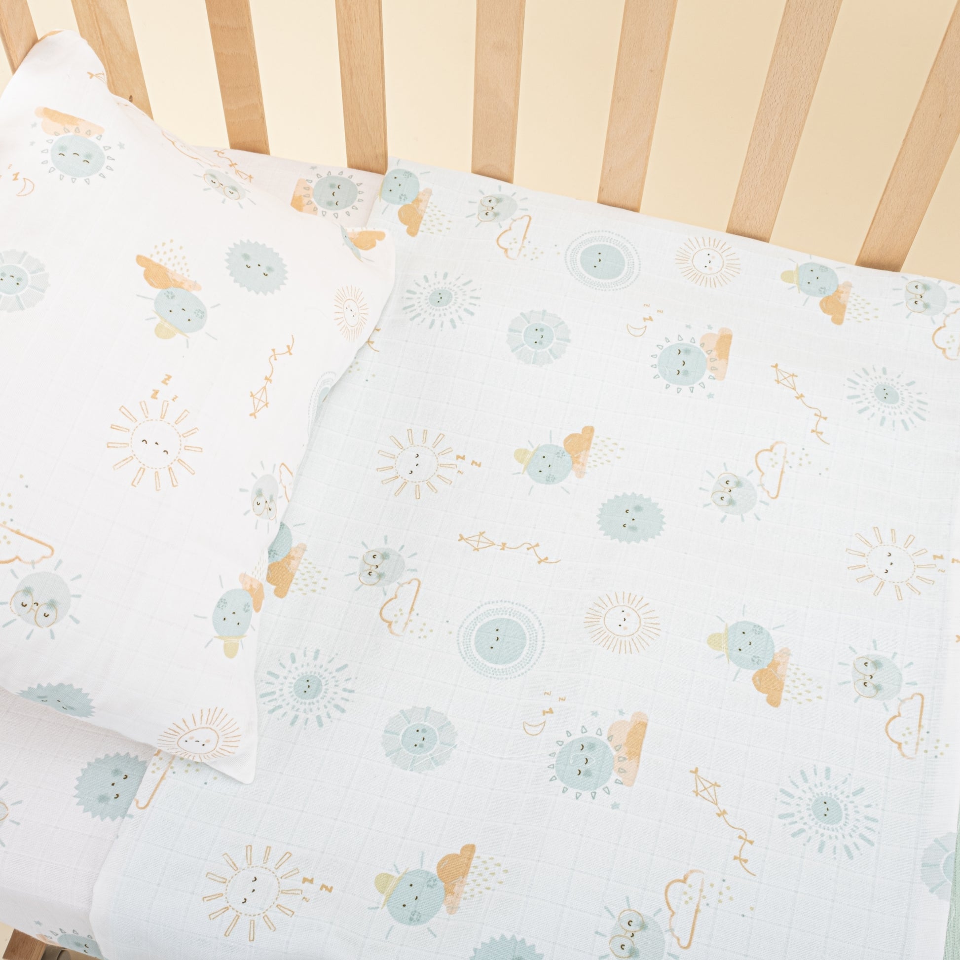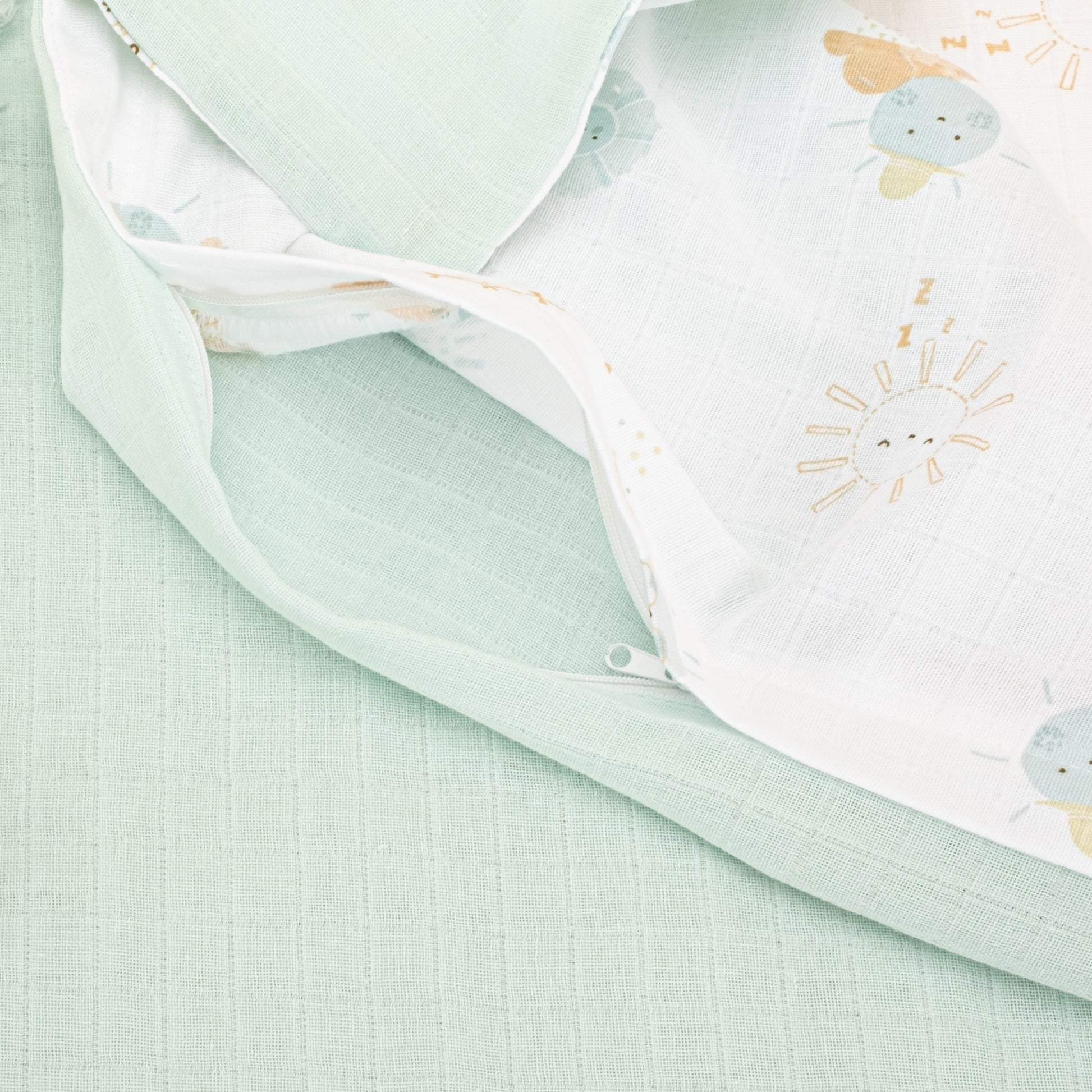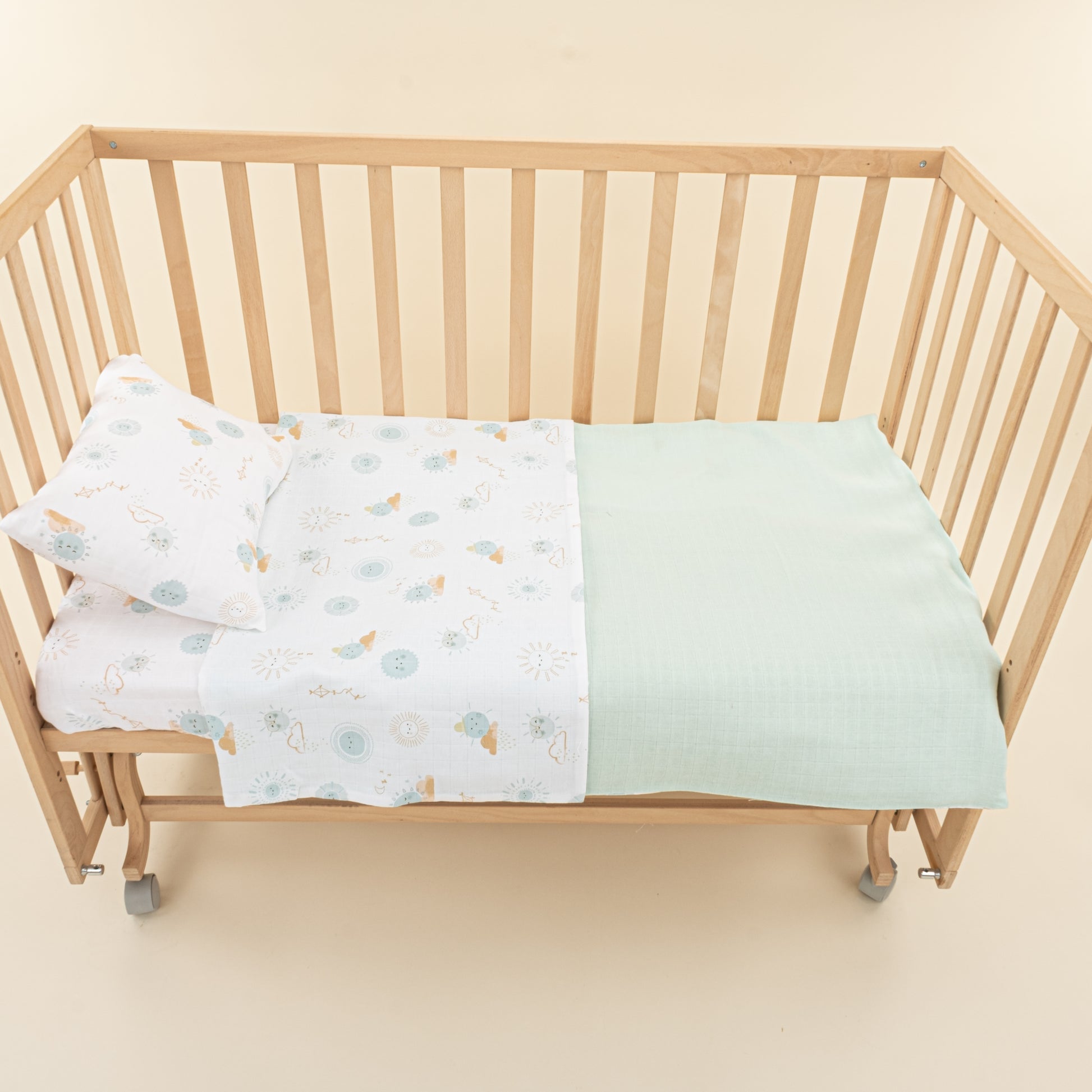 Bebek Muslin Nevresim Seti (Yorgan Kılıfı,Yastık Kılıfı,Lastikli Çarşaf) - Mint Muslin - Su Yeşili Güneş
