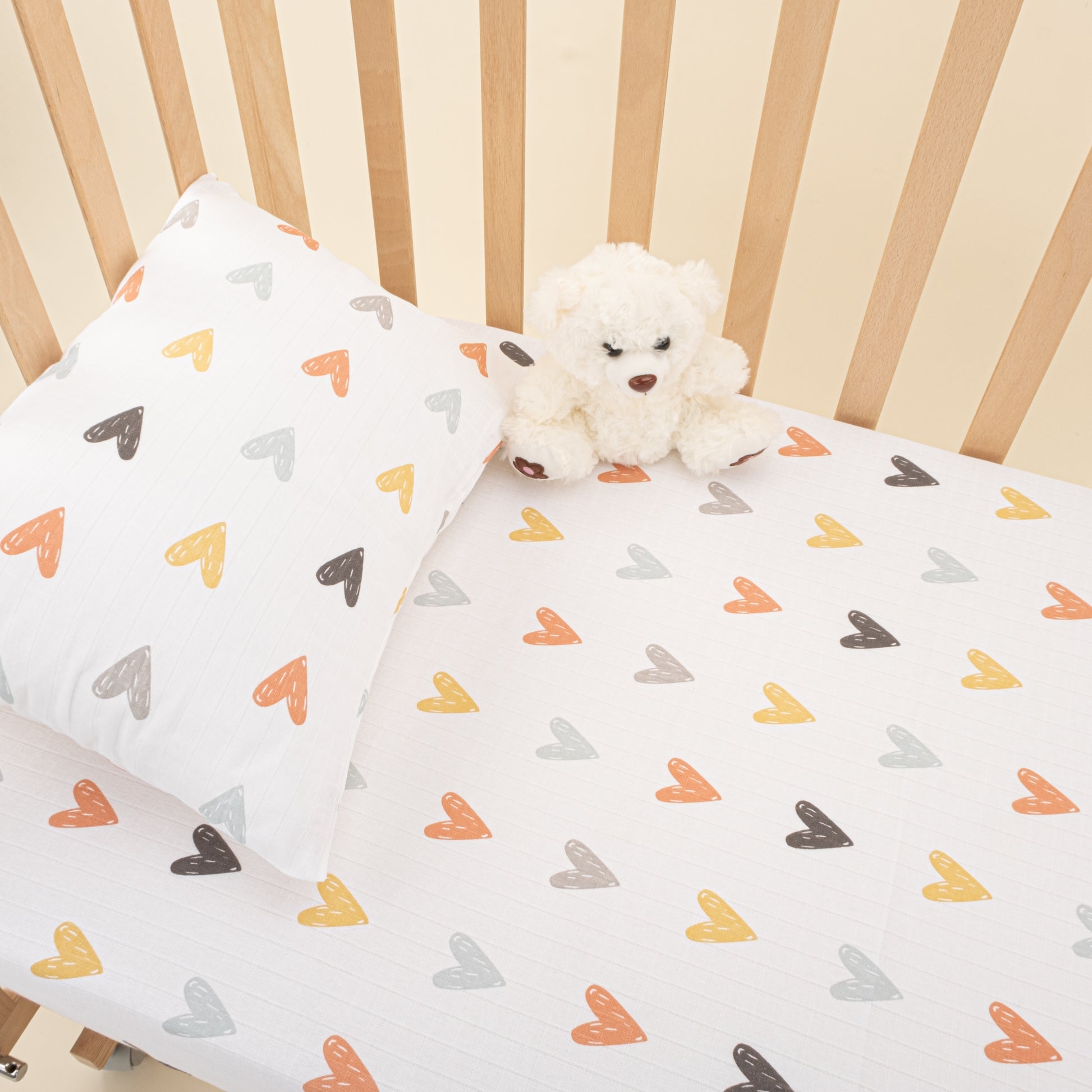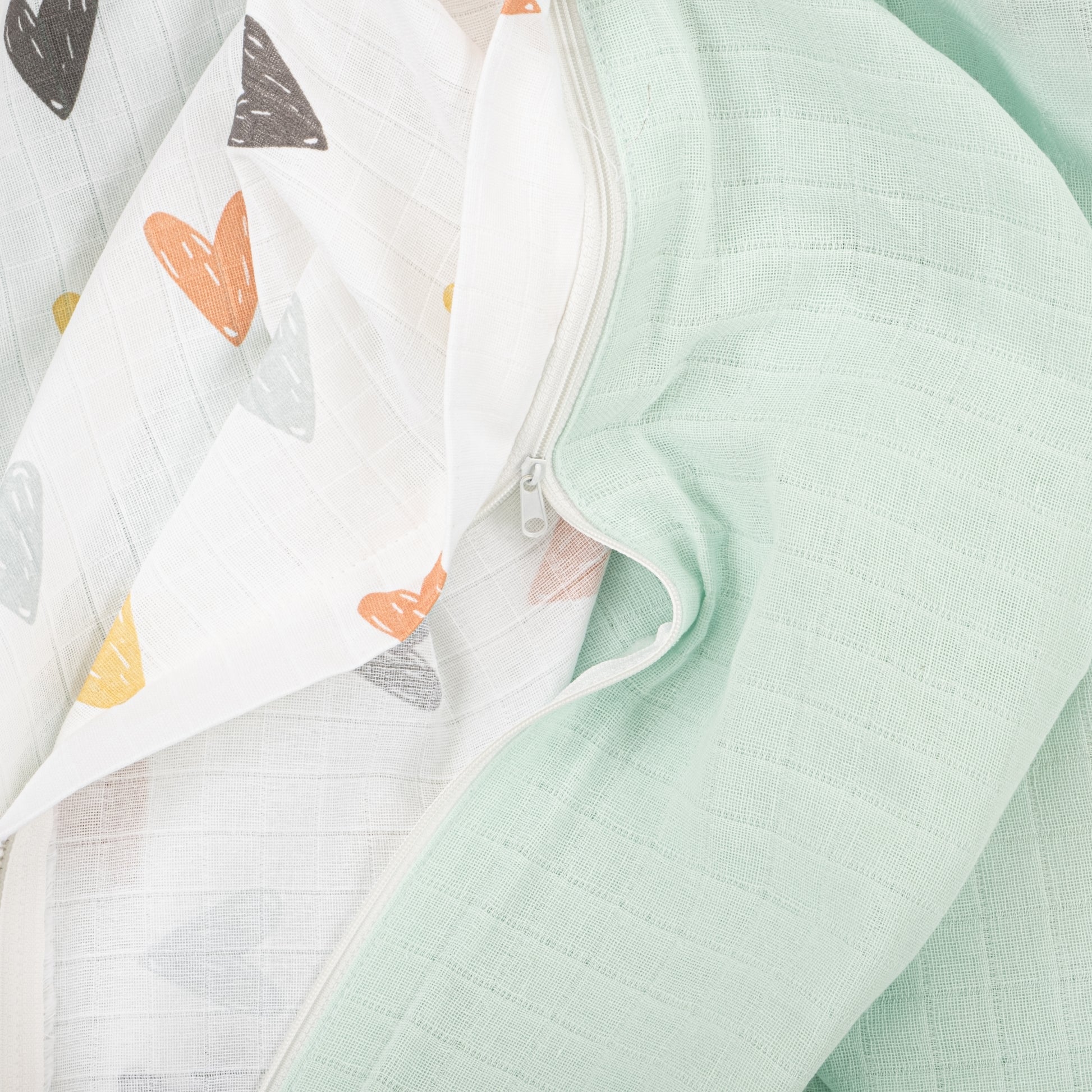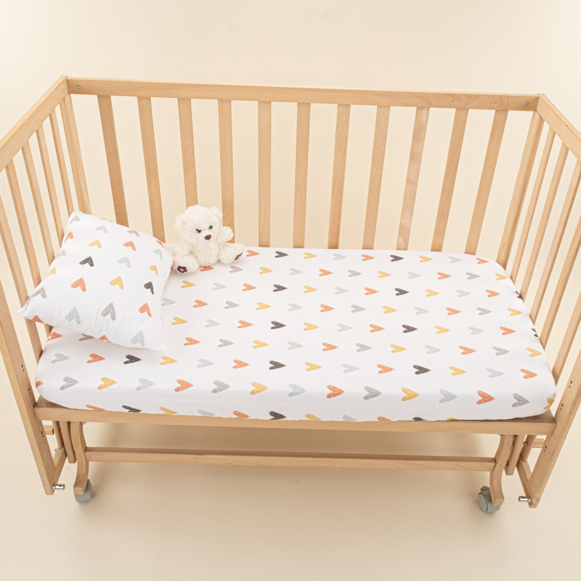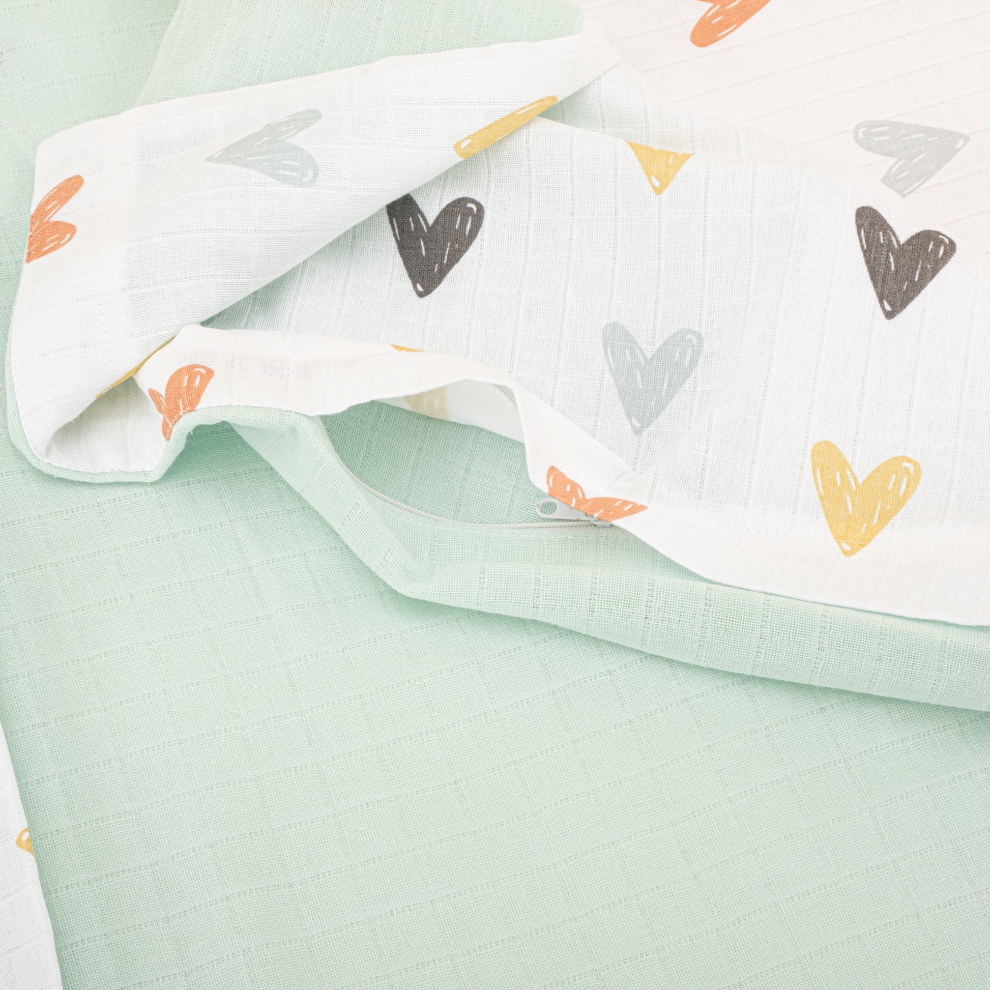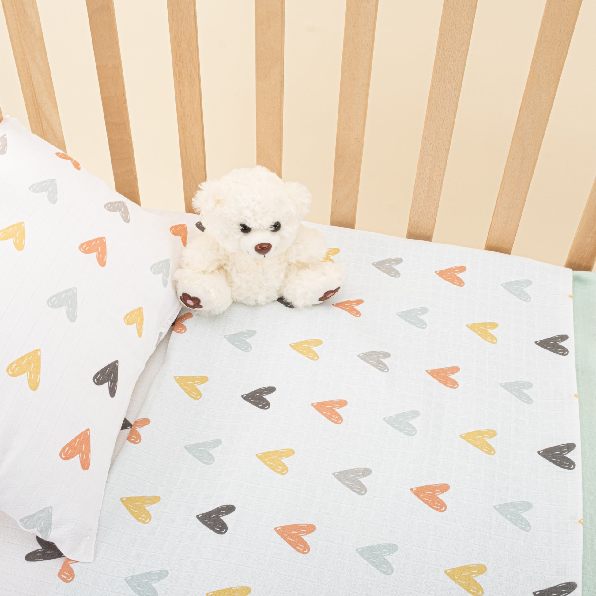 Bebek Muslin Nevresim Seti (Yorgan Kılıfı,Yastık Kılıfı,Lastikli Çarşaf) - Su Yeşili Muslin - Kalpler