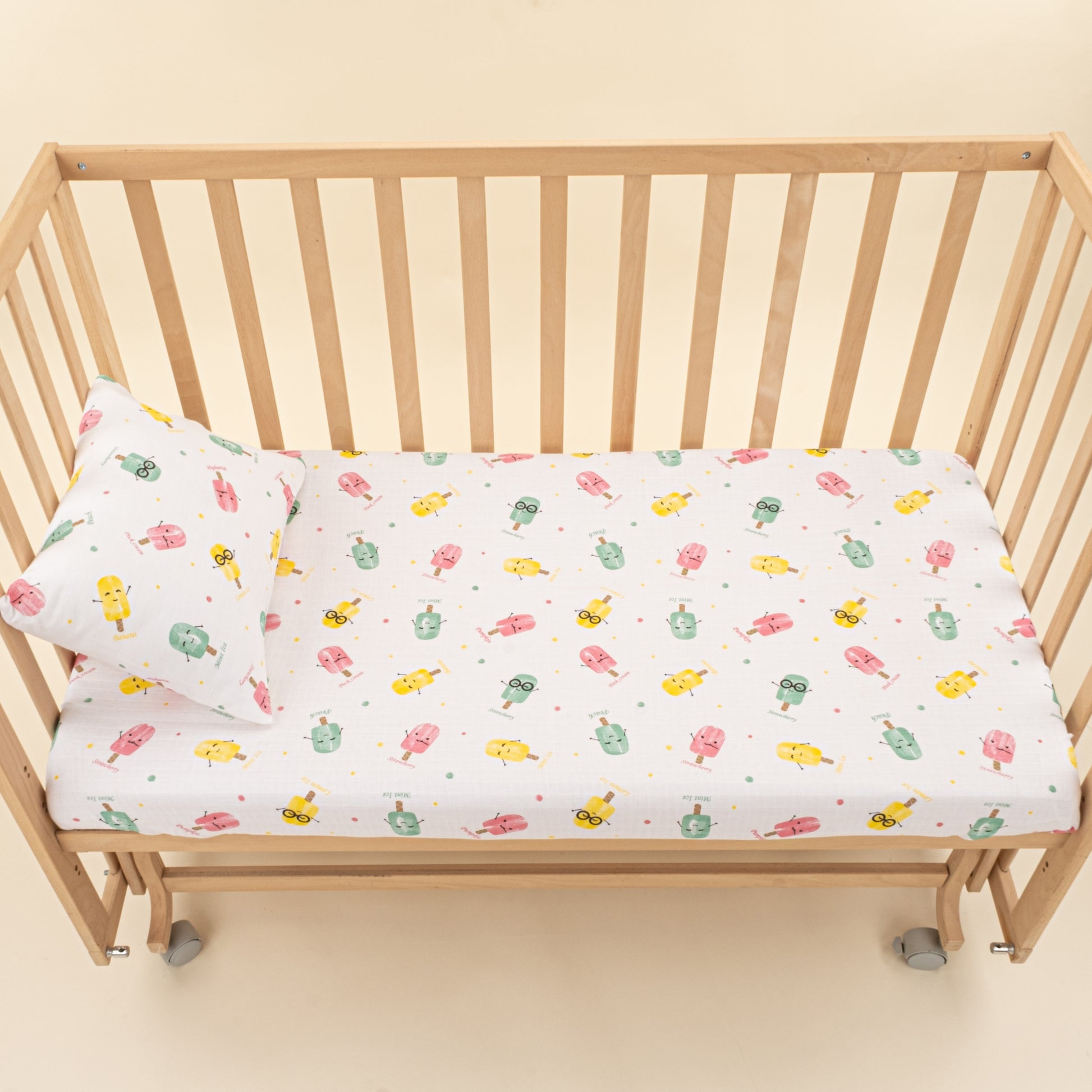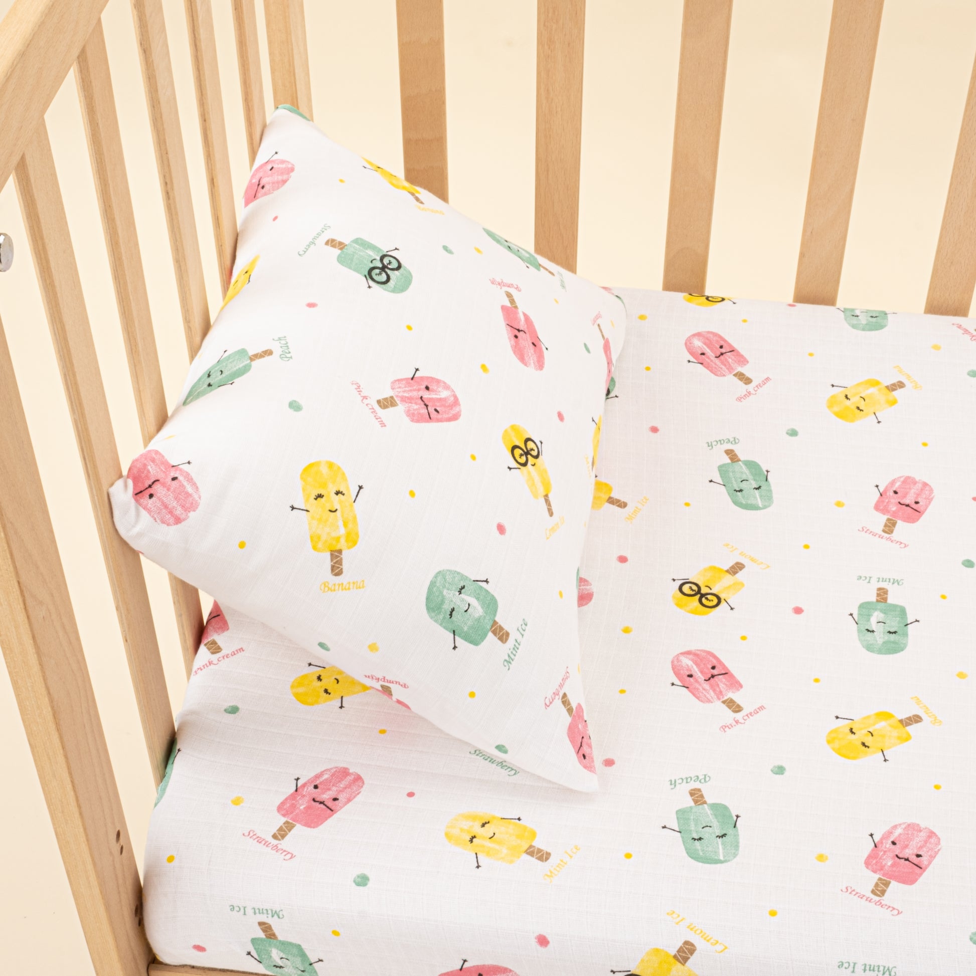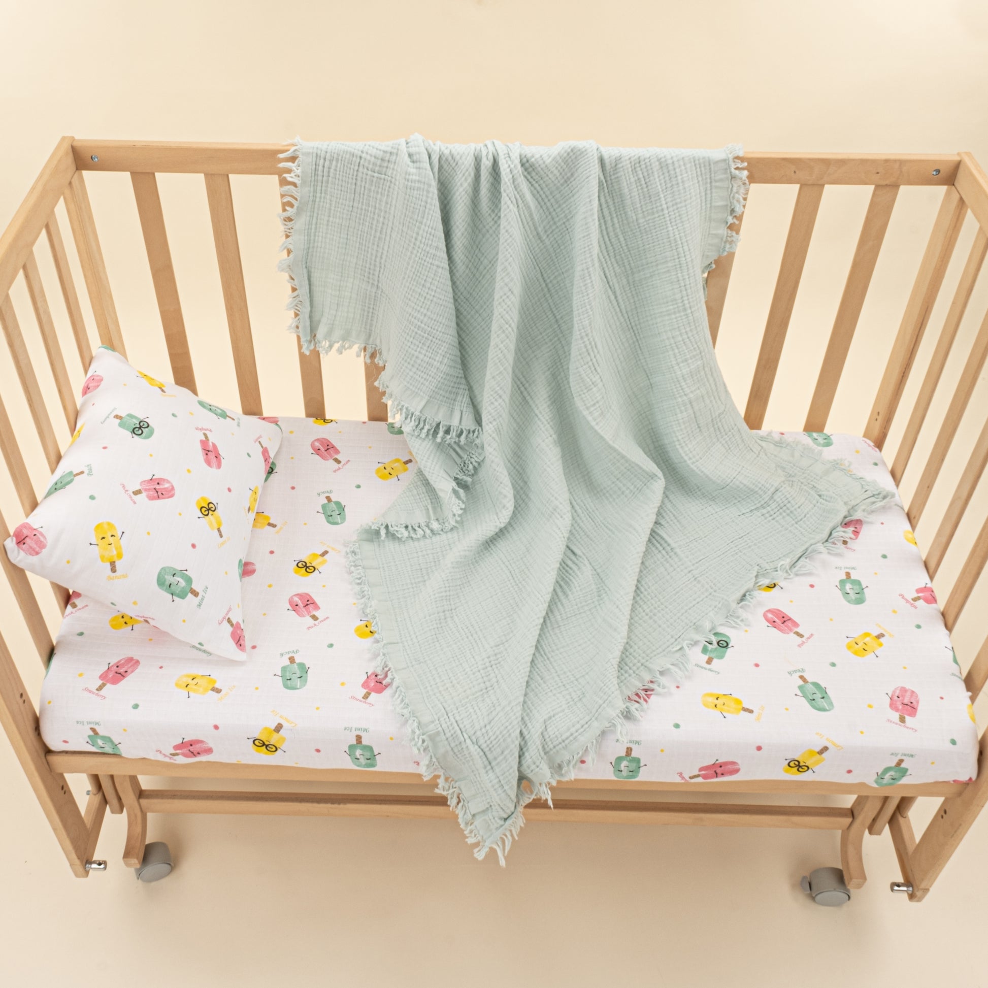 Bebek Nevresim Seti (Dört Katlı Muslin Battaniye , Yastık Kılıfı , Lastikli Çarşaf) - Mint Dört Kat Muslin Battaniye - Dondurma