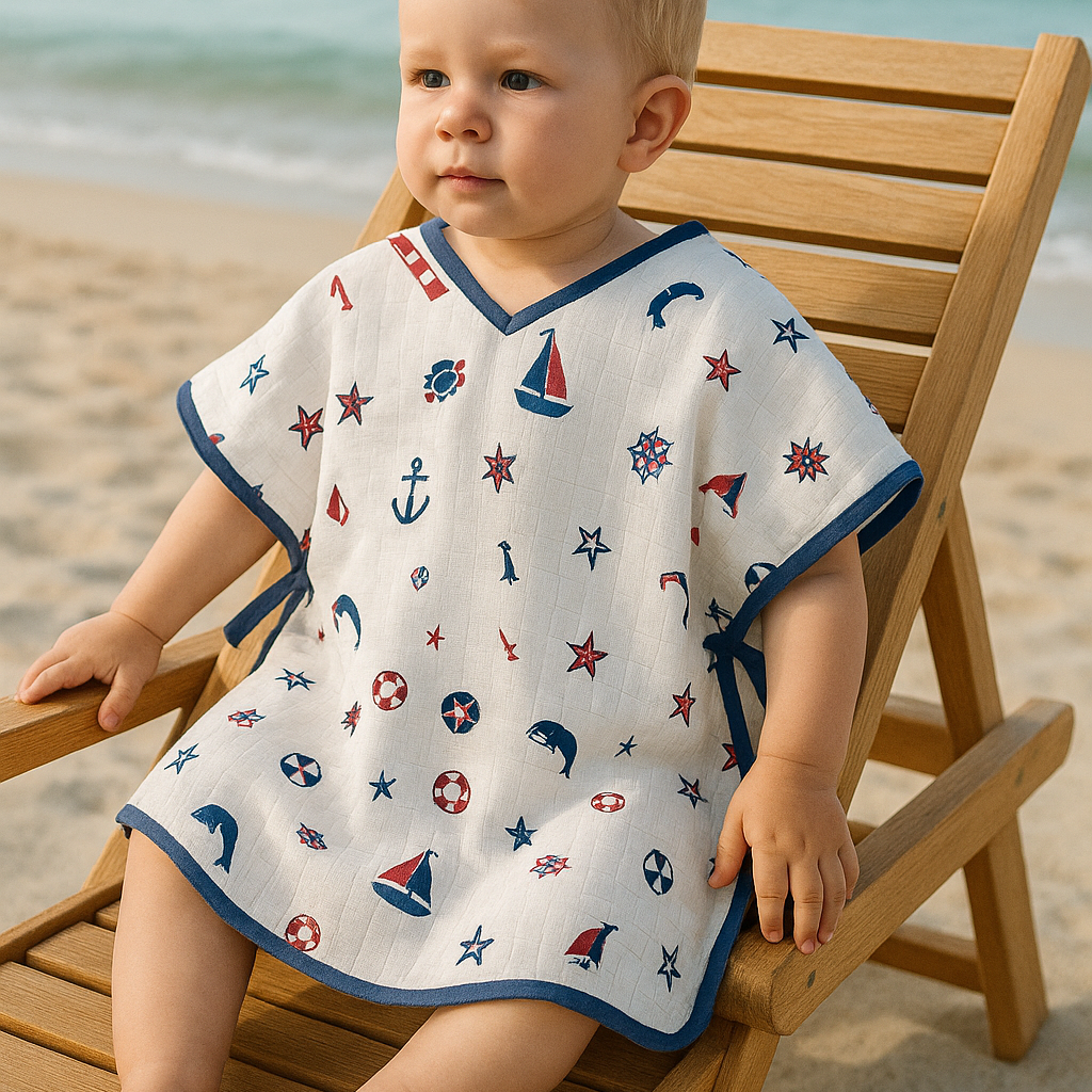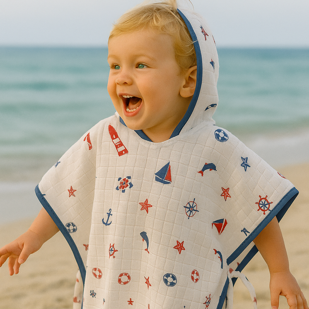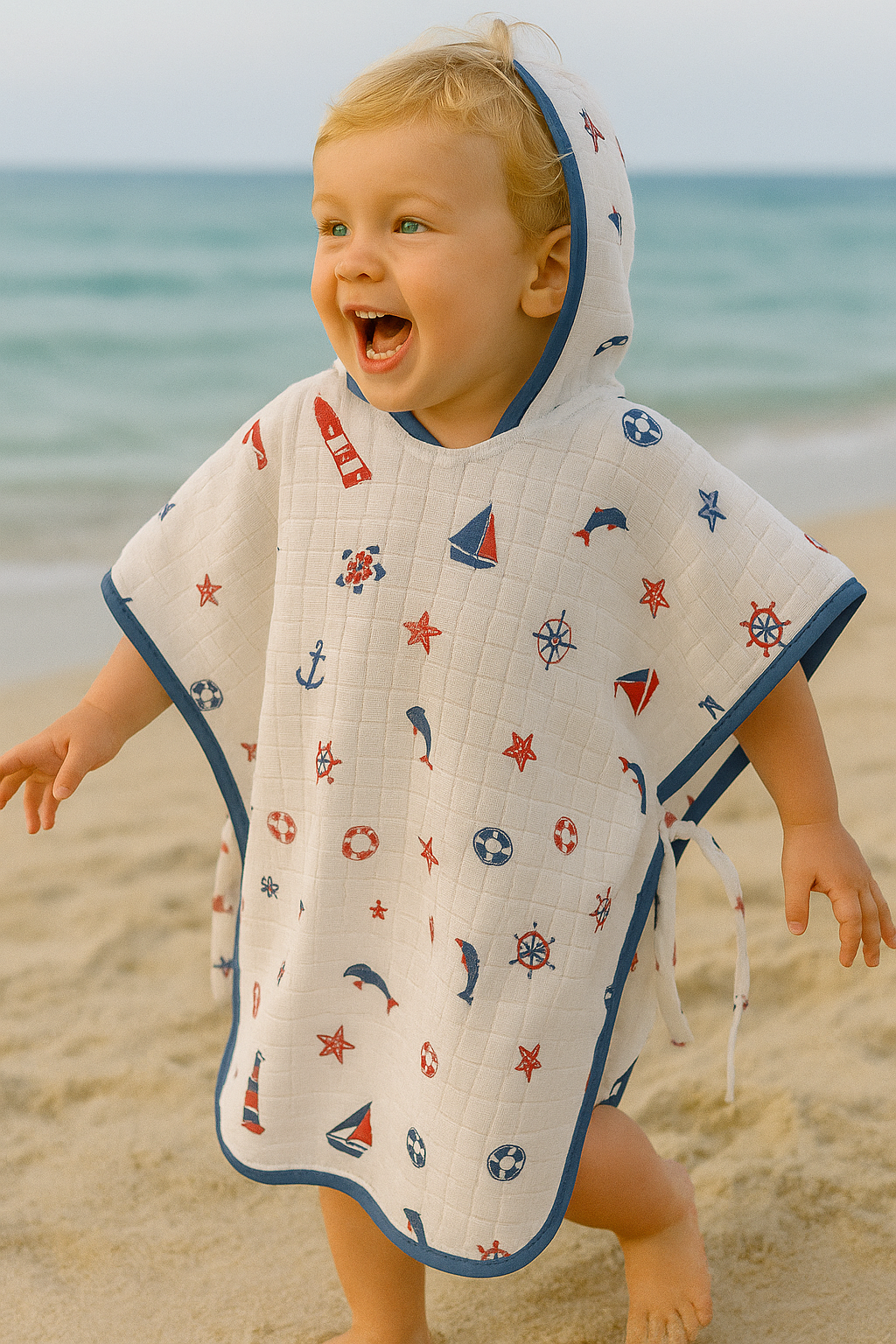 Bebeğiniz sudan çıkmak istemiyor mu ? Eğlenceli, rahat ve kolay giyilebilen bu bebek pançosu havuzdan çıkışı ebeveynler için bir kolaylık haline getirecek!
