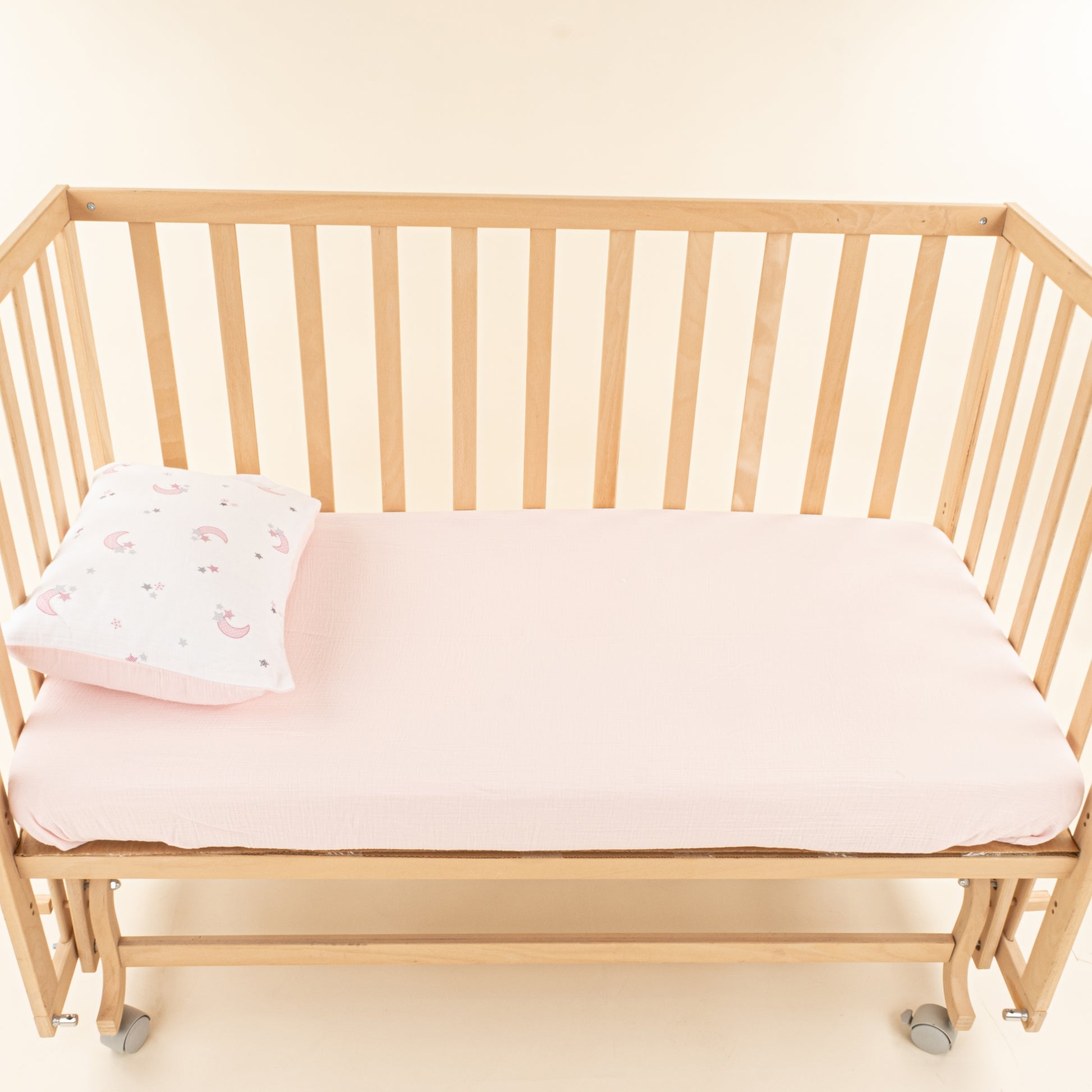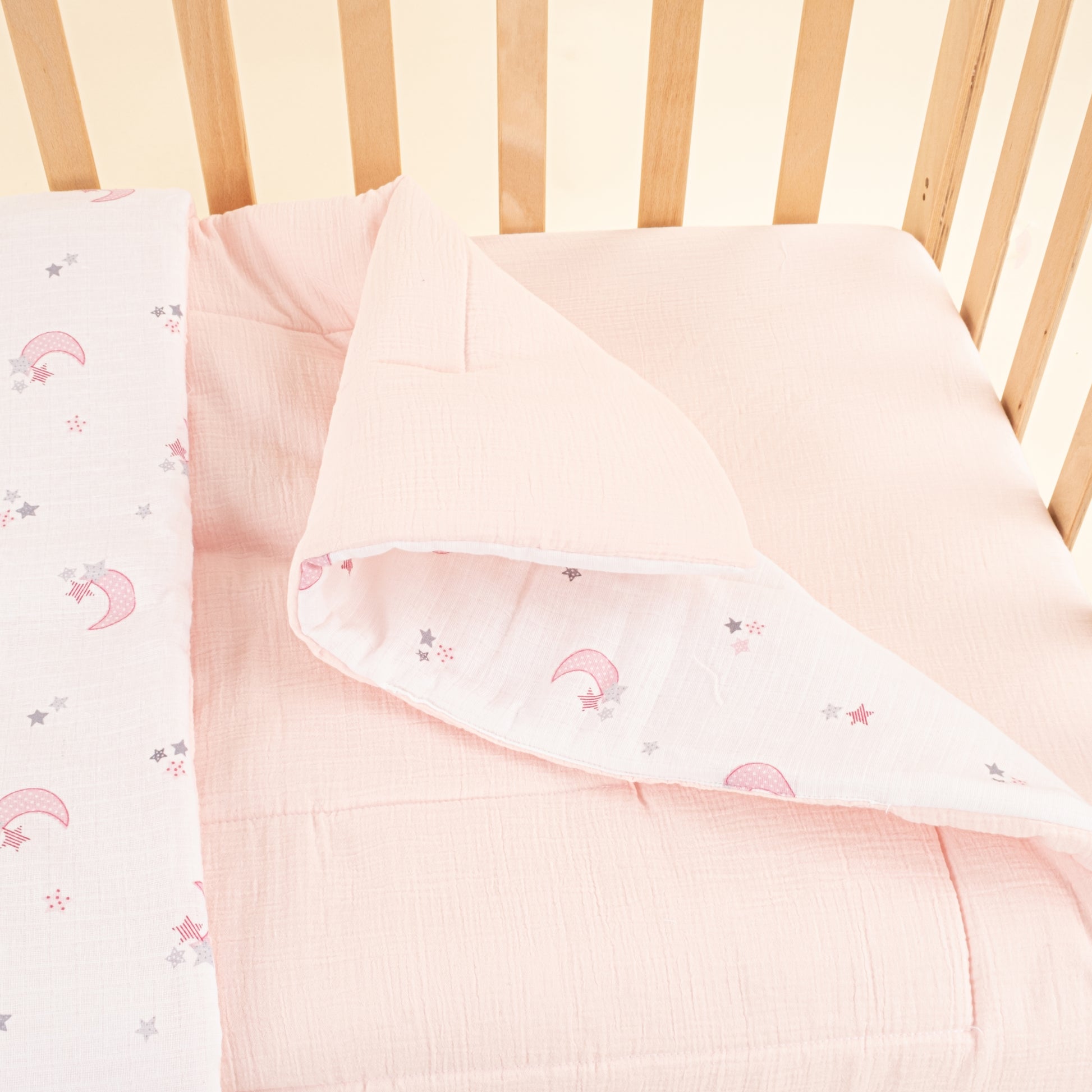 Bebek Yorgan Nevresim Seti - İki Katlı Organik Muslin - Bebe Pembe - Pembe Ay