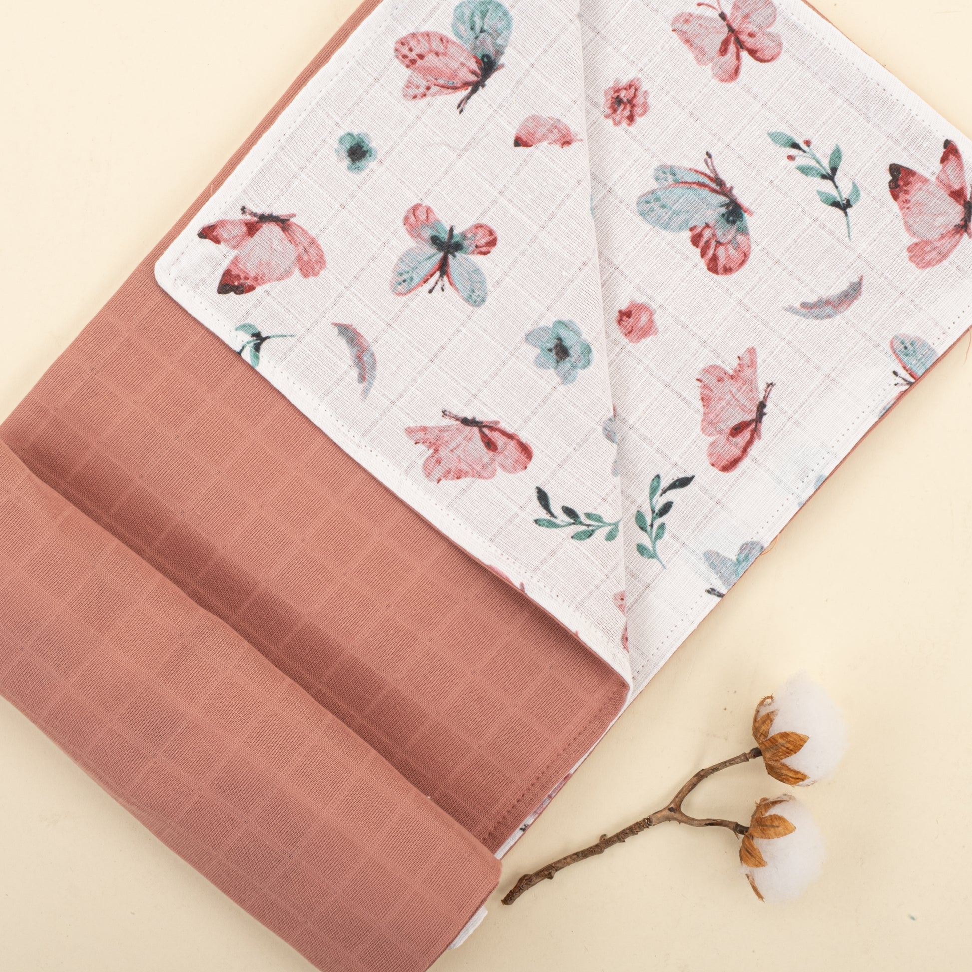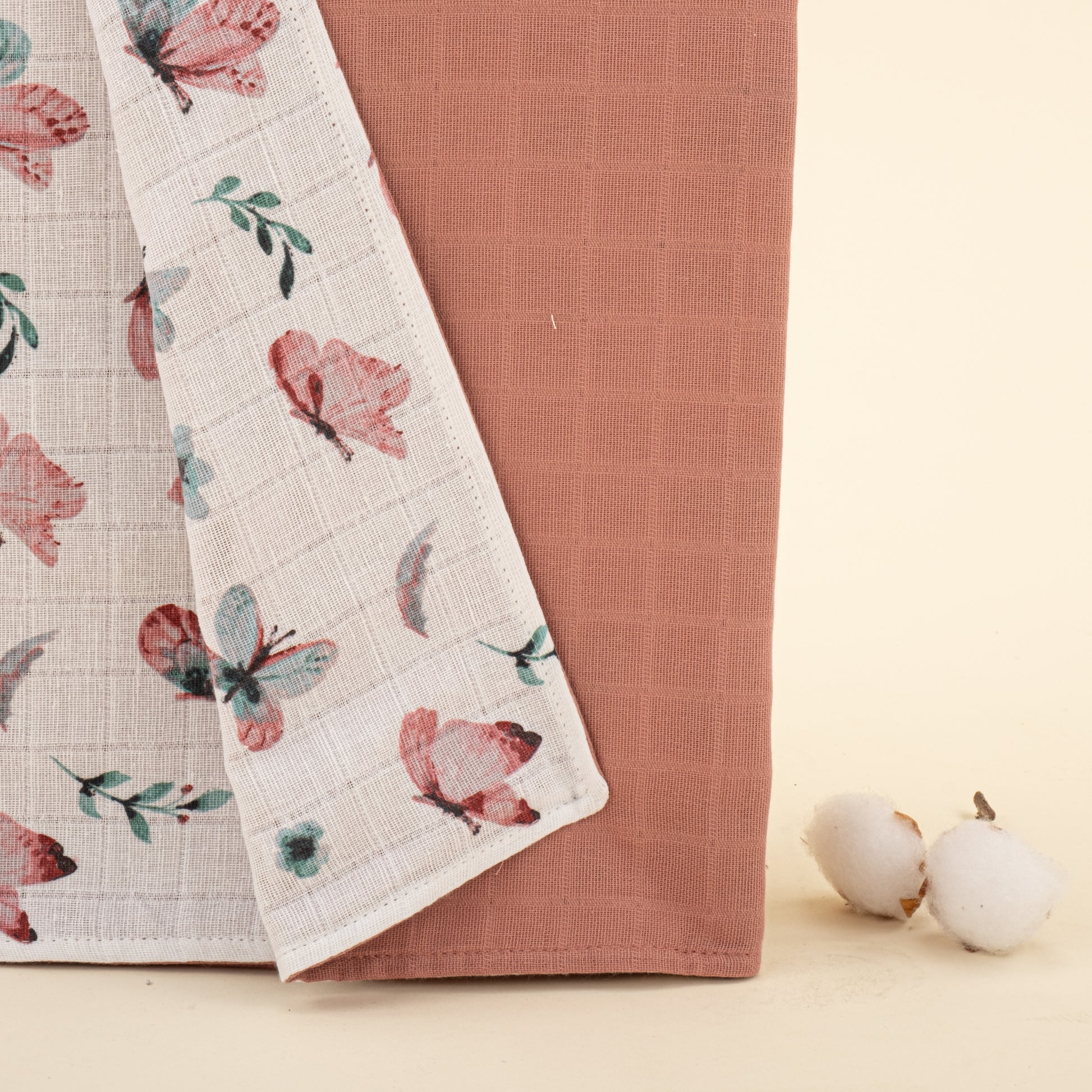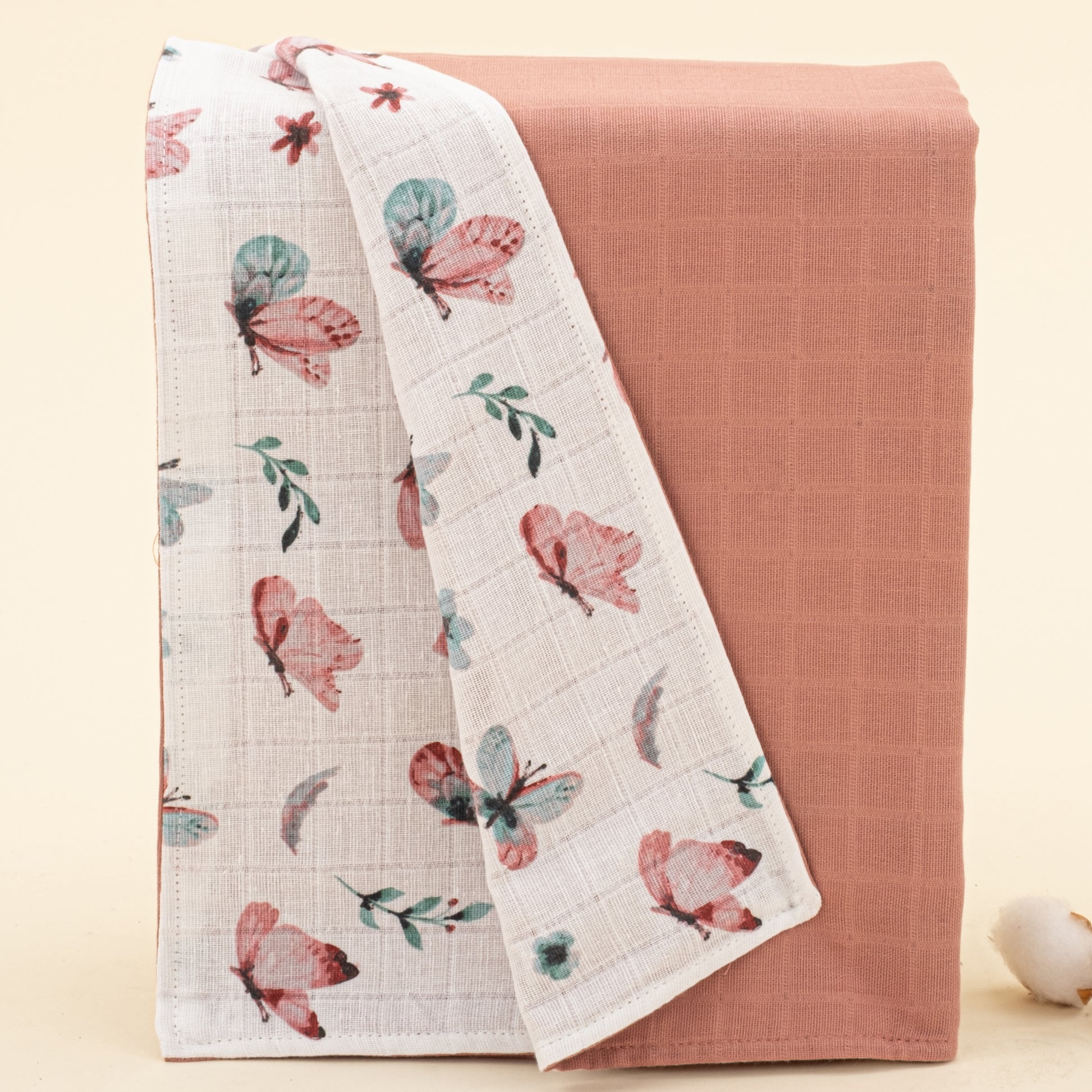 Çift Taraflı Muslin Örtü - Gül Kurusu Muslin - Kelebekler