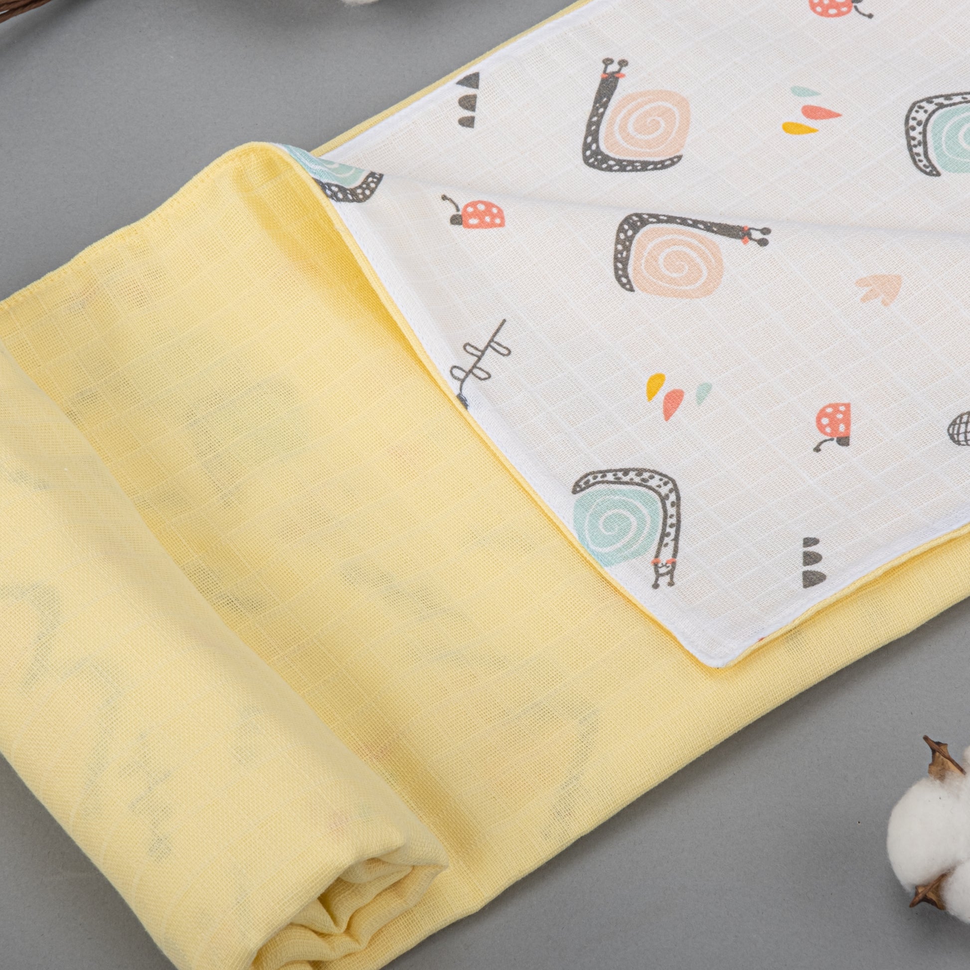 Çift Taraflı Muslin Örtü - Sarı Muslin - Salyangoz