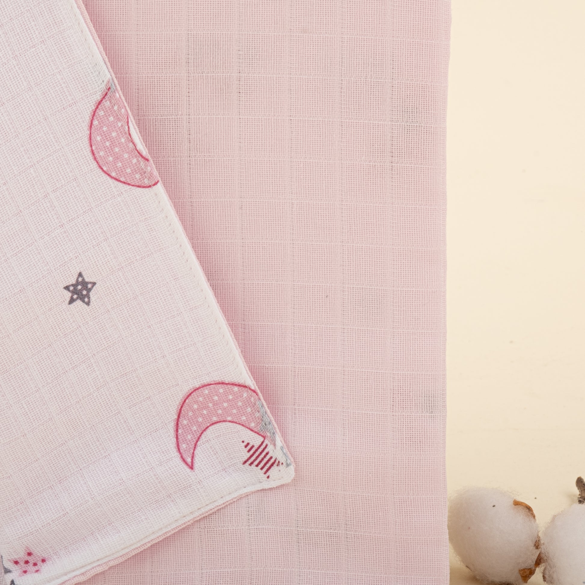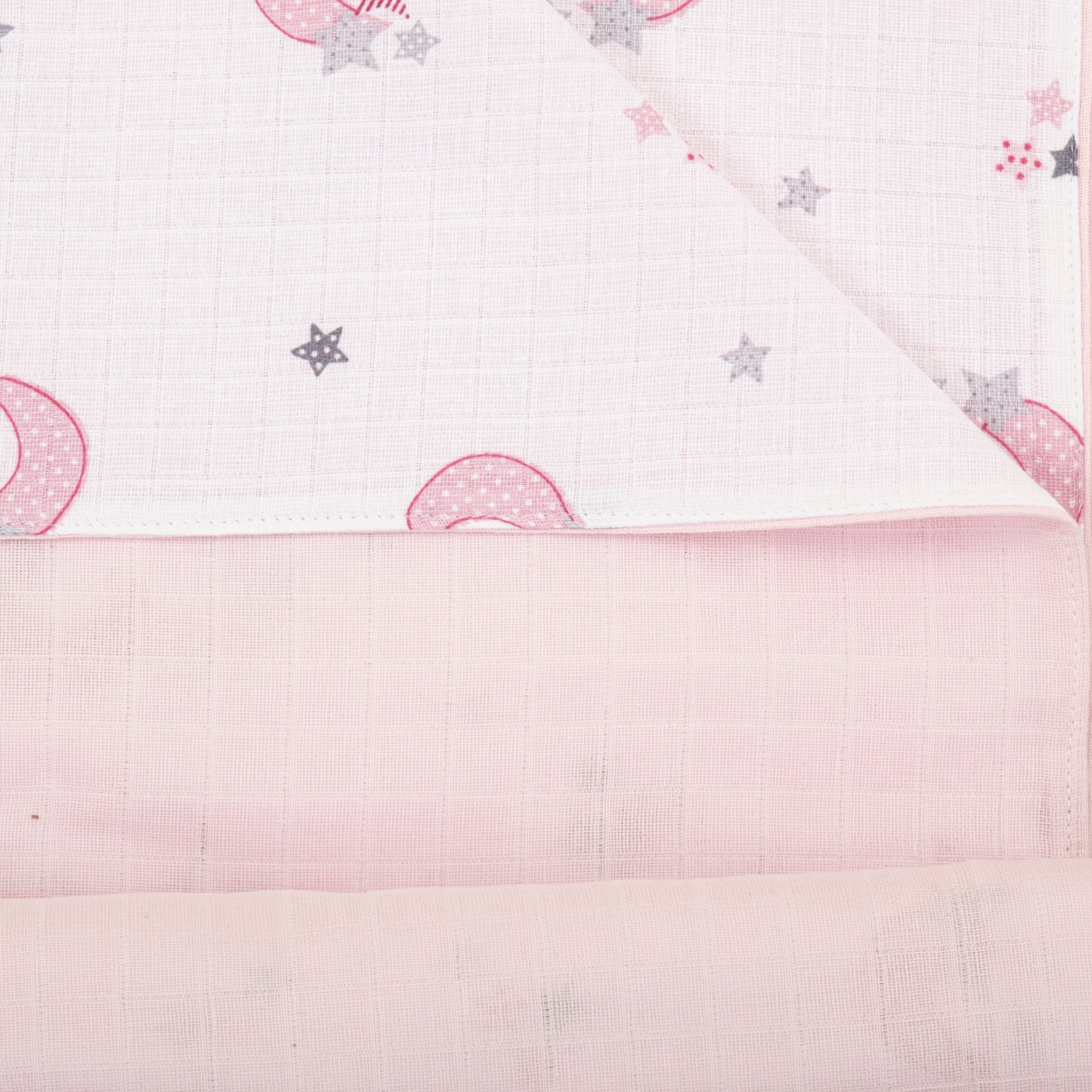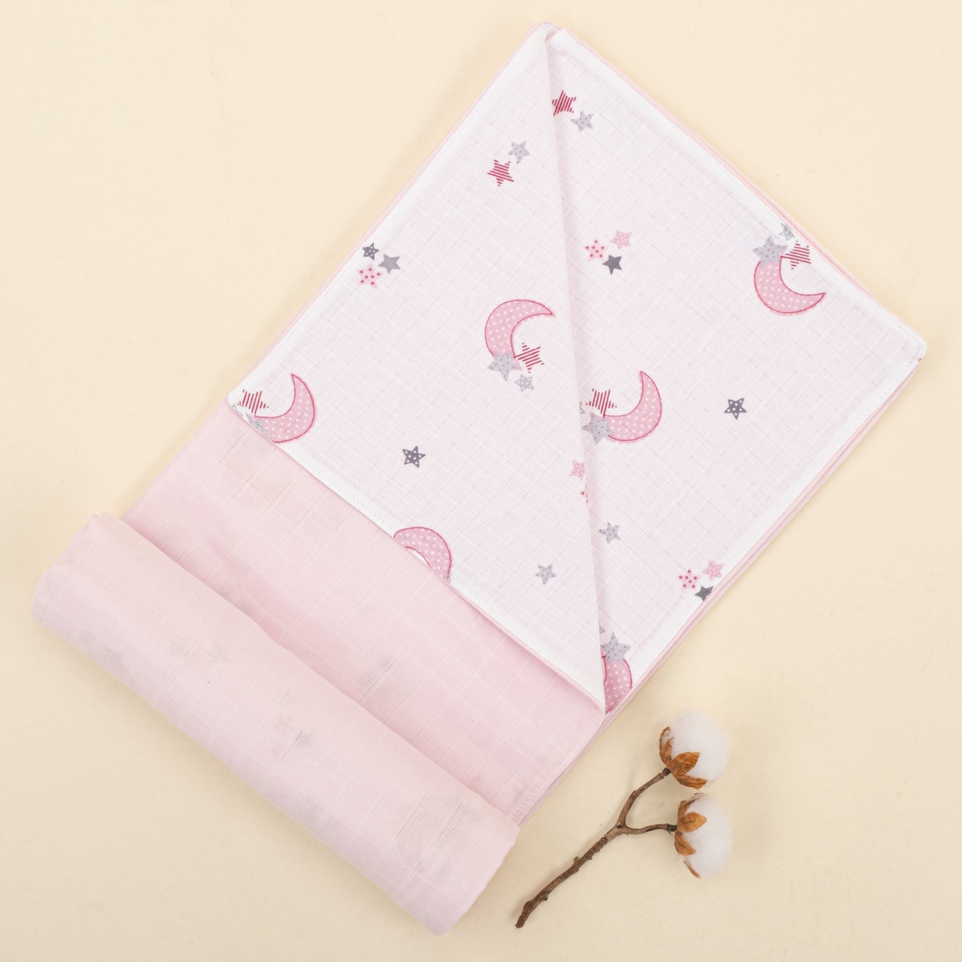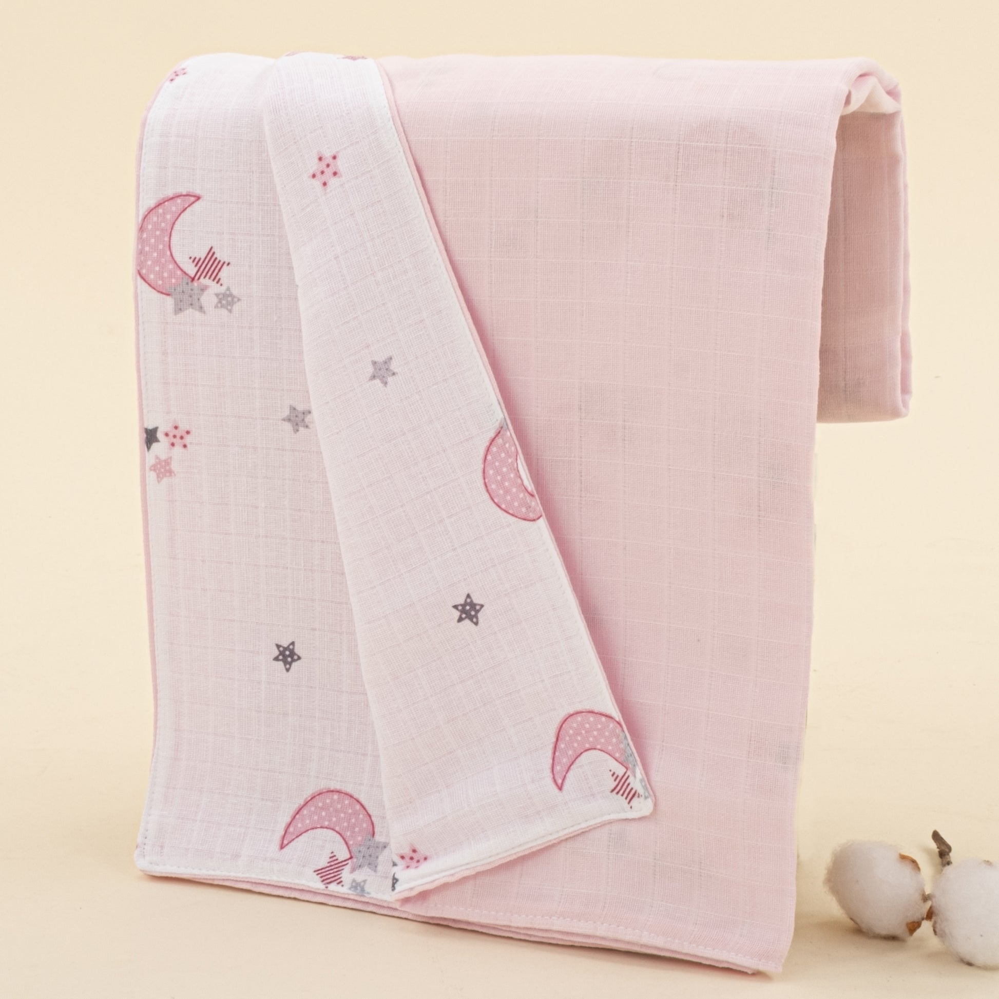 Çift Taraflı Muslin Örtü - Bebe Pembe Muslin - Pembe Ay