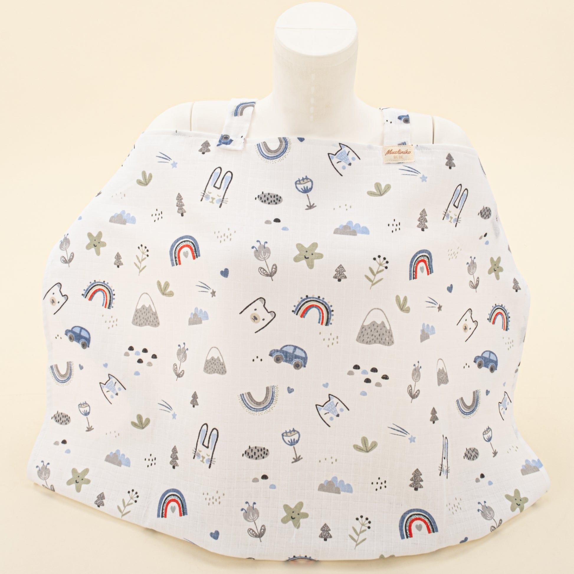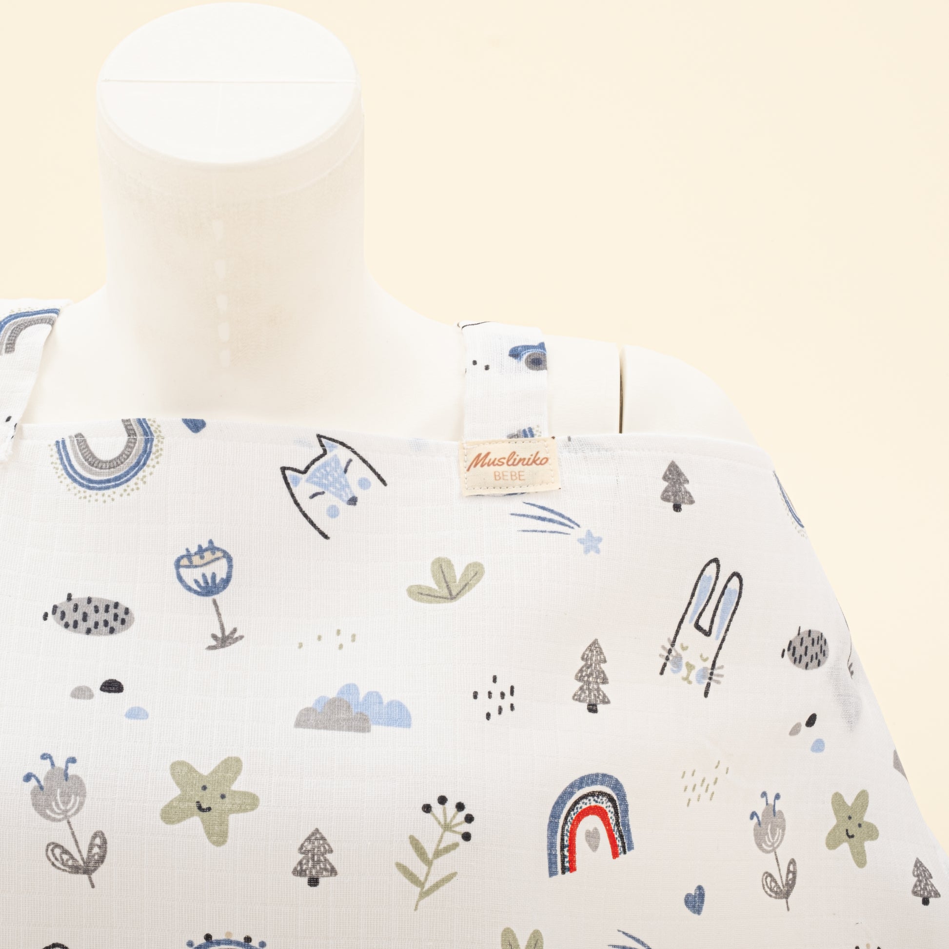 Çift Katlı Muslin Emzirme Önlüğü - Mavi Kedi