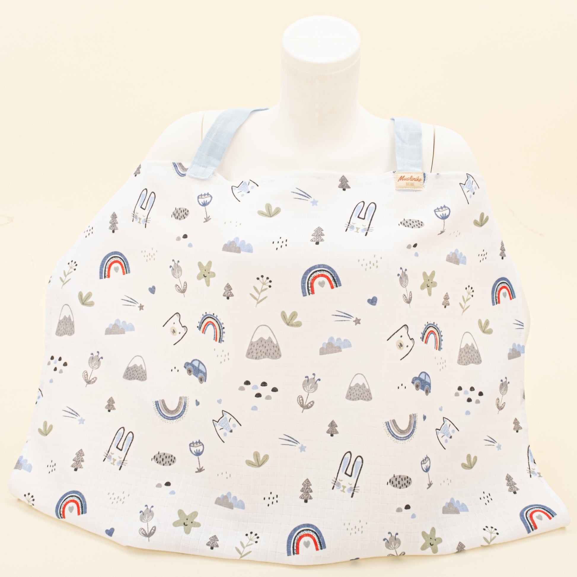 Çift Katlı Muslin Emzirme Önlüğü - Mavi Kedi