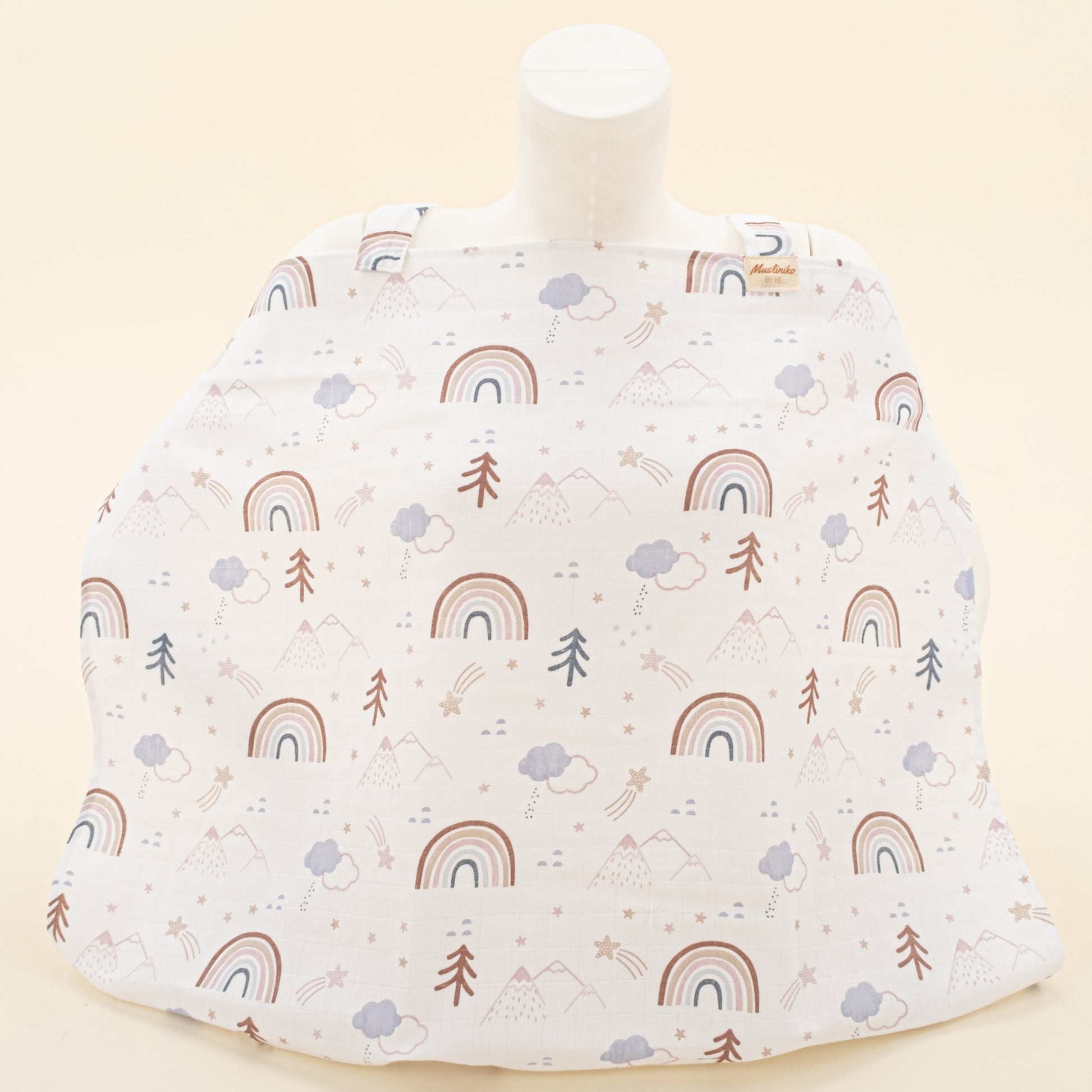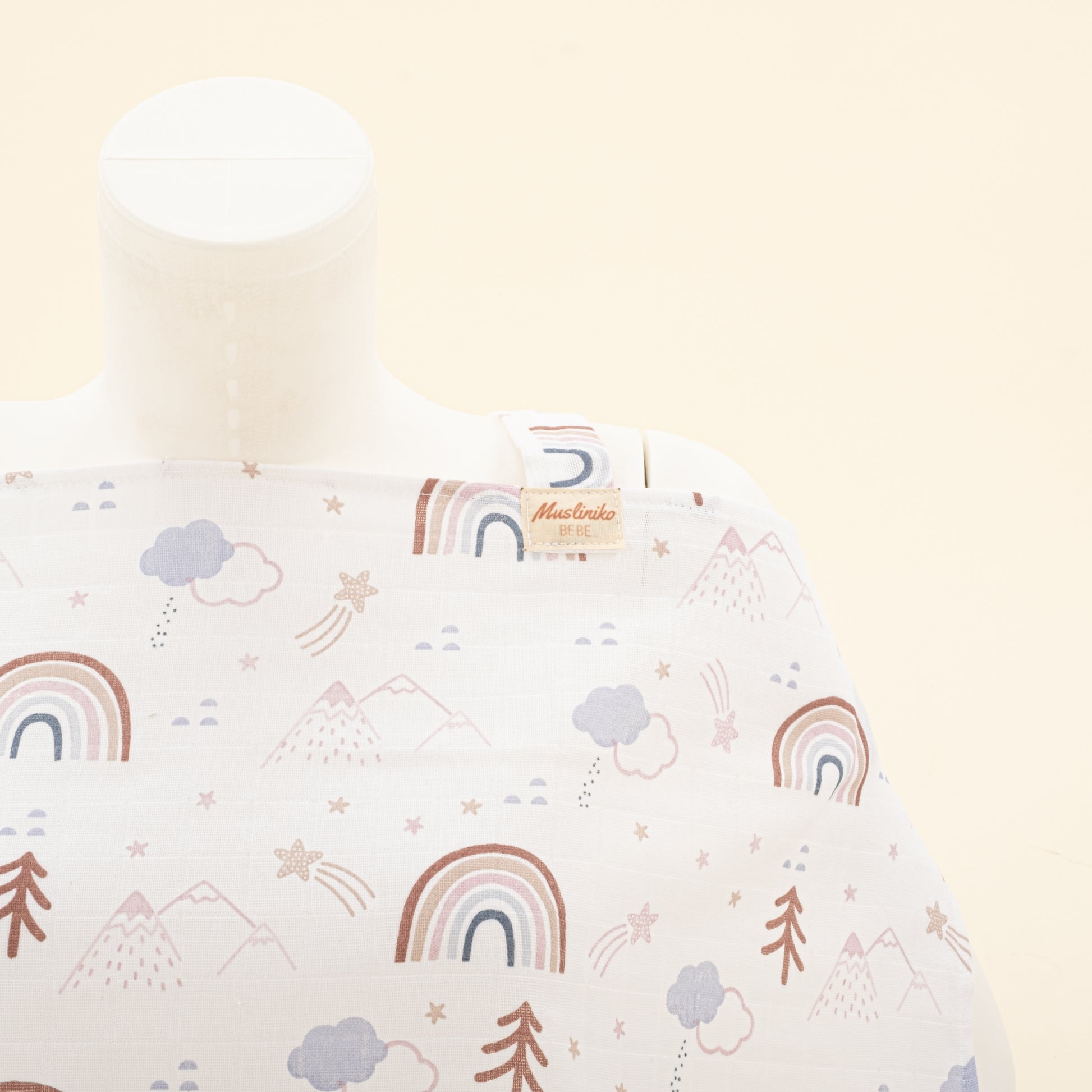 Emzirme Önlüğü Çift Taraflı Muslin Kumaştan Üretilmektedir.