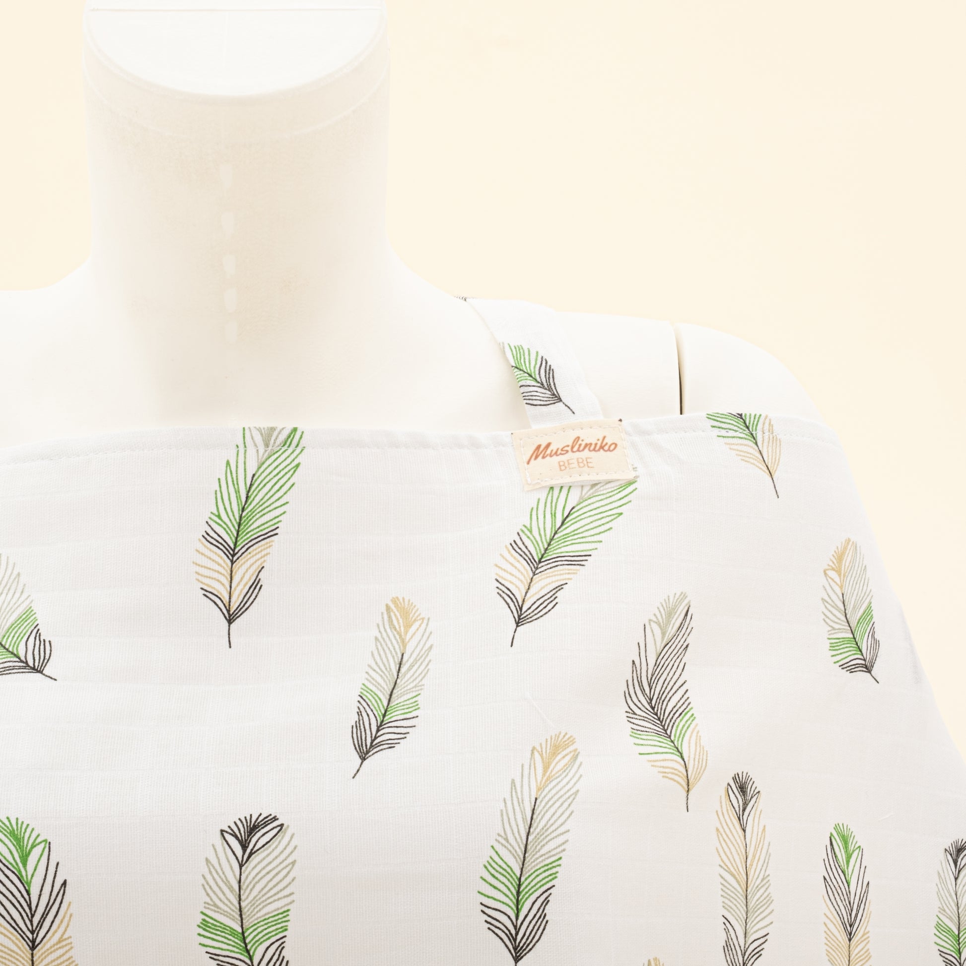 Çift Katlı Muslin Emzirme Önlüğü - Yeşil Tüy