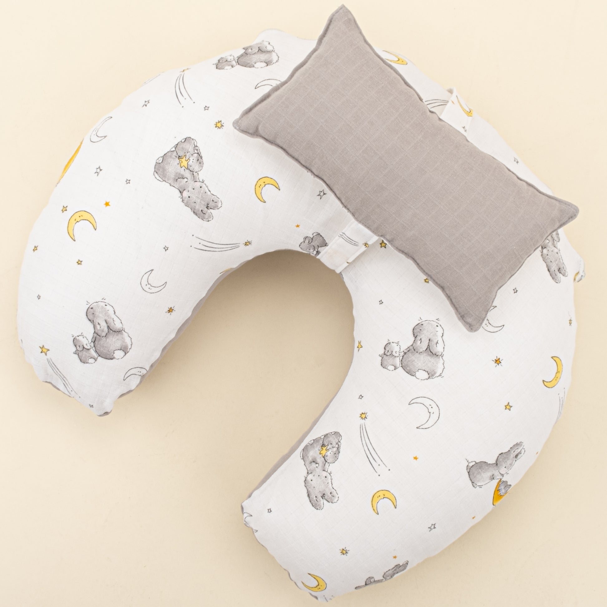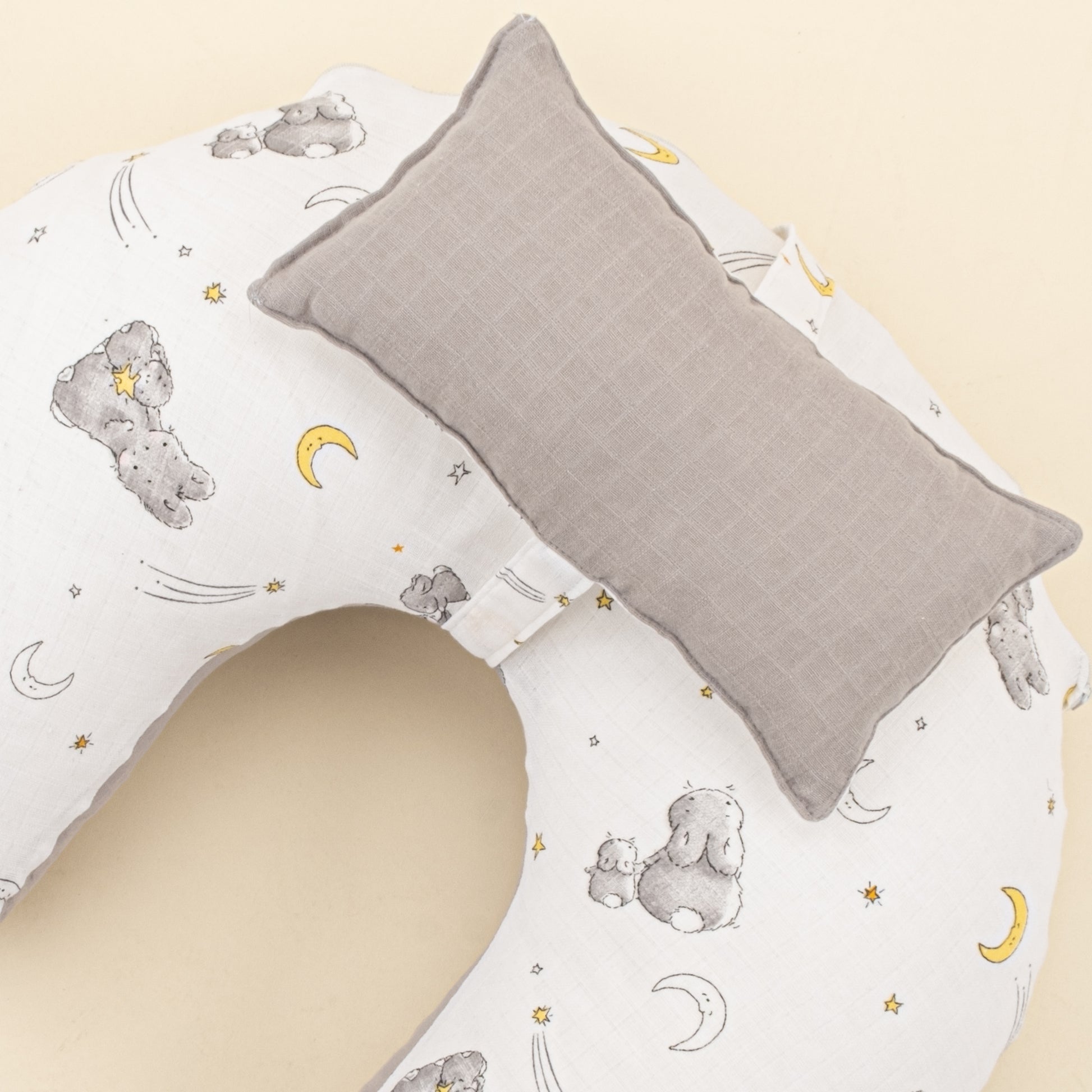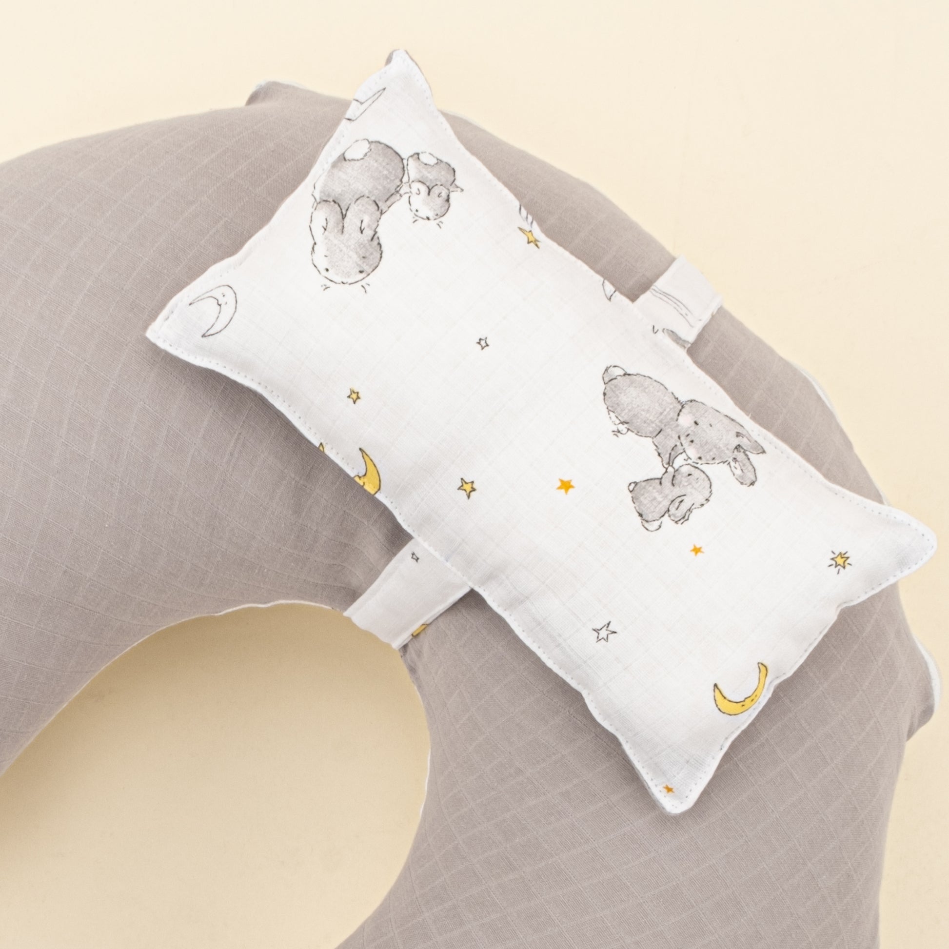 Emzirme Yastığı - Çift Taraflı - Açık Gri Muslin - Gri Tavşan
