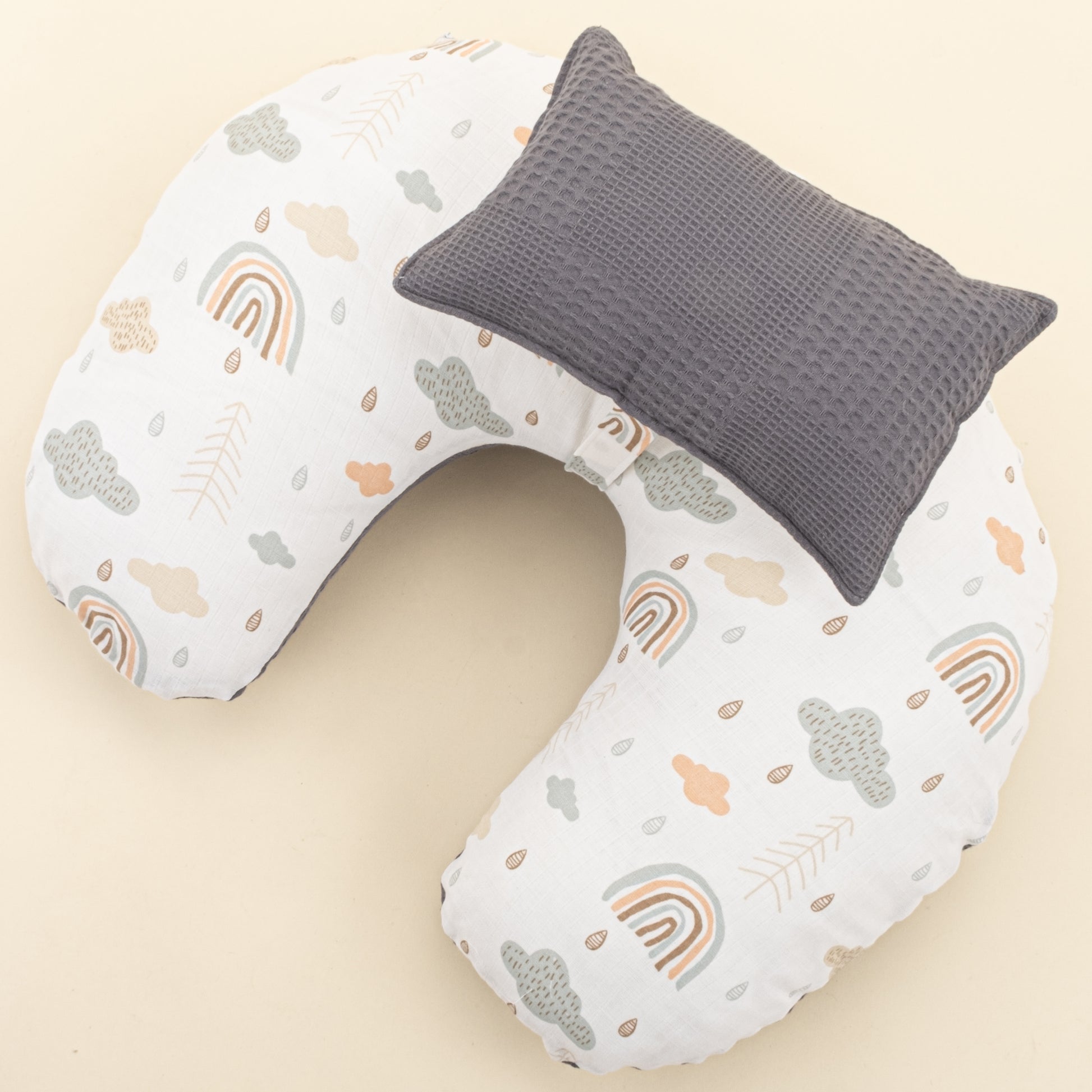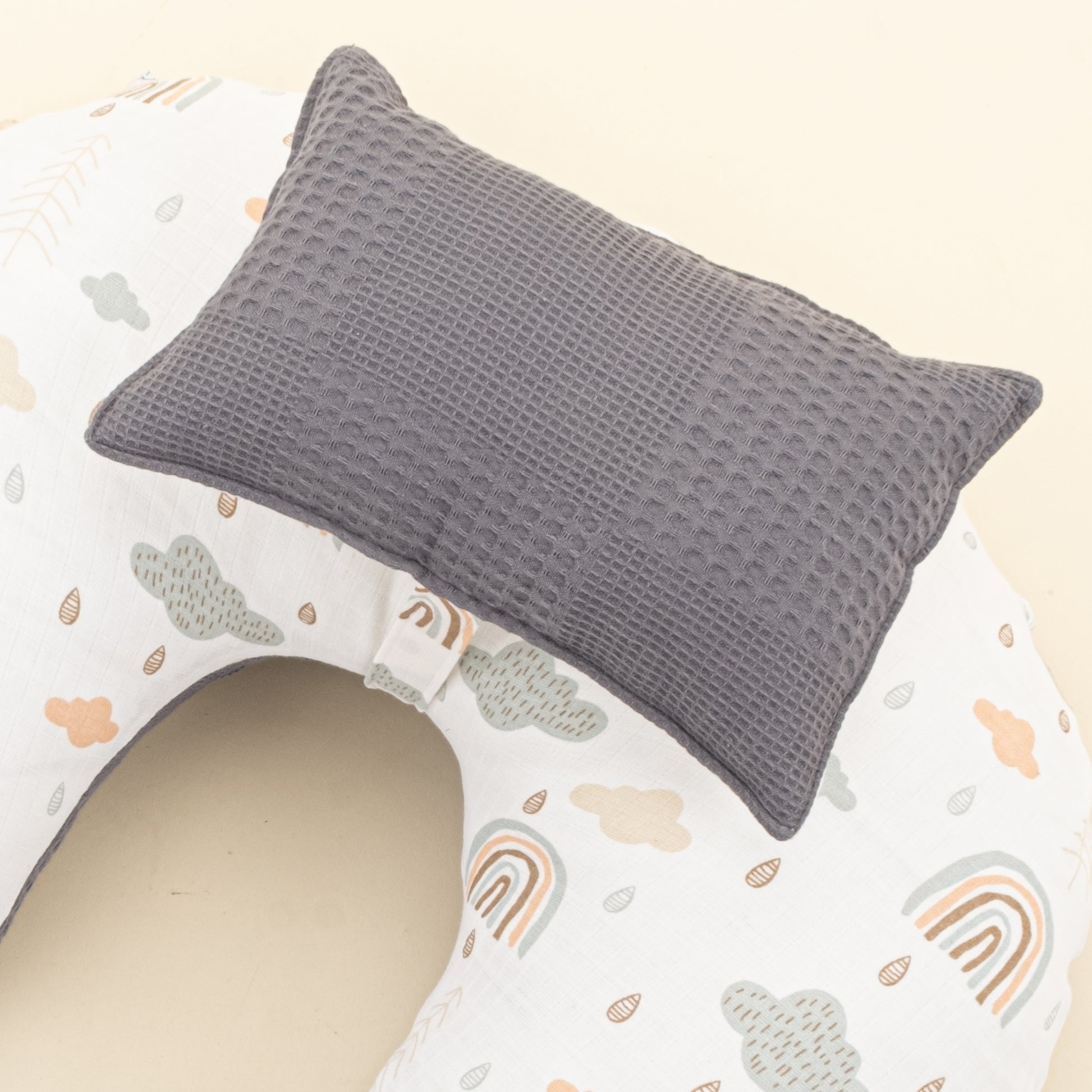 Emzirme Yastığı - Çift Taraflı - Antrasit Waffle - Yeşil Gökkuşağı