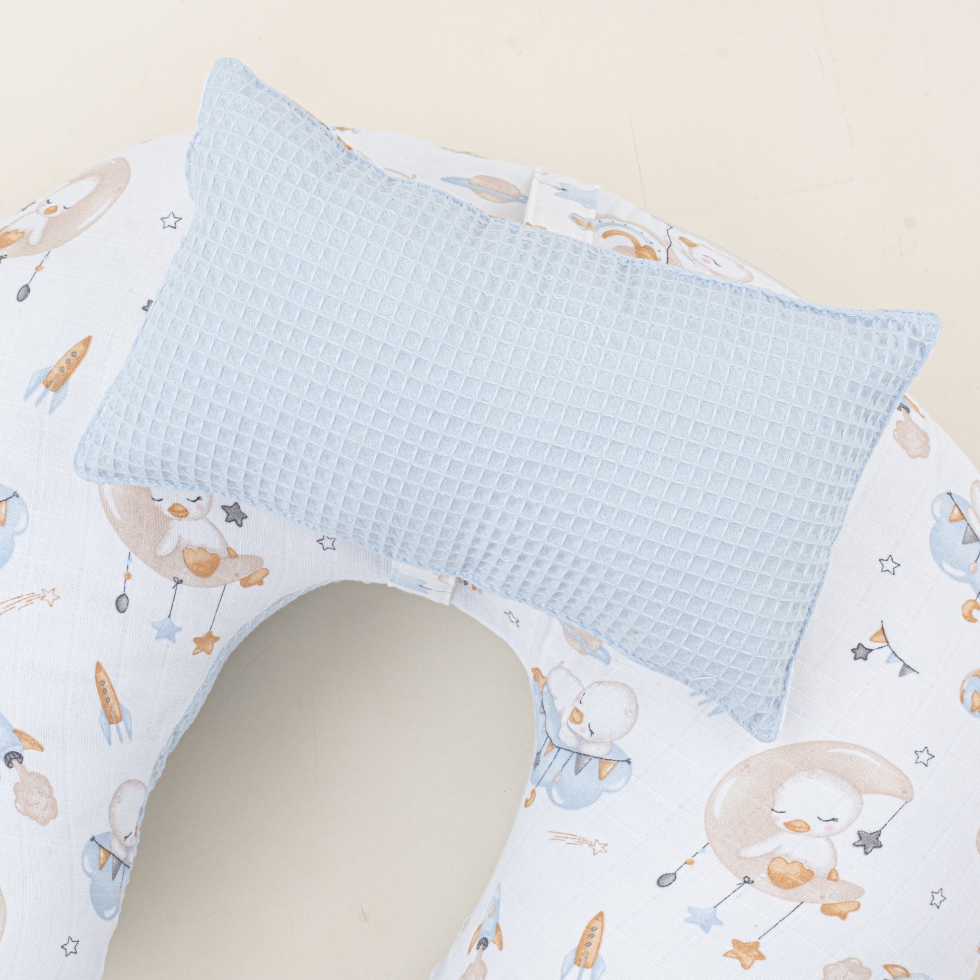 Emzirme Yastığı - Çift Taraflı - Bebe Mavi Petek - Uykucu Ördek