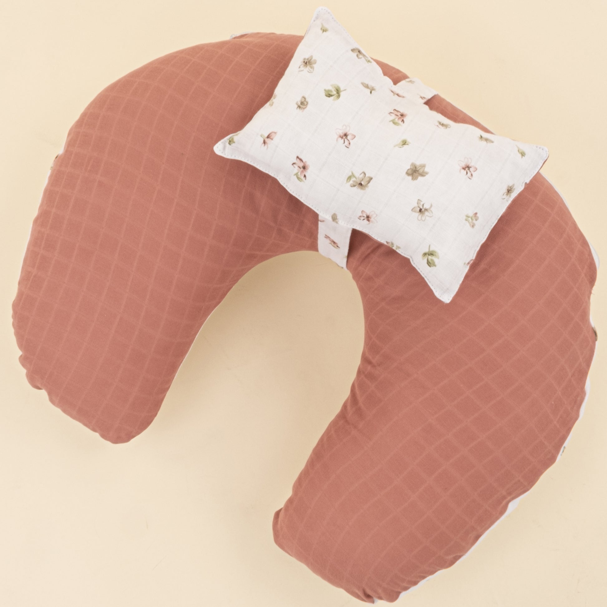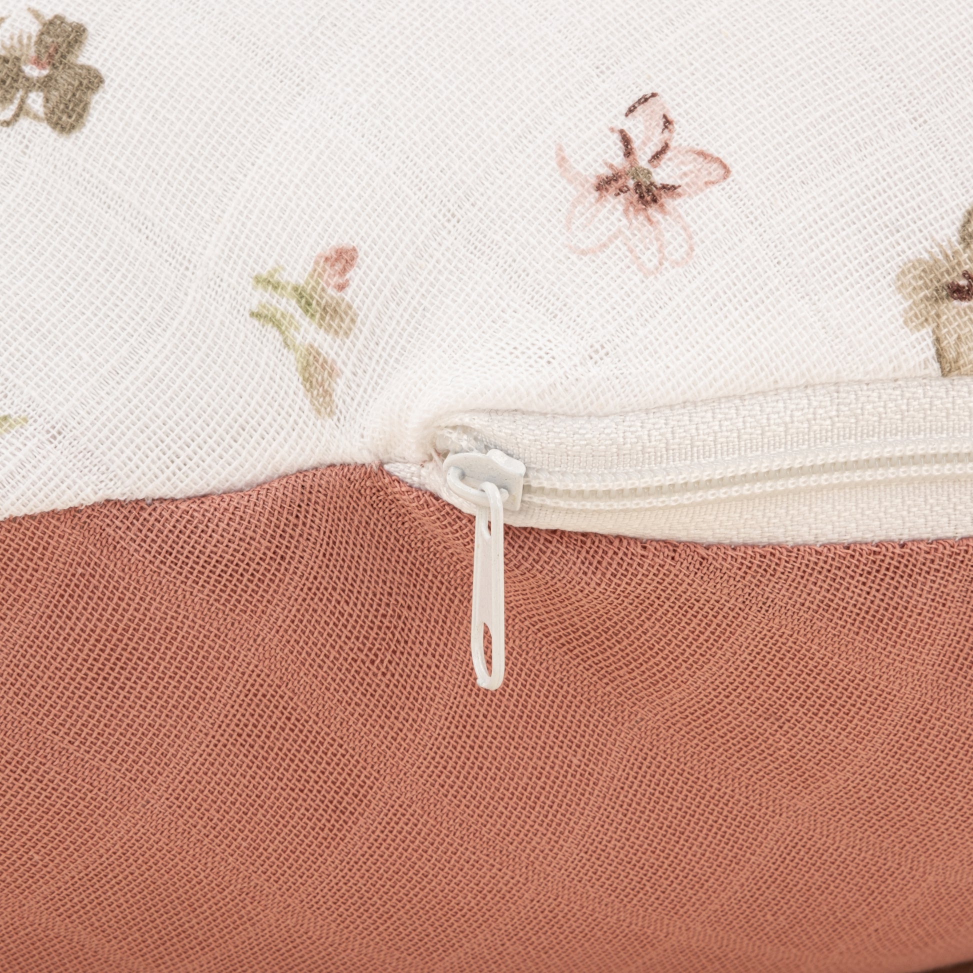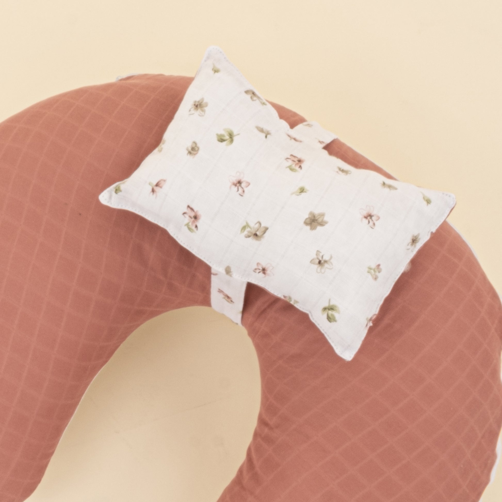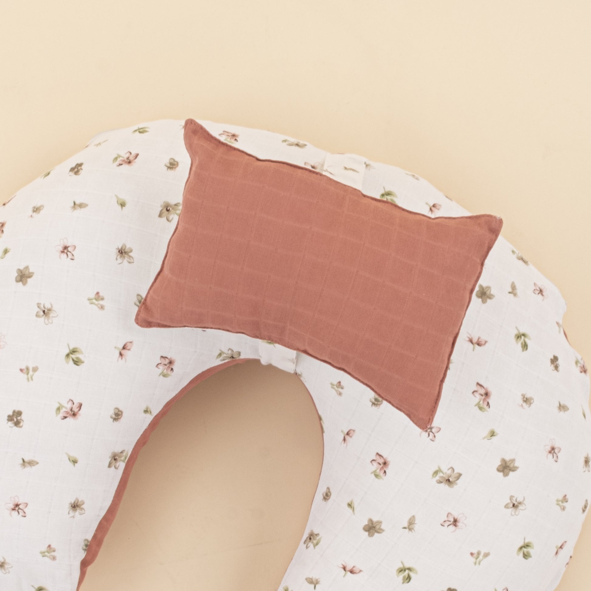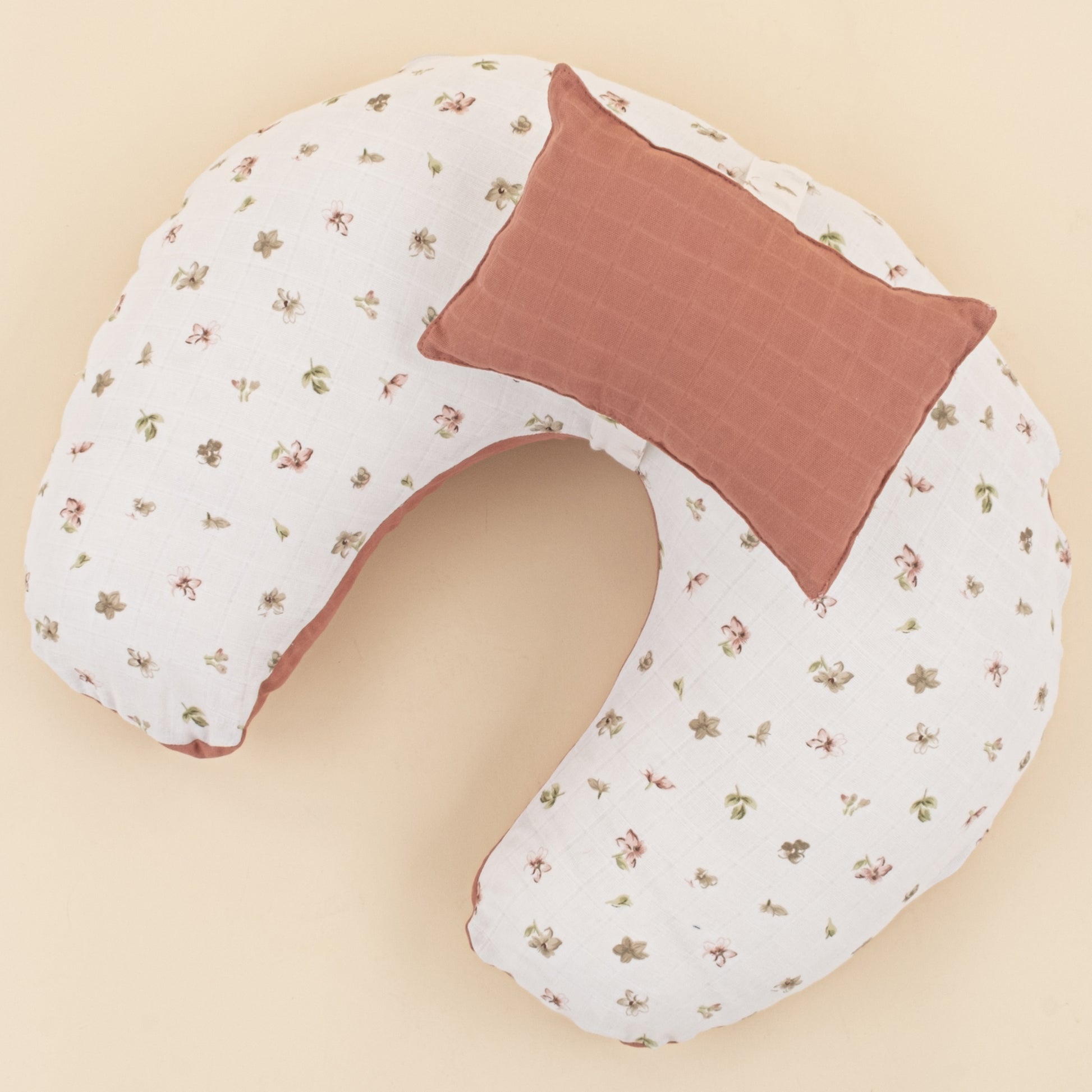 Emzirme Yastığı - Çift Taraflı - Gül Kurusu Muslin - Çiçekler