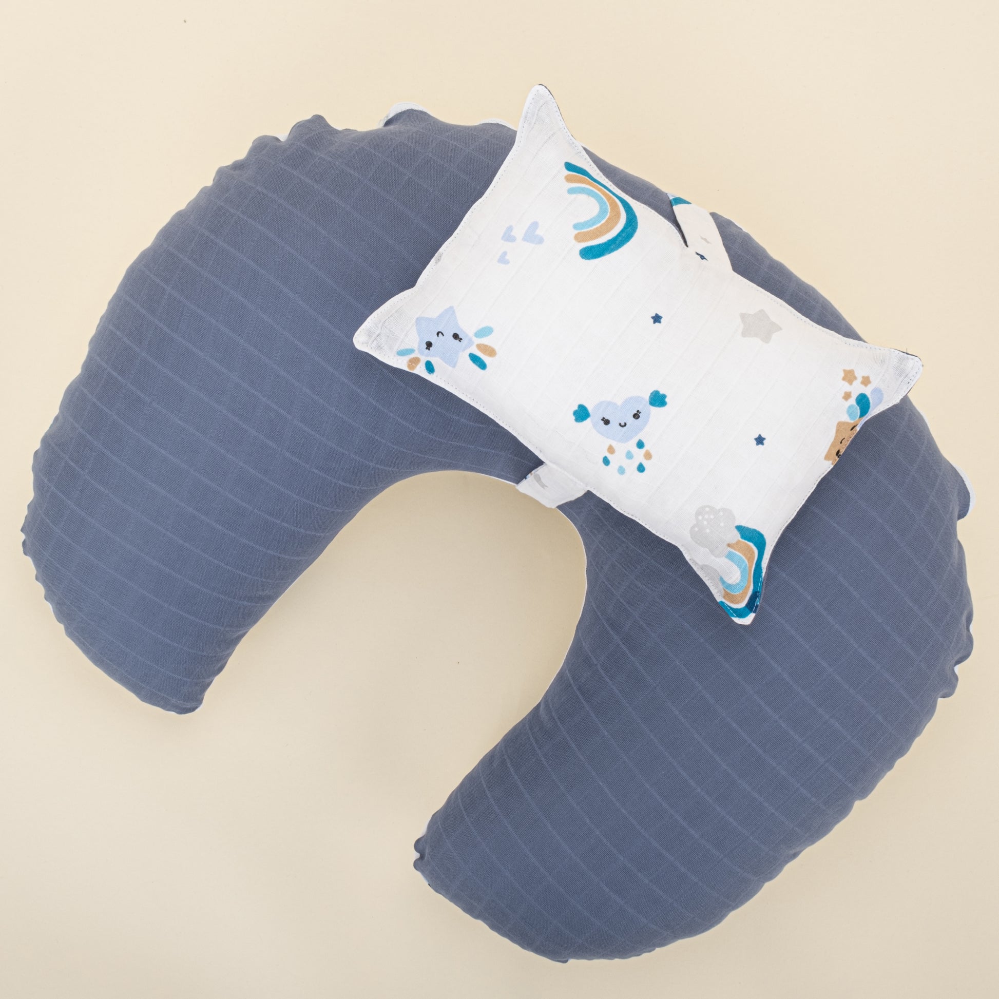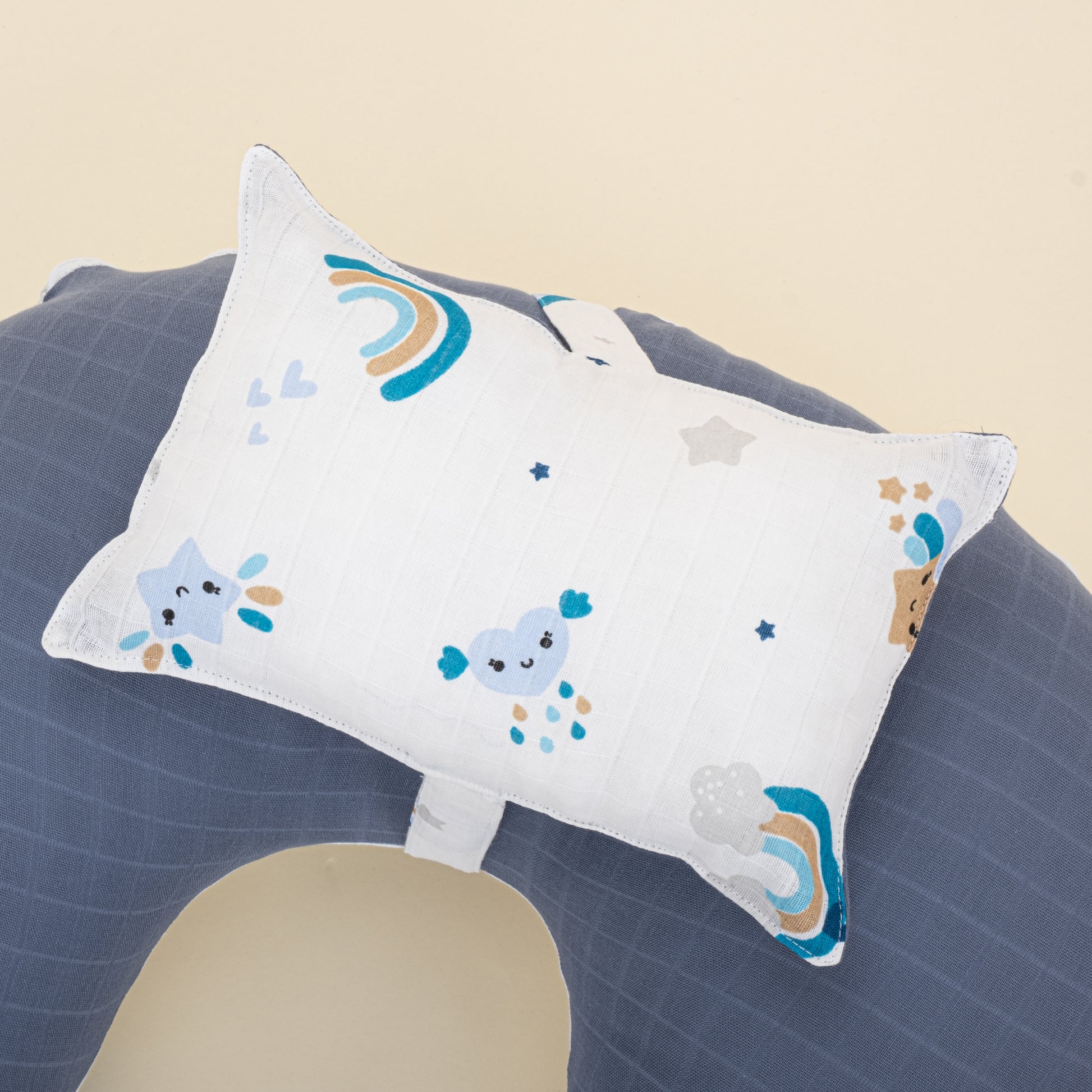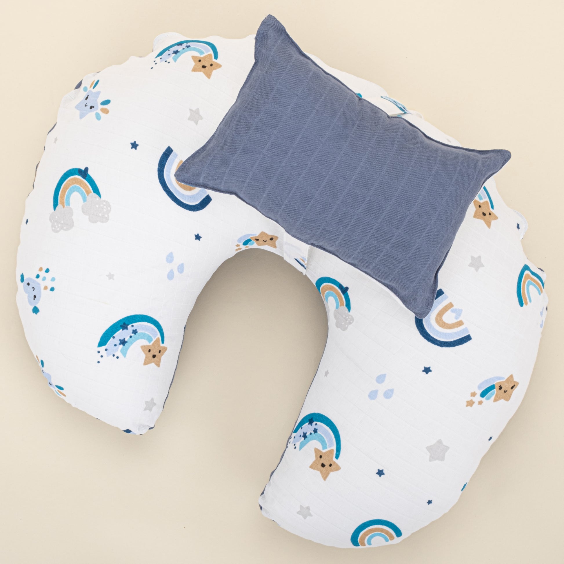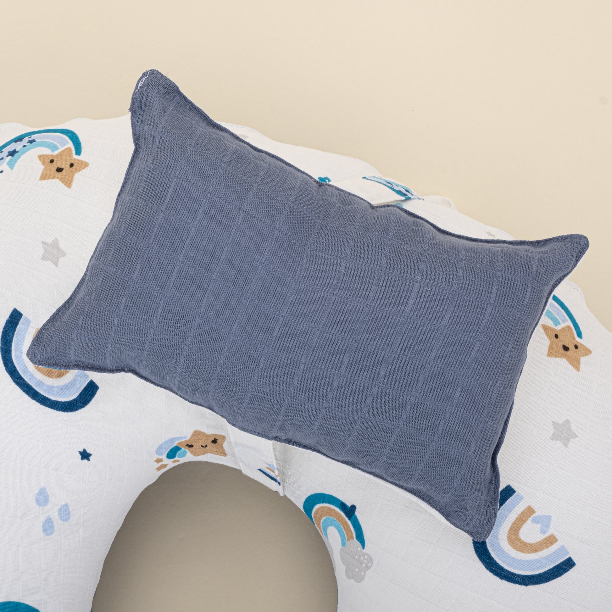 Emzirme Yastığı - Çift Taraflı - İndigo Müslin - Mavi Gökkuşağı
