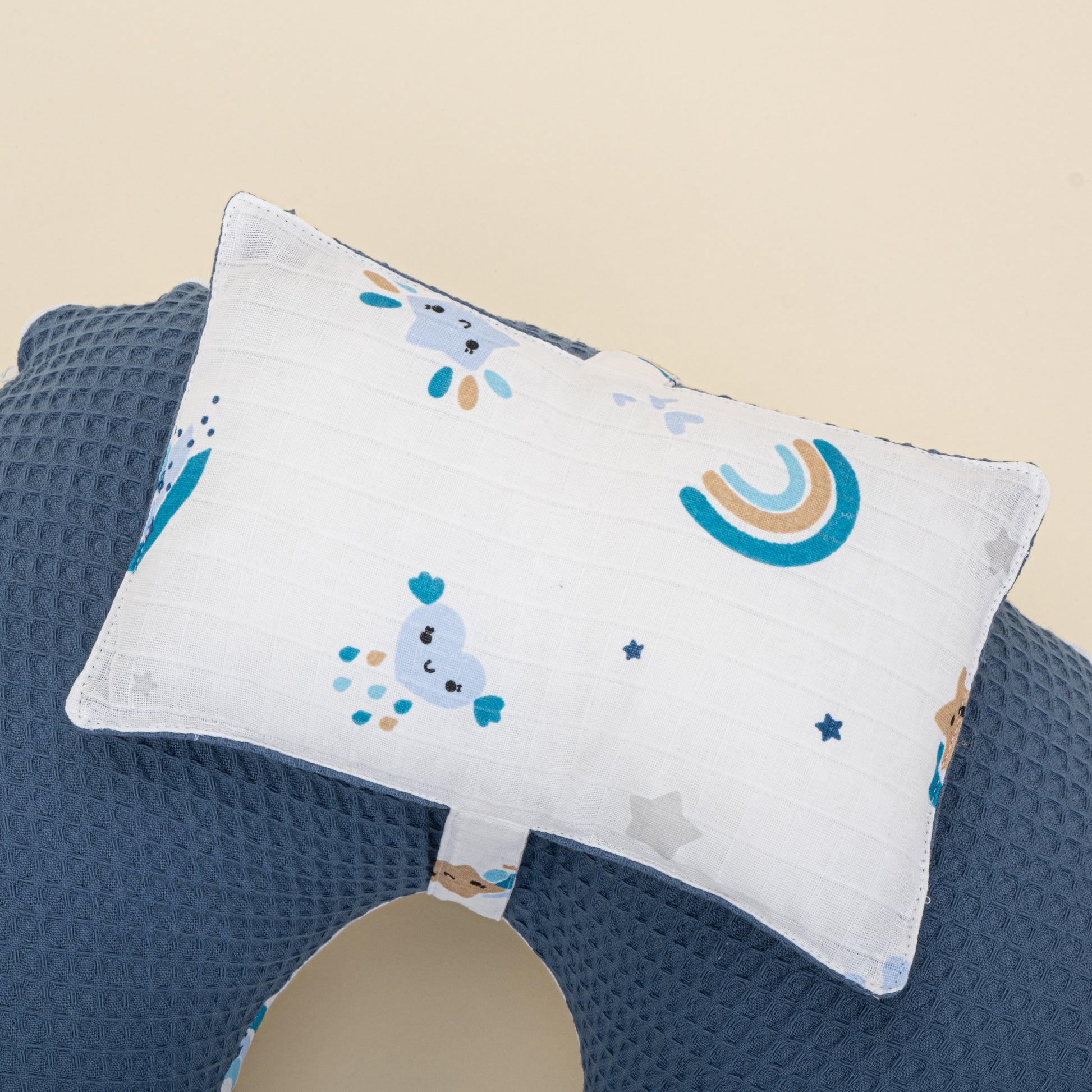 Emzirme Yastığı - Çift Taraflı - İndigo Petek - Mavi Gökkuşağı
