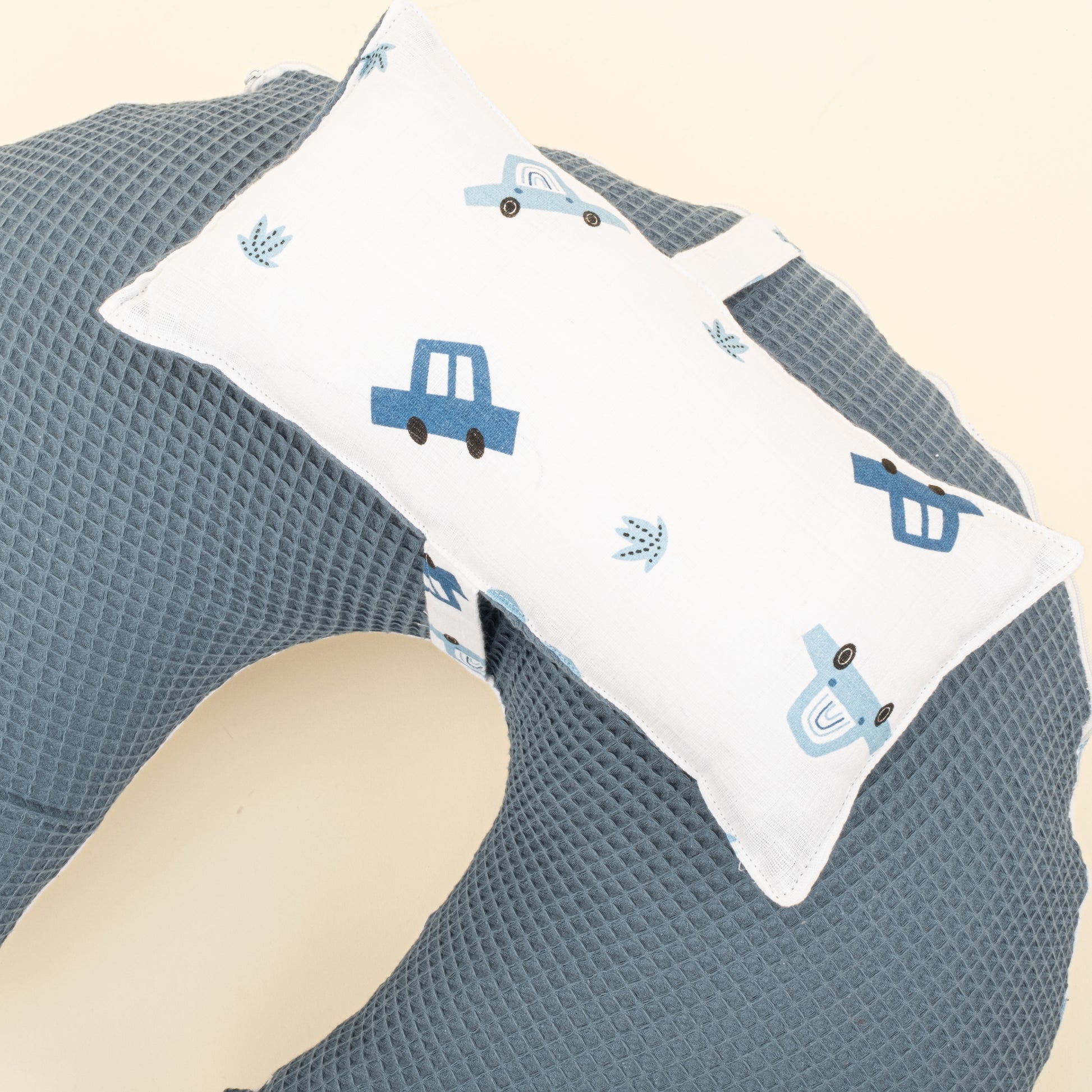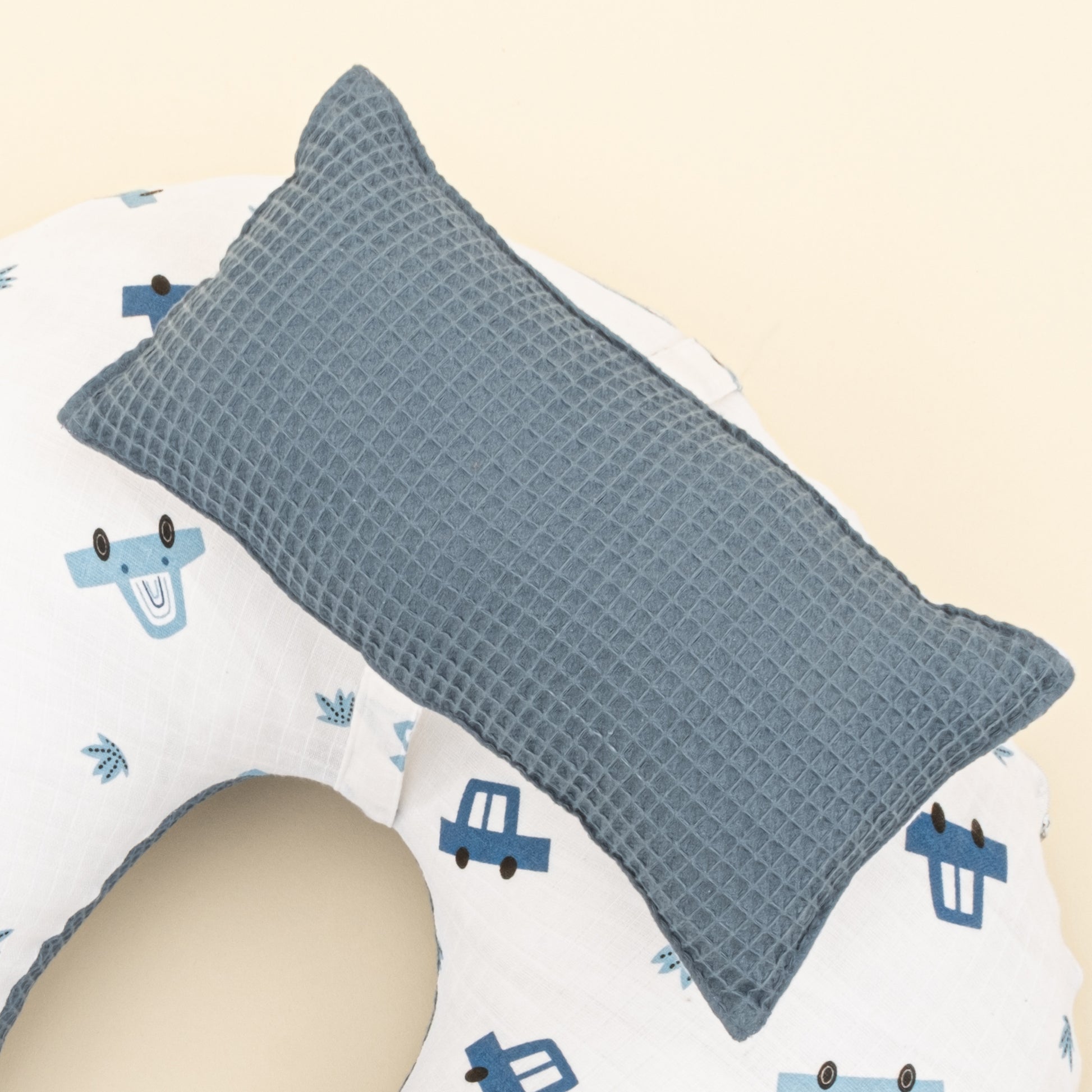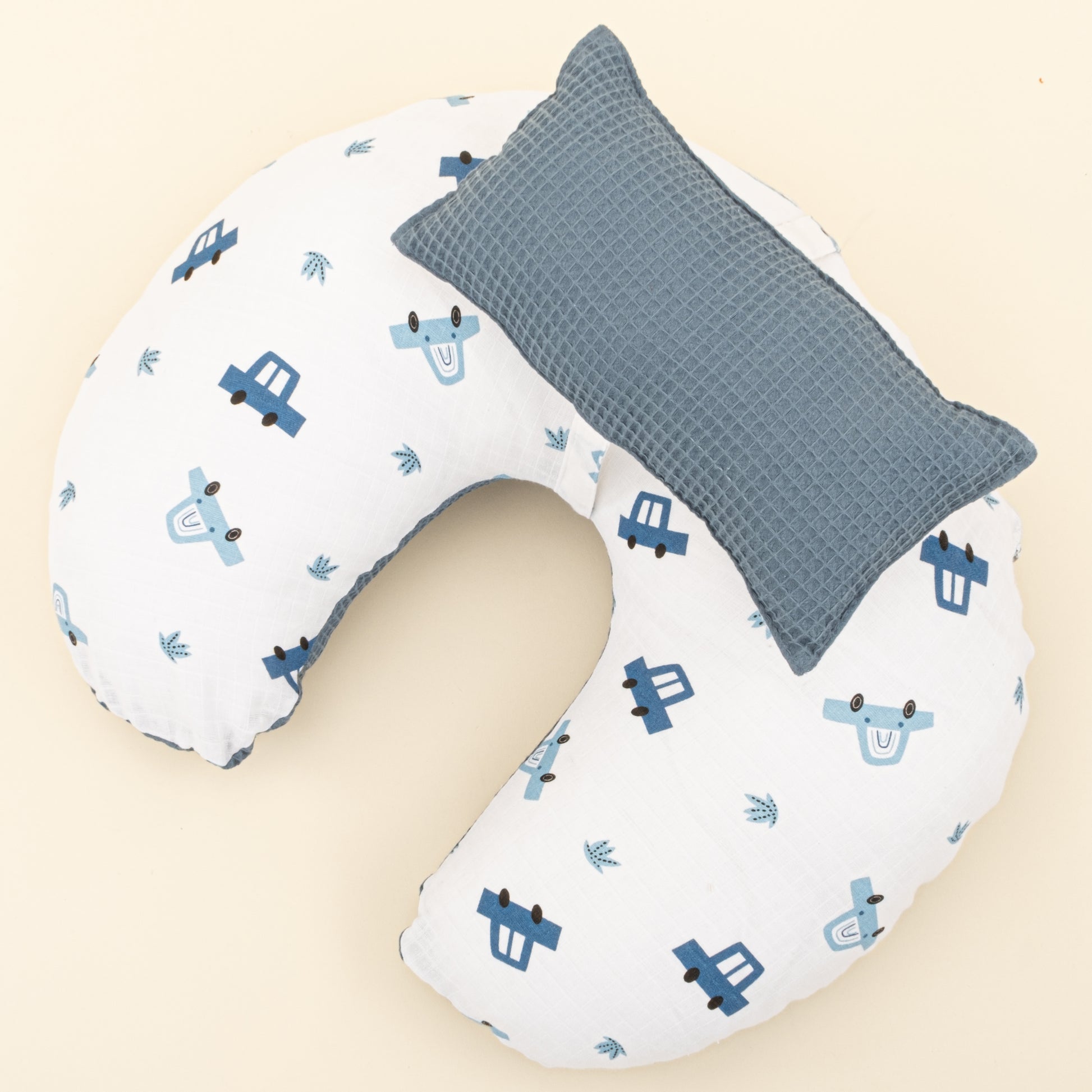 Emzirme Yastığı - Çift Taraflı - Koyu Mavi Petek - Mavi Arabalar