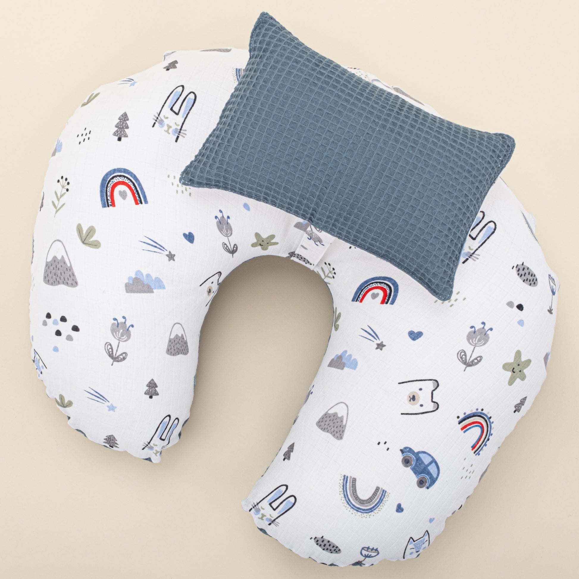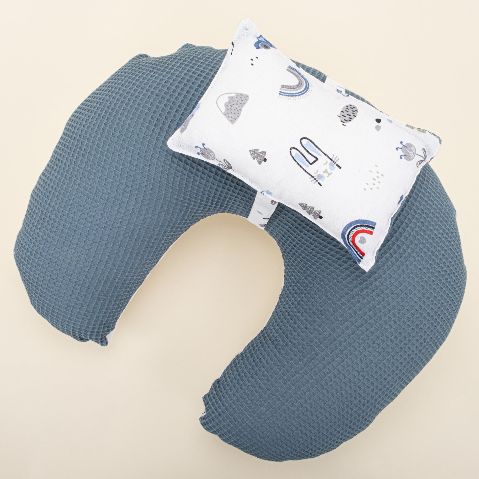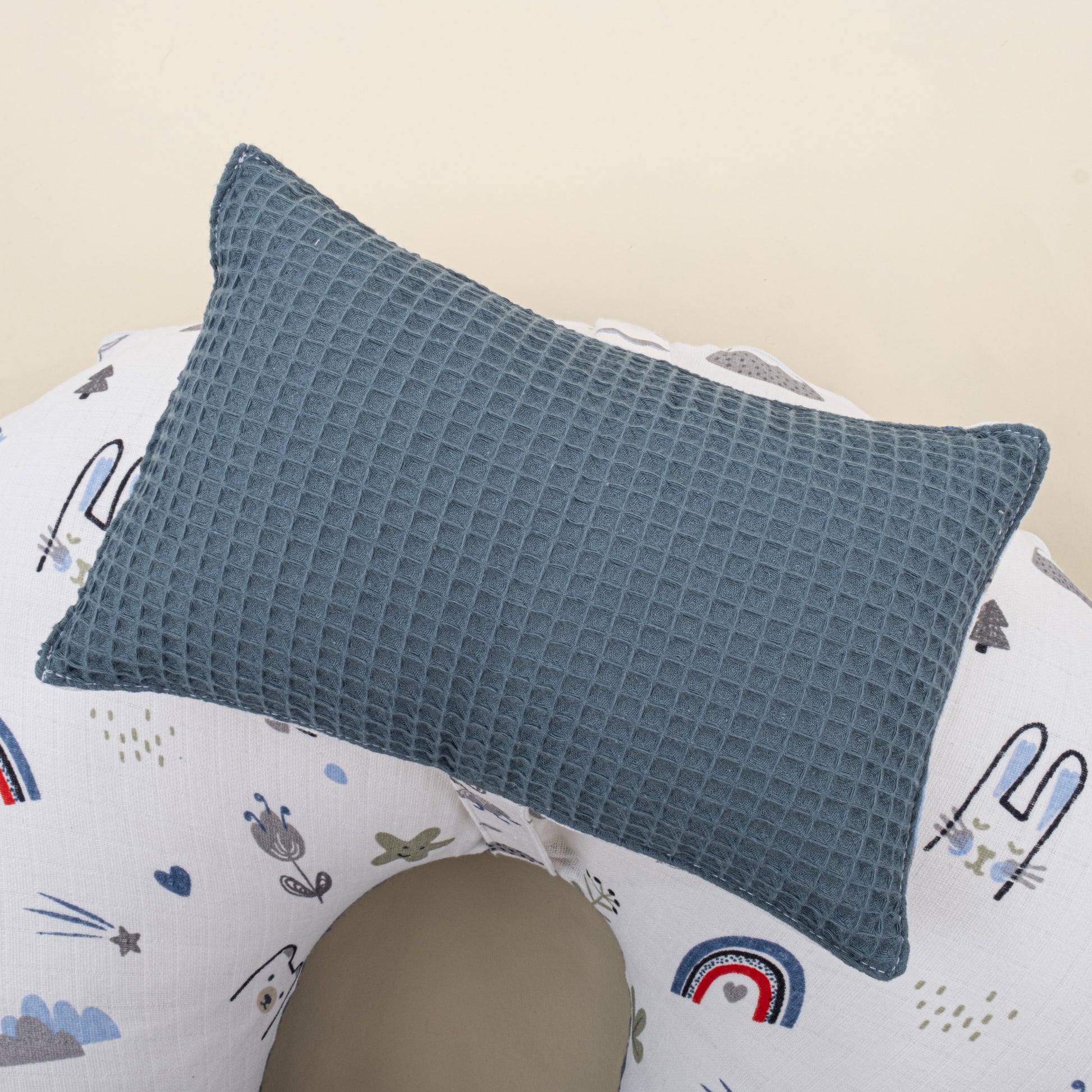 Emzirme Yastığı - Çift Taraflı - Koyu Mavi Petek - Mavi Kedi