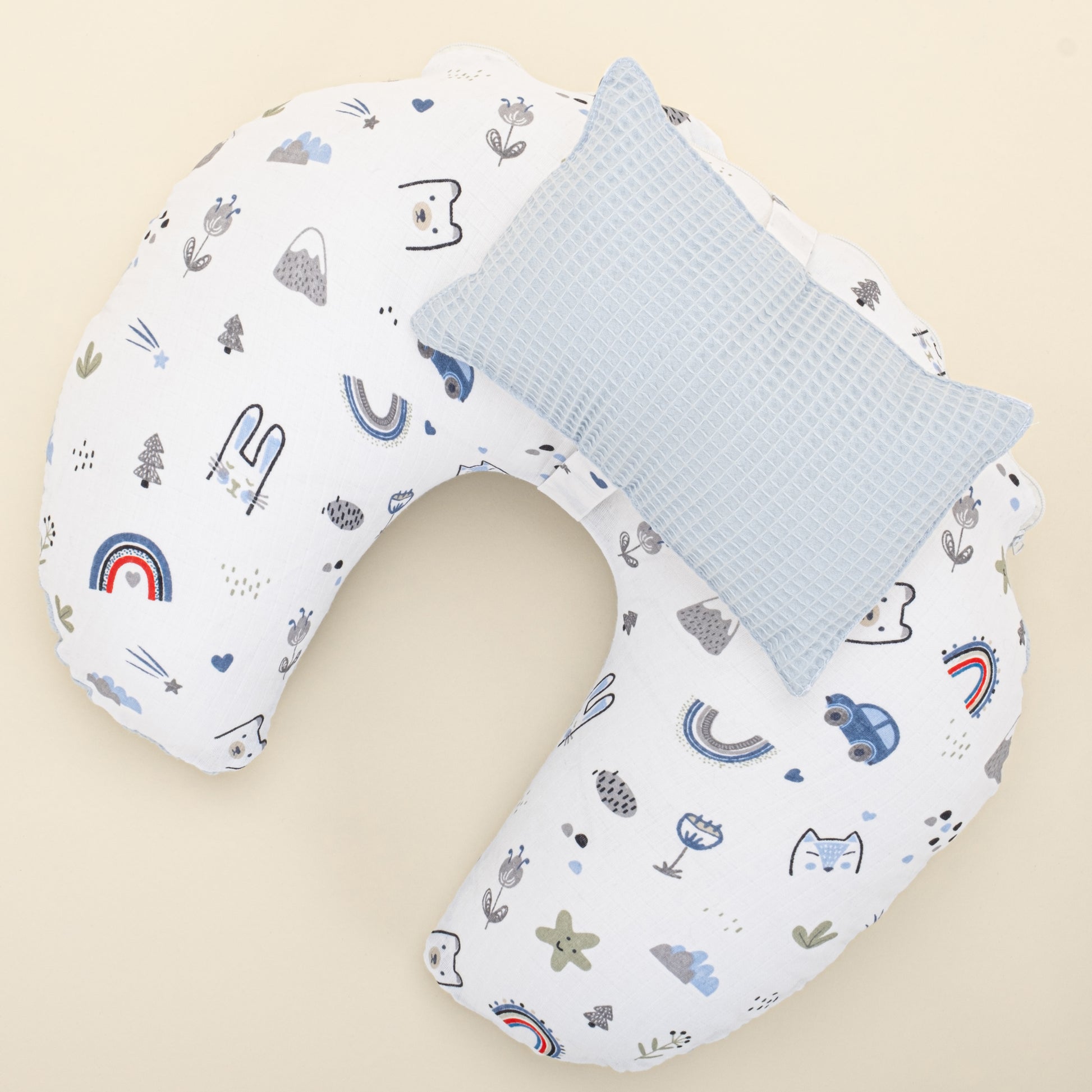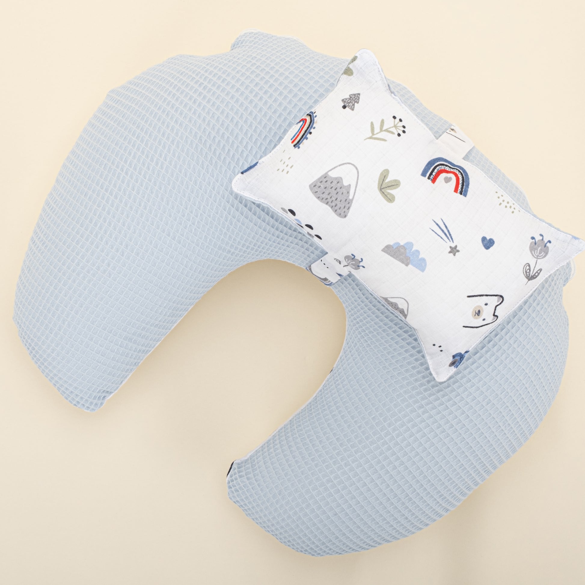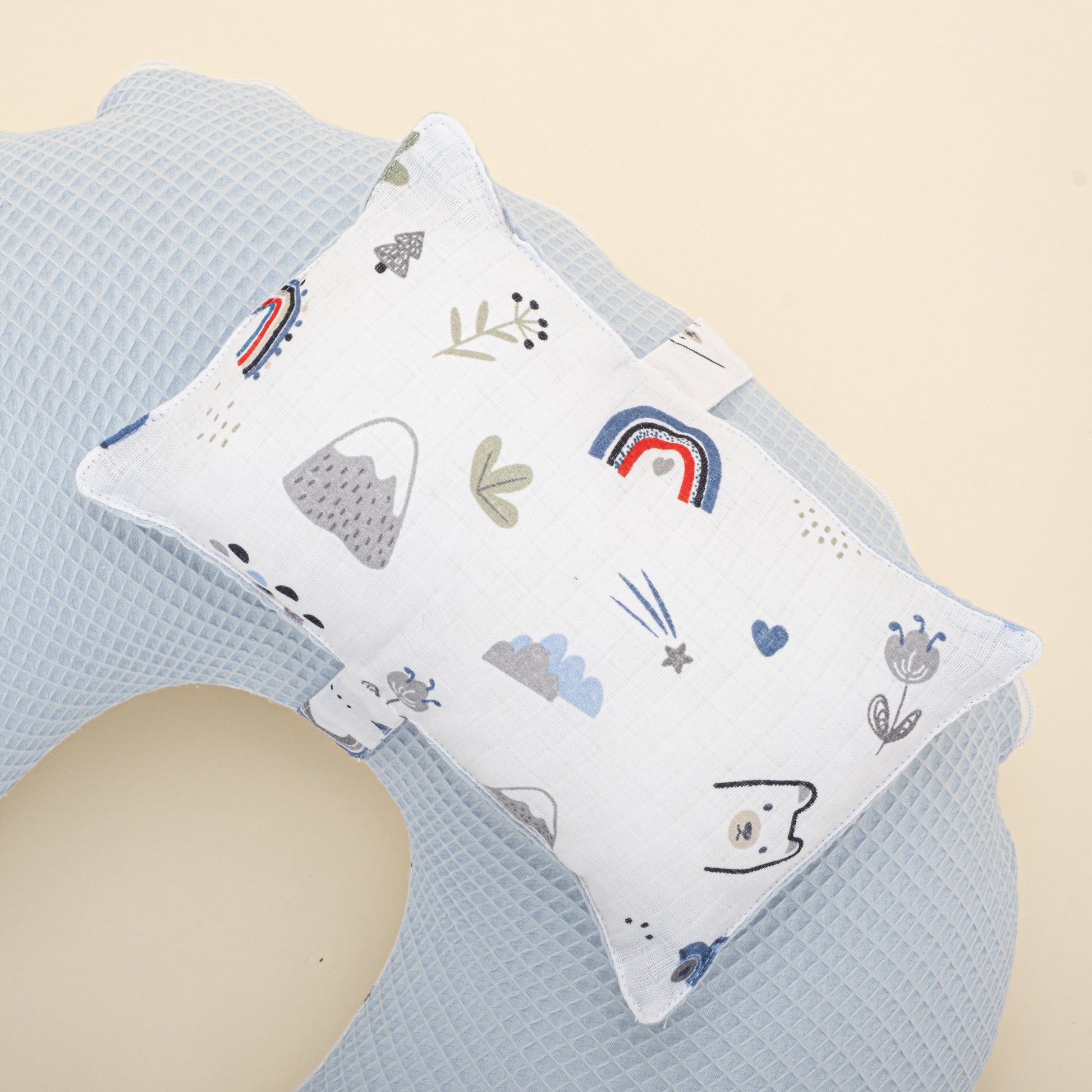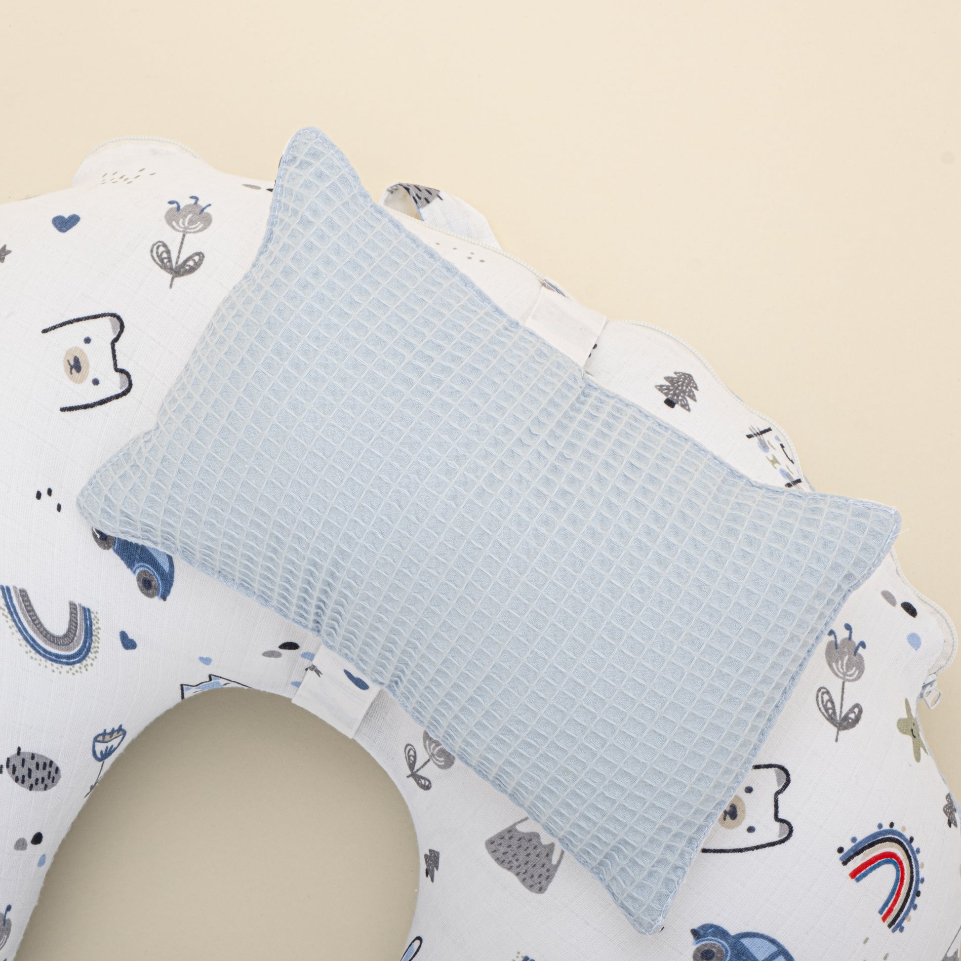 Emzirme Yastığı - Çift Taraflı - Bebe Mavi Petek - Mavi Kedi