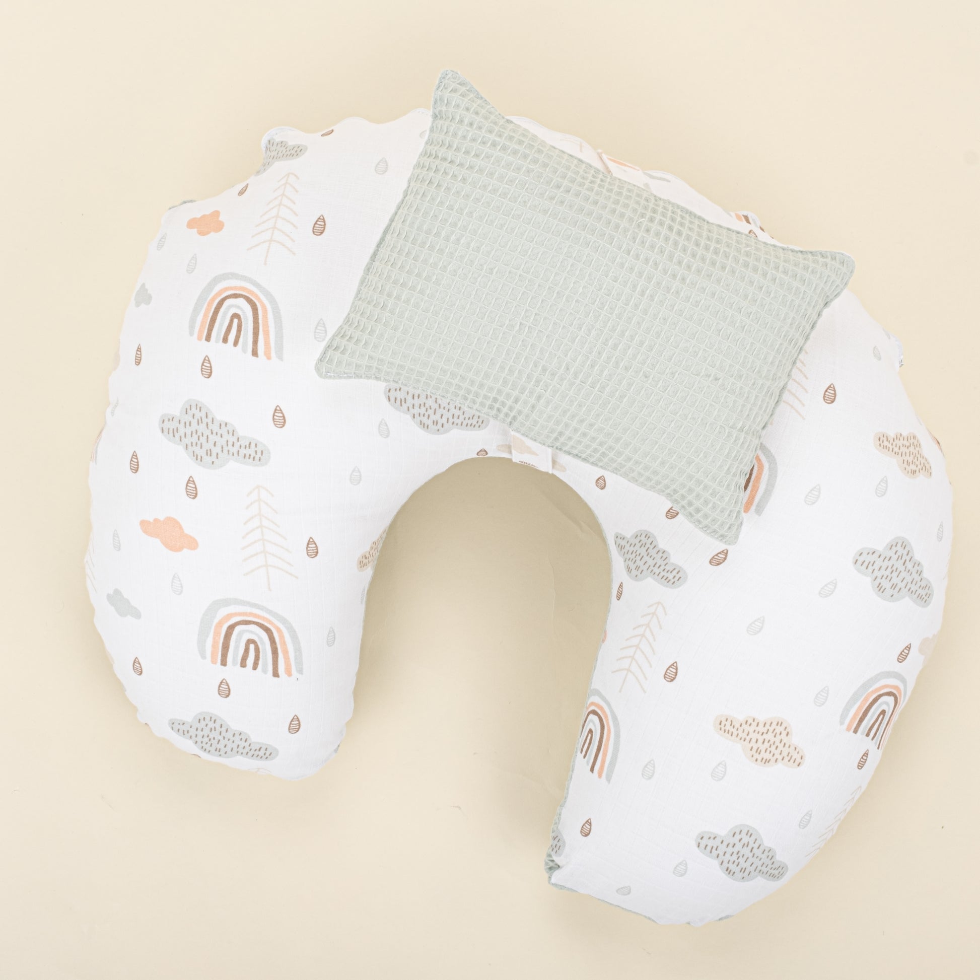 Emzirme Yastığı - Çift Taraflı - Açık Yeşil Petek - Yeşil Gökkuşağı