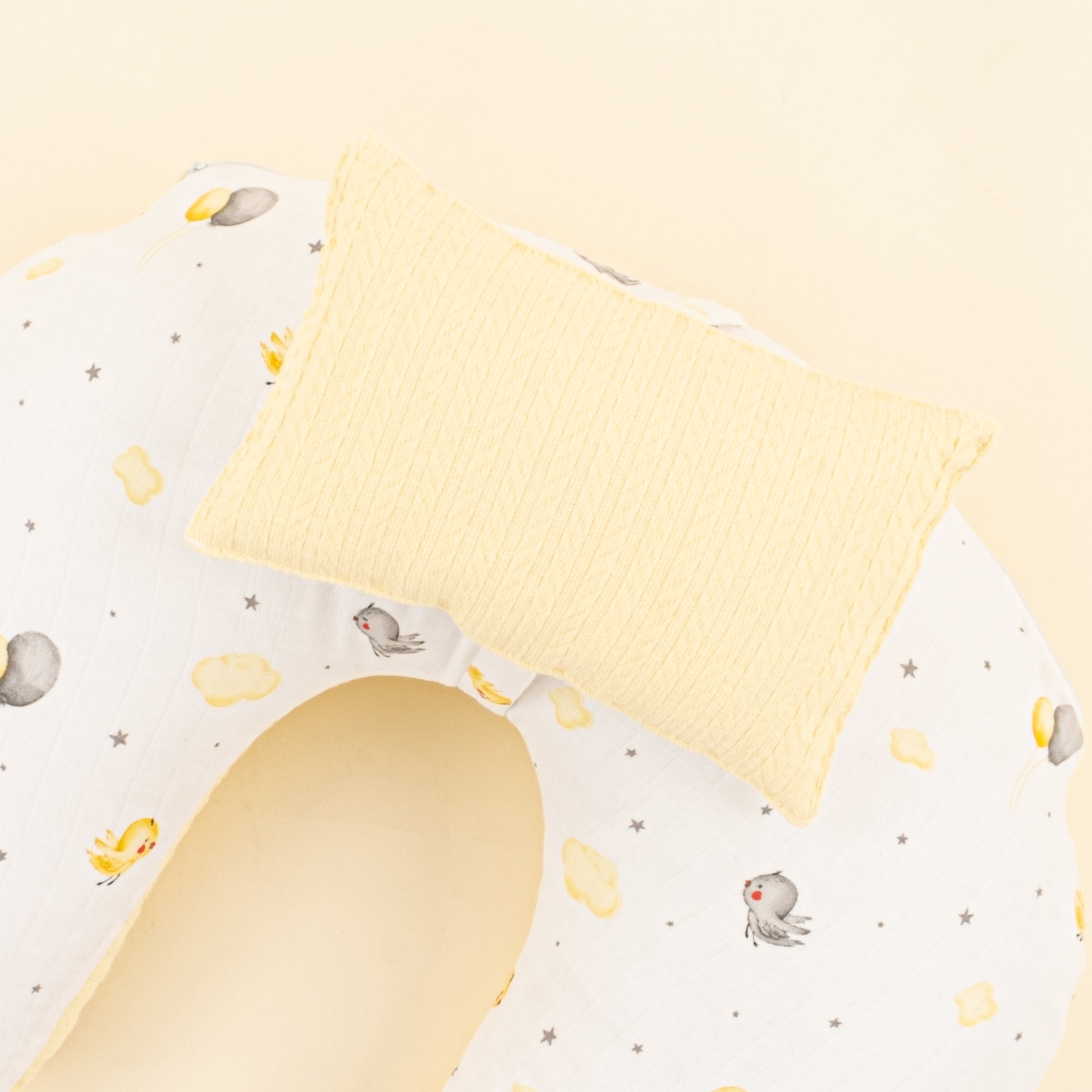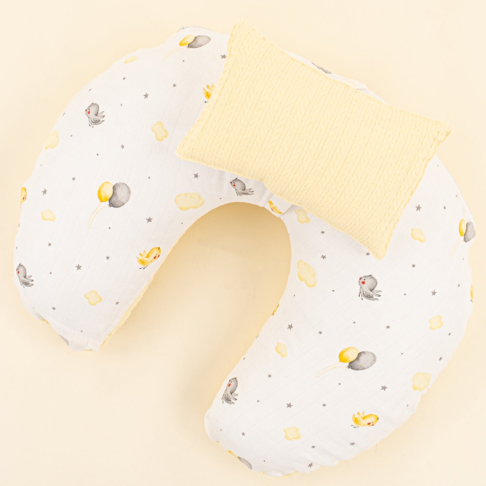Emzirme Yastığı - Çift Taraflı - Sarı Örgü - Sarı Kuş