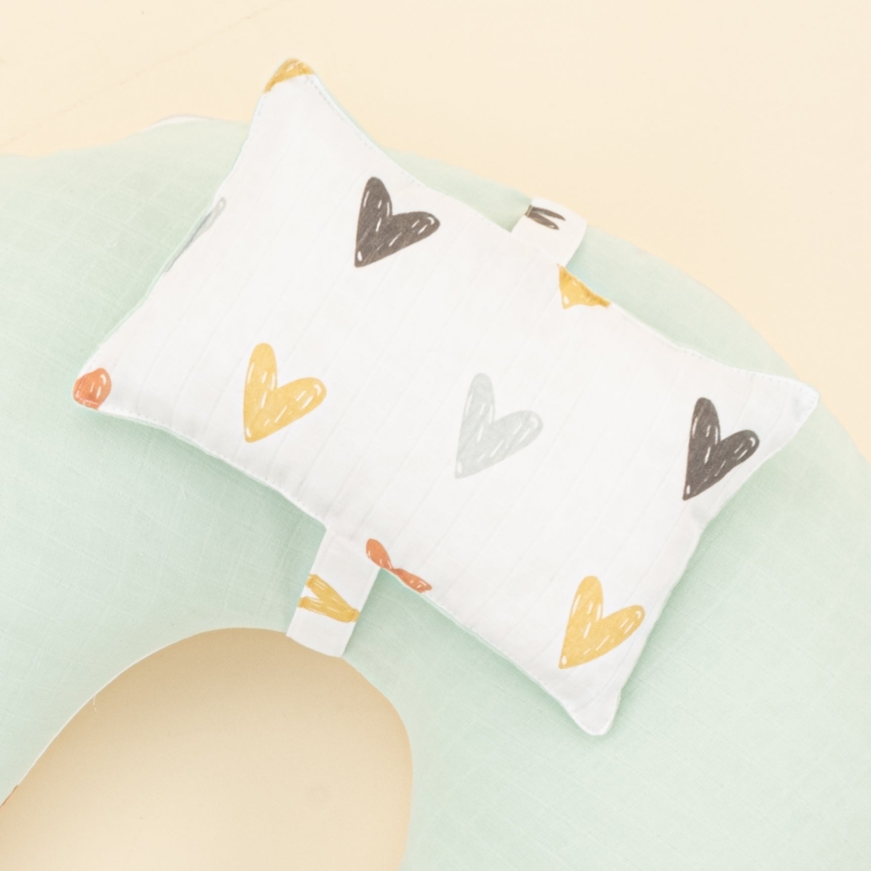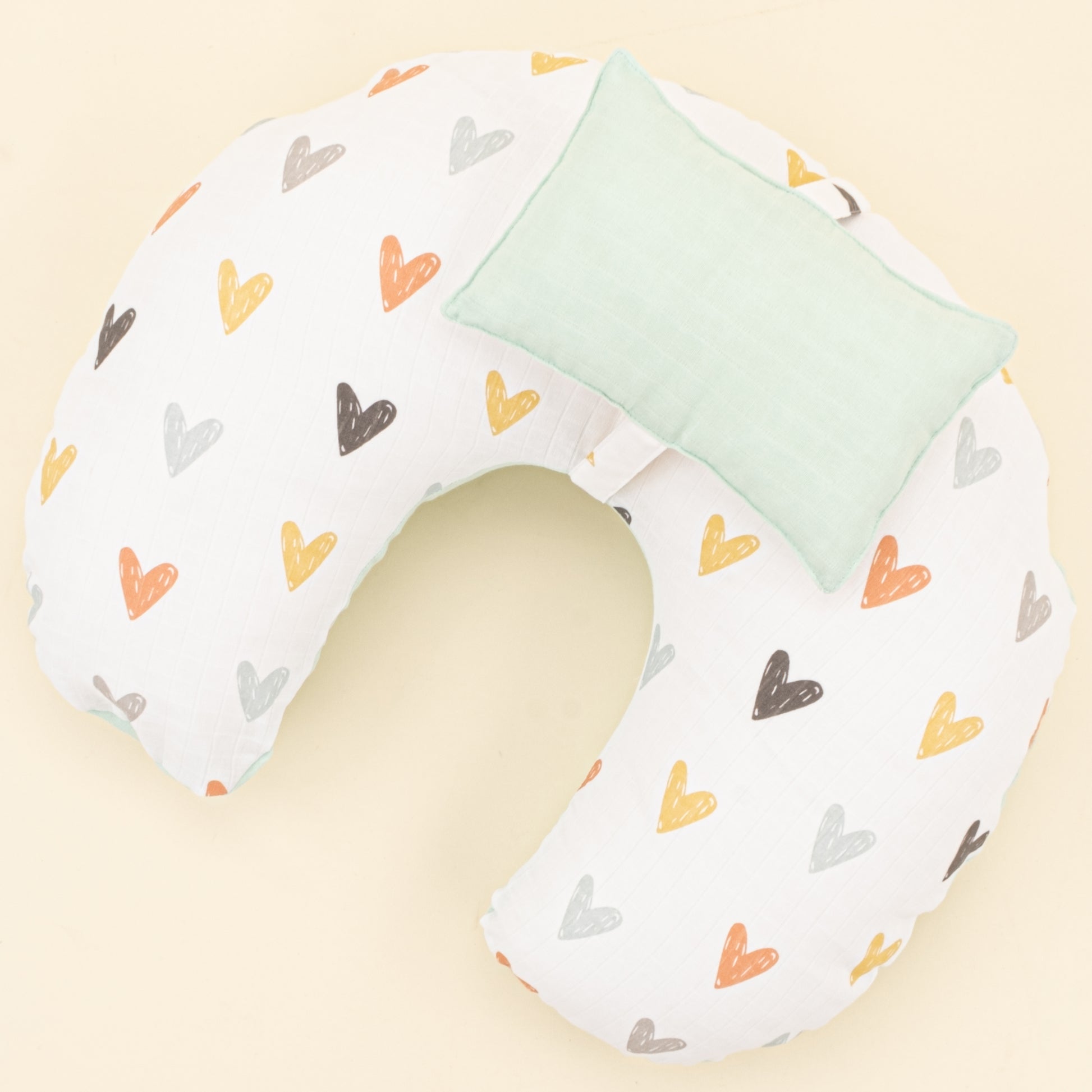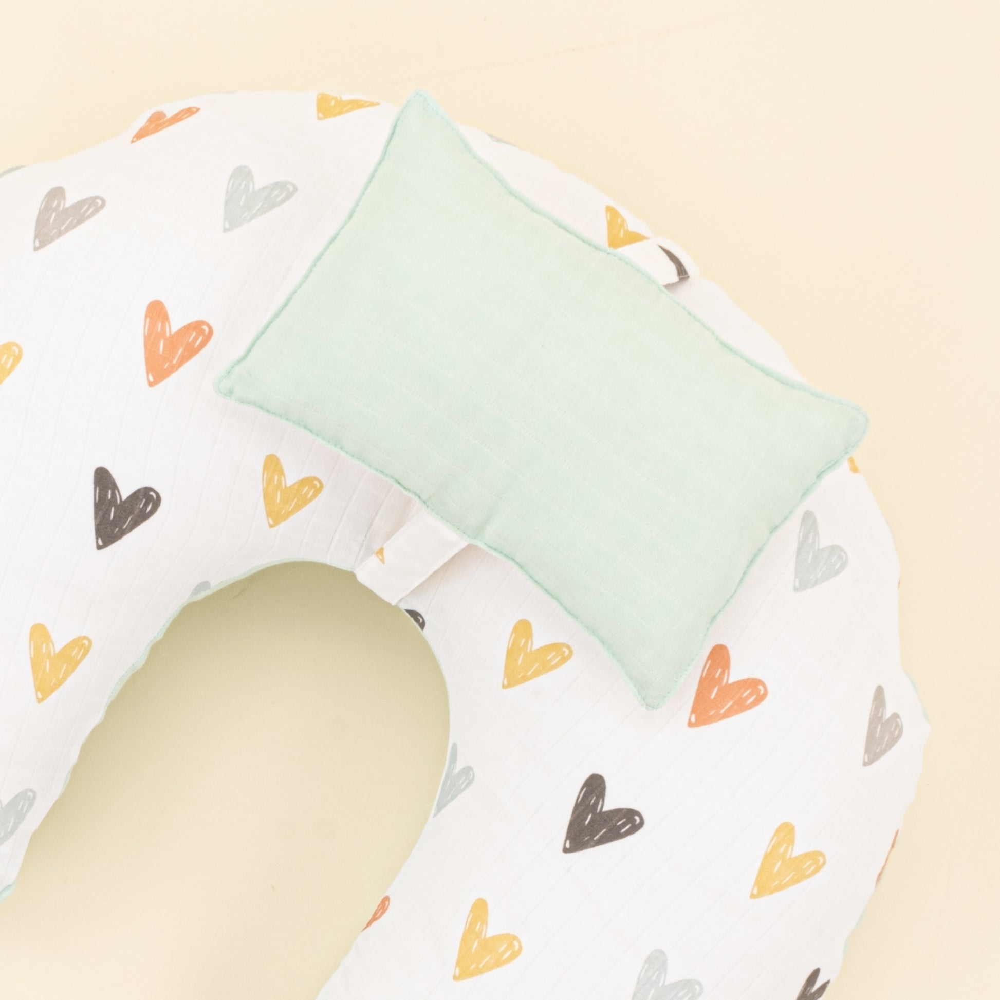 Emzirme Yastığı - Çift Taraflı - Su Yeşili Muslin - Kalpler