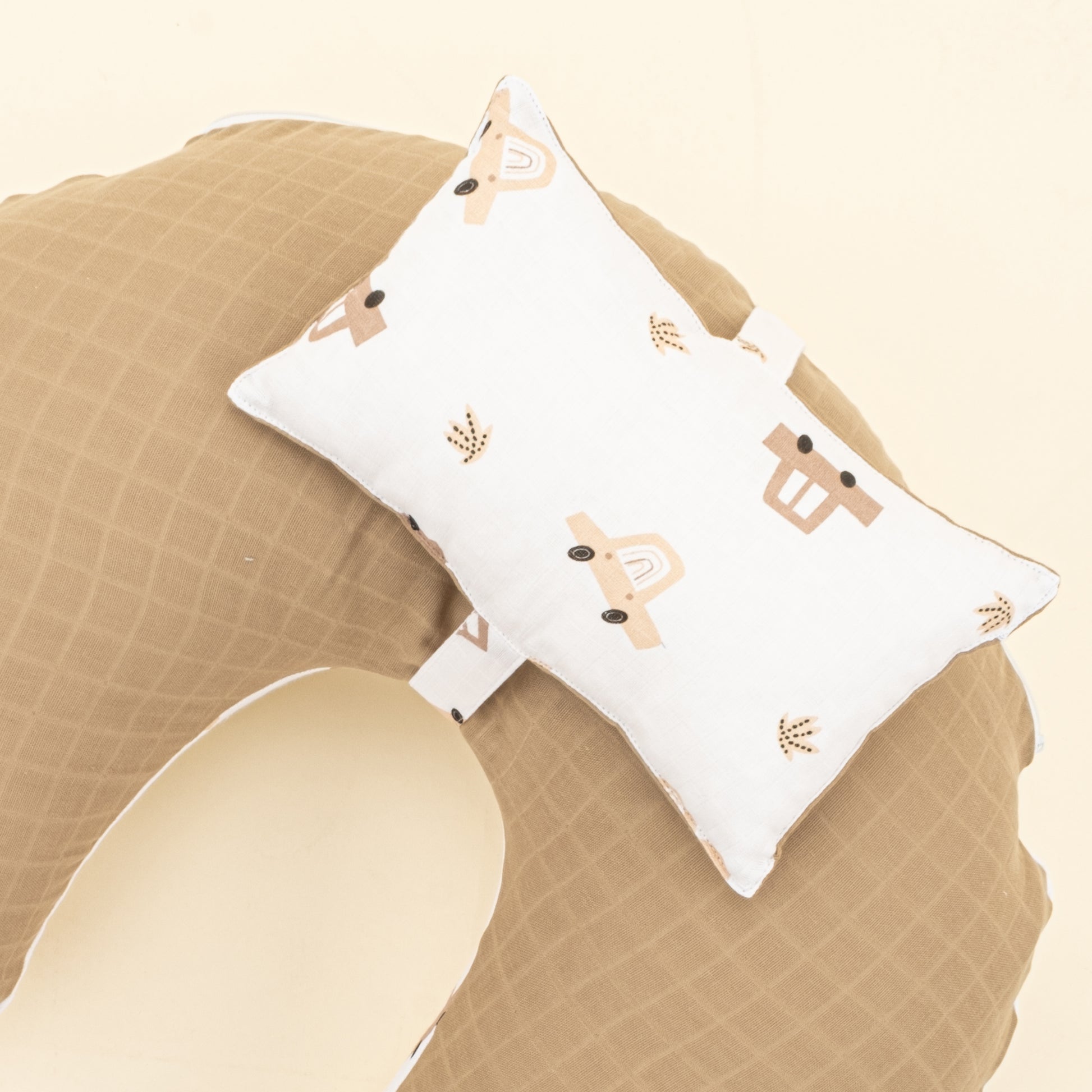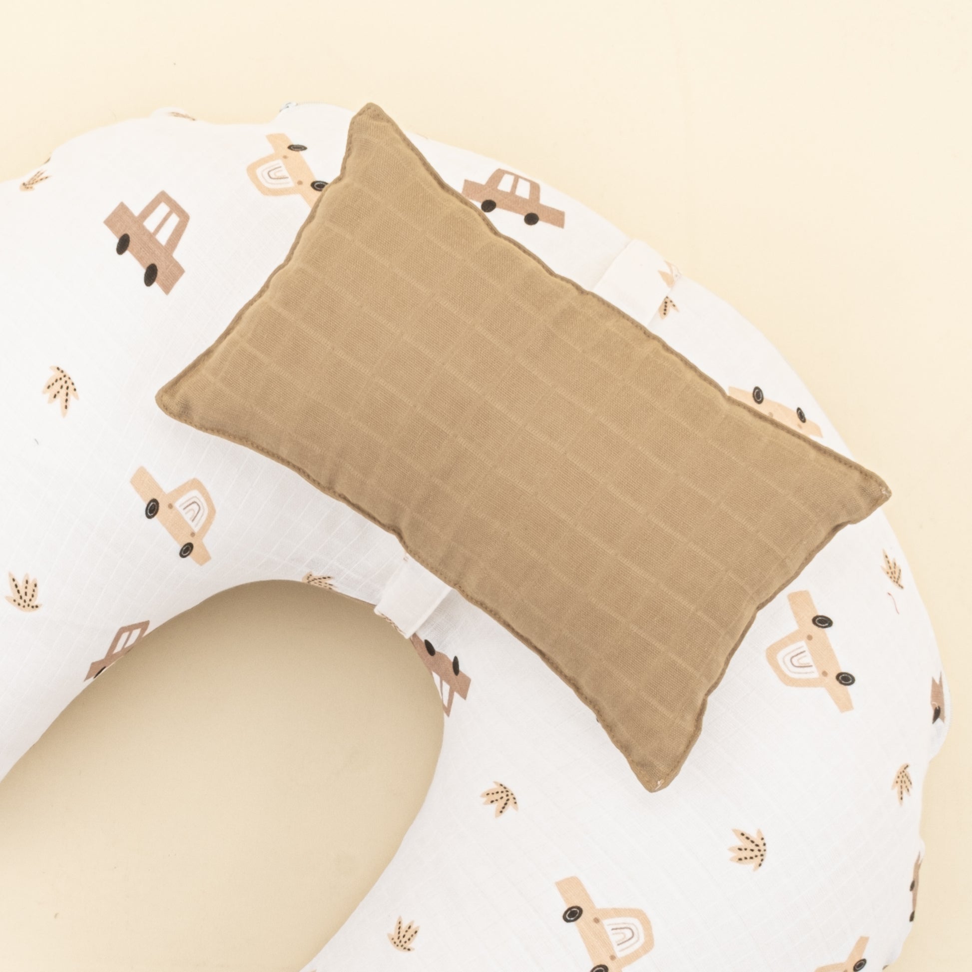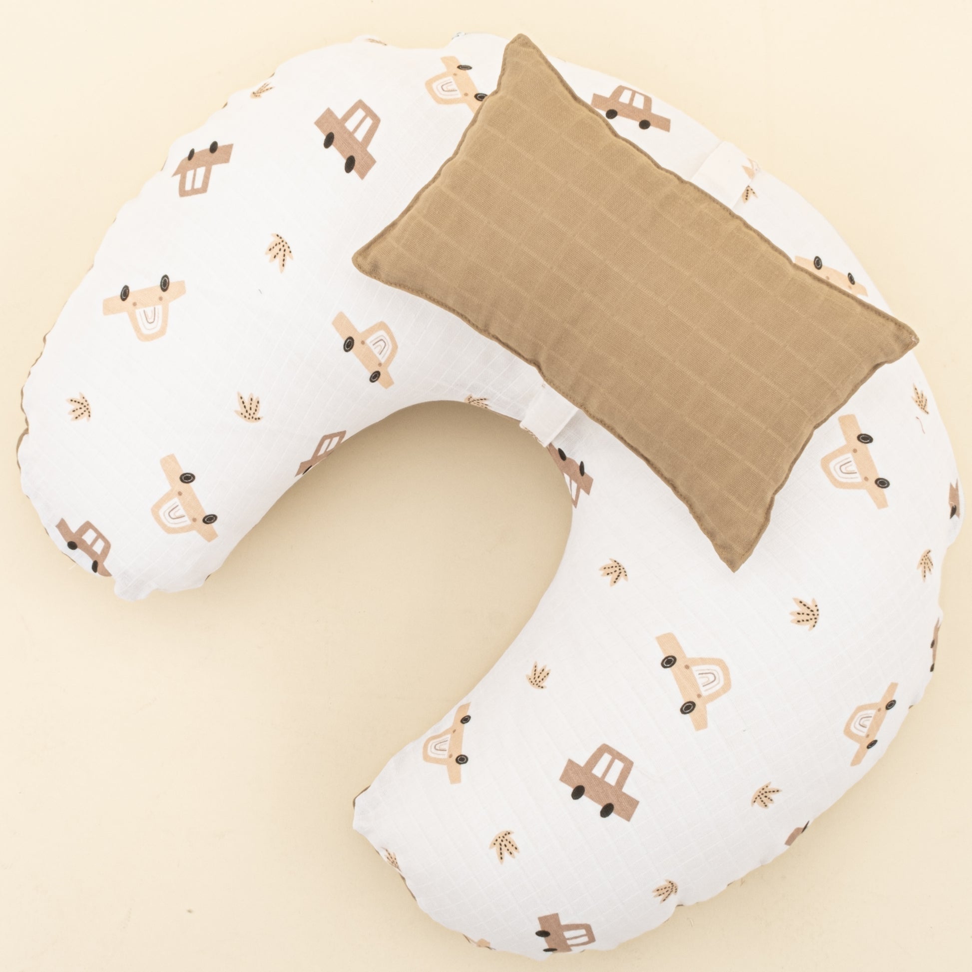 Emzirme Yastığı - Çift Taraflı - Toprak Muslin - Kahverengi Arabalar