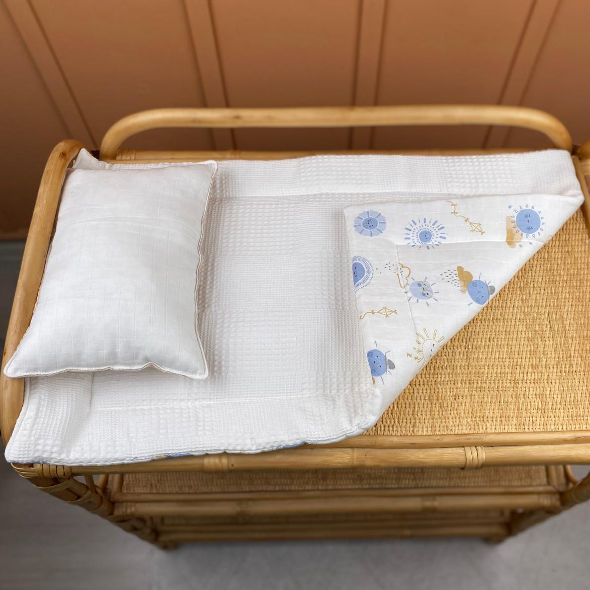 İndirimli Ürün - Alt Açma Matı ve Yastık - Çift Taraflı - Mavi Güneş