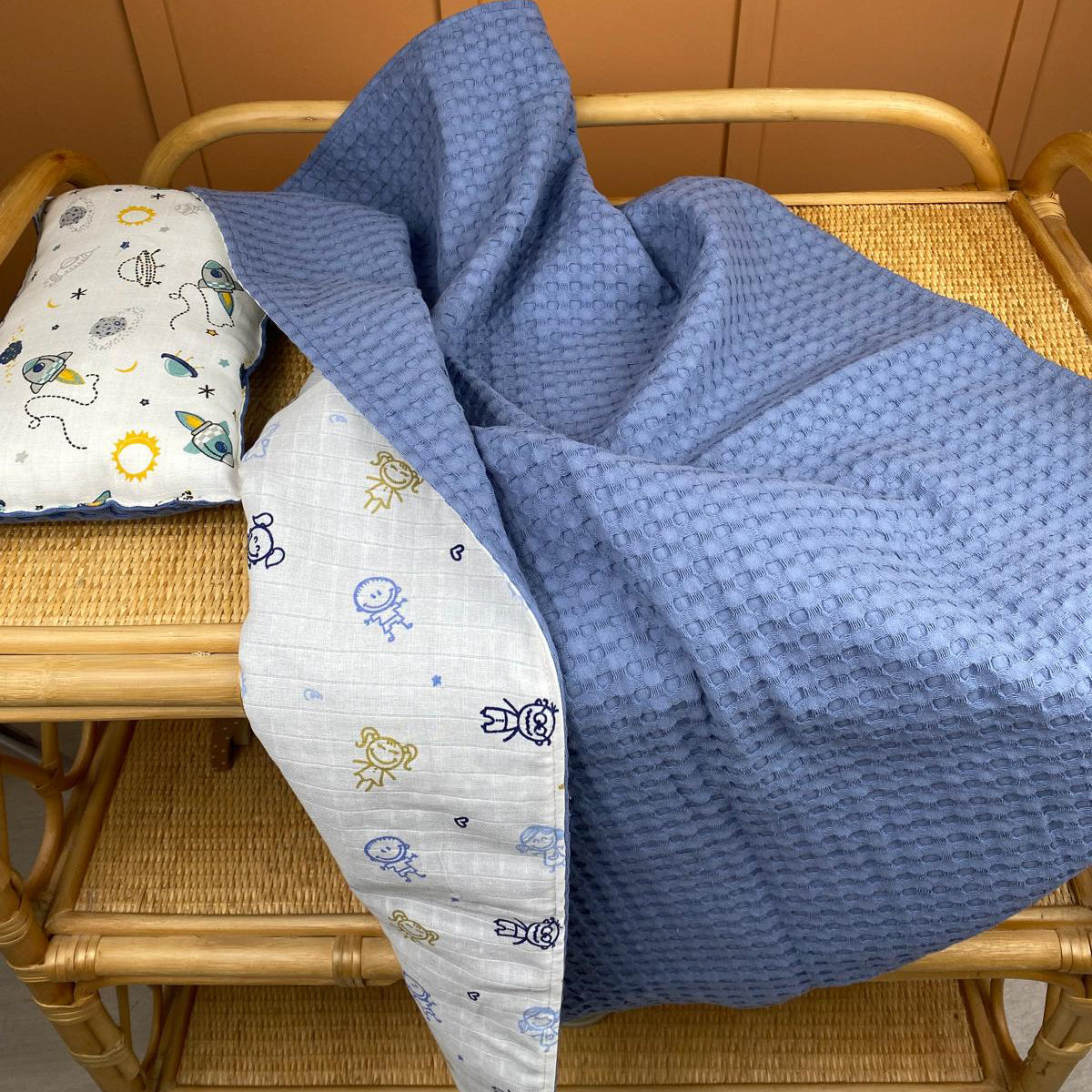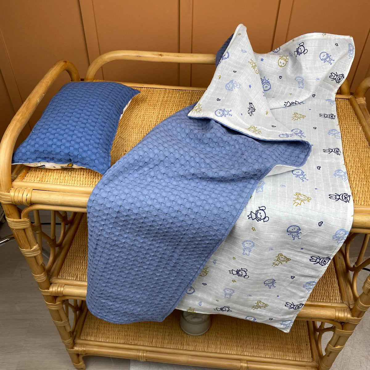 İndirimli Ürün - Battaniye ve Yastık Set - Mavi Çubuk Bebekler