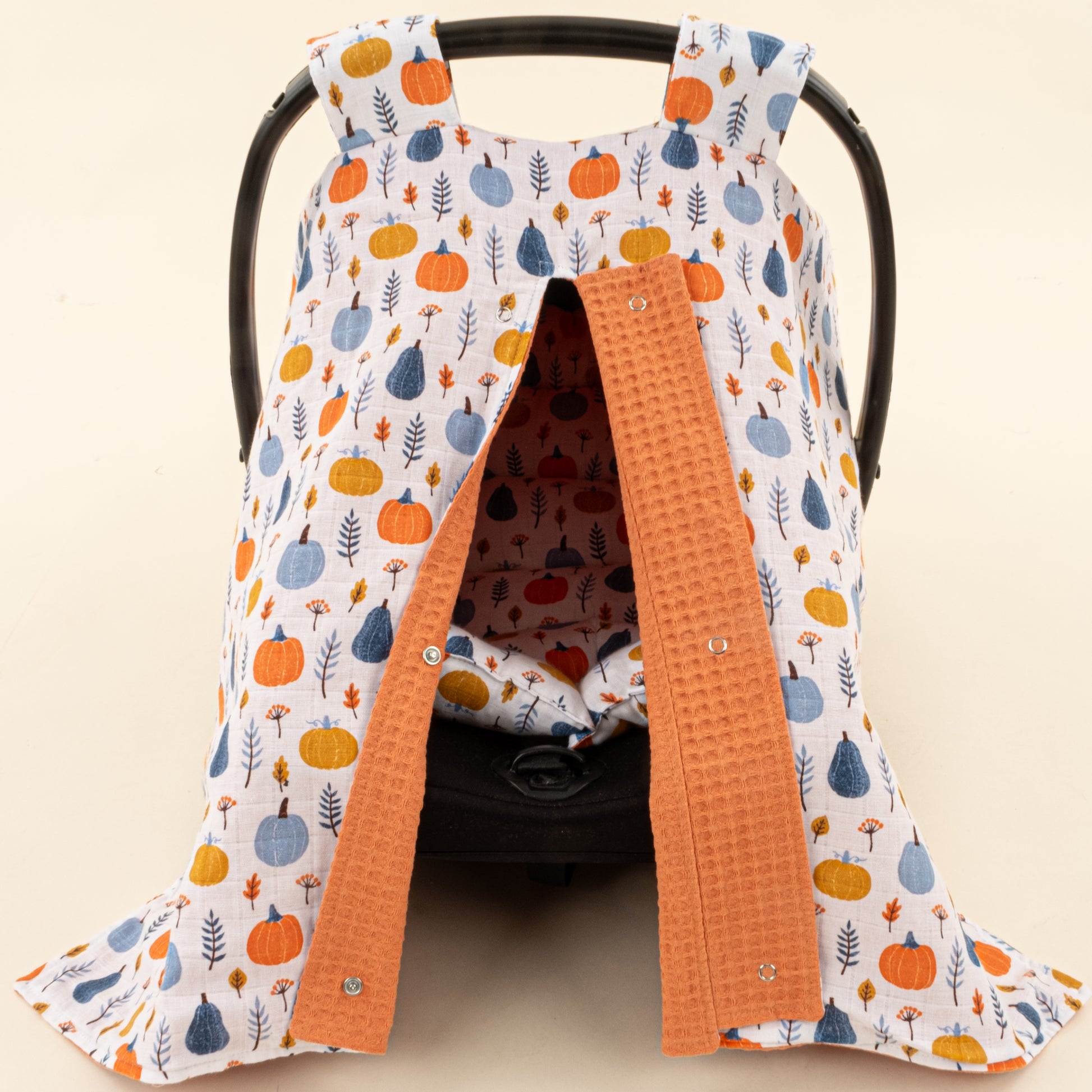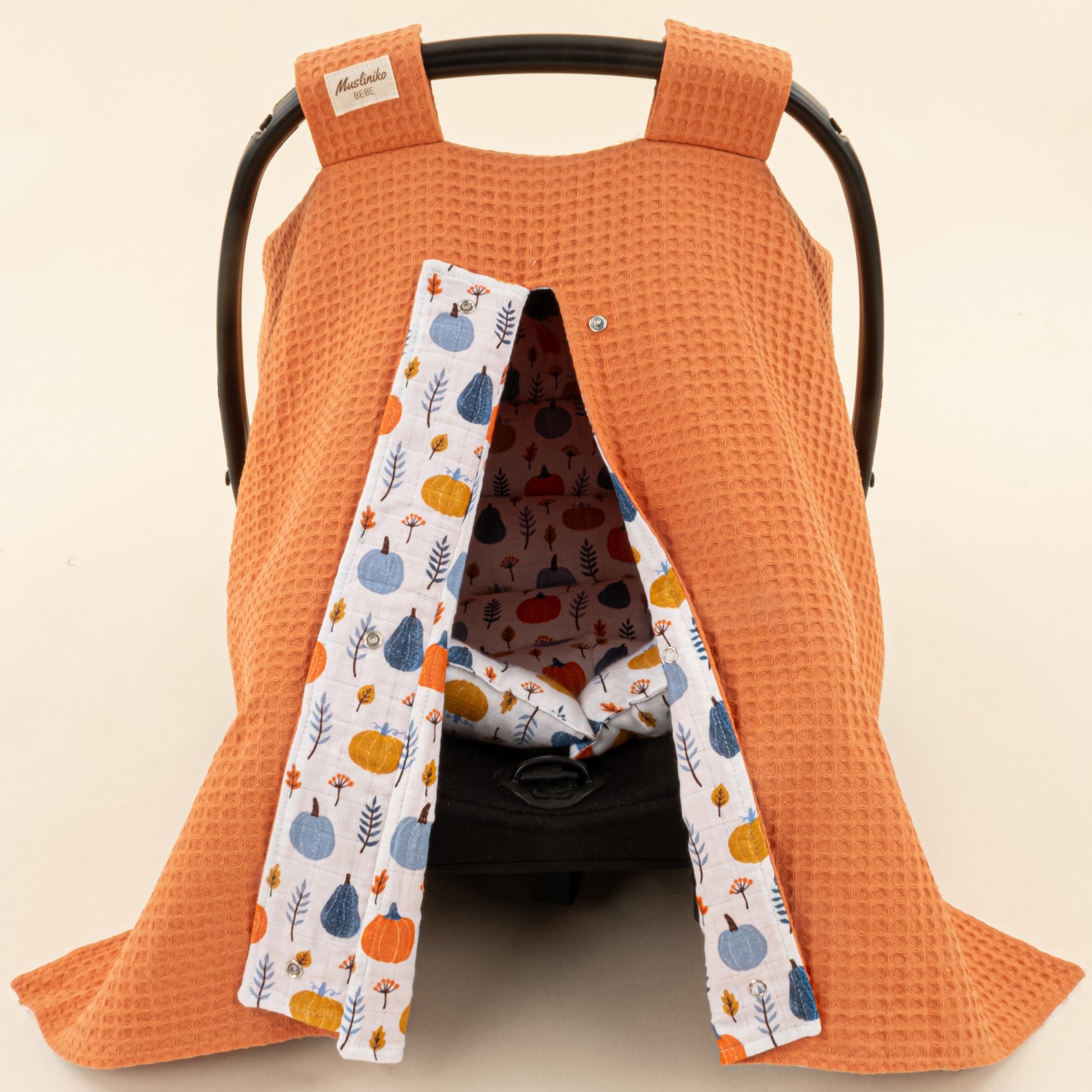 İndirimli Ürün - Çift Taraflı Puset Örtüsü ve Minderi - Mavi Balkabağı