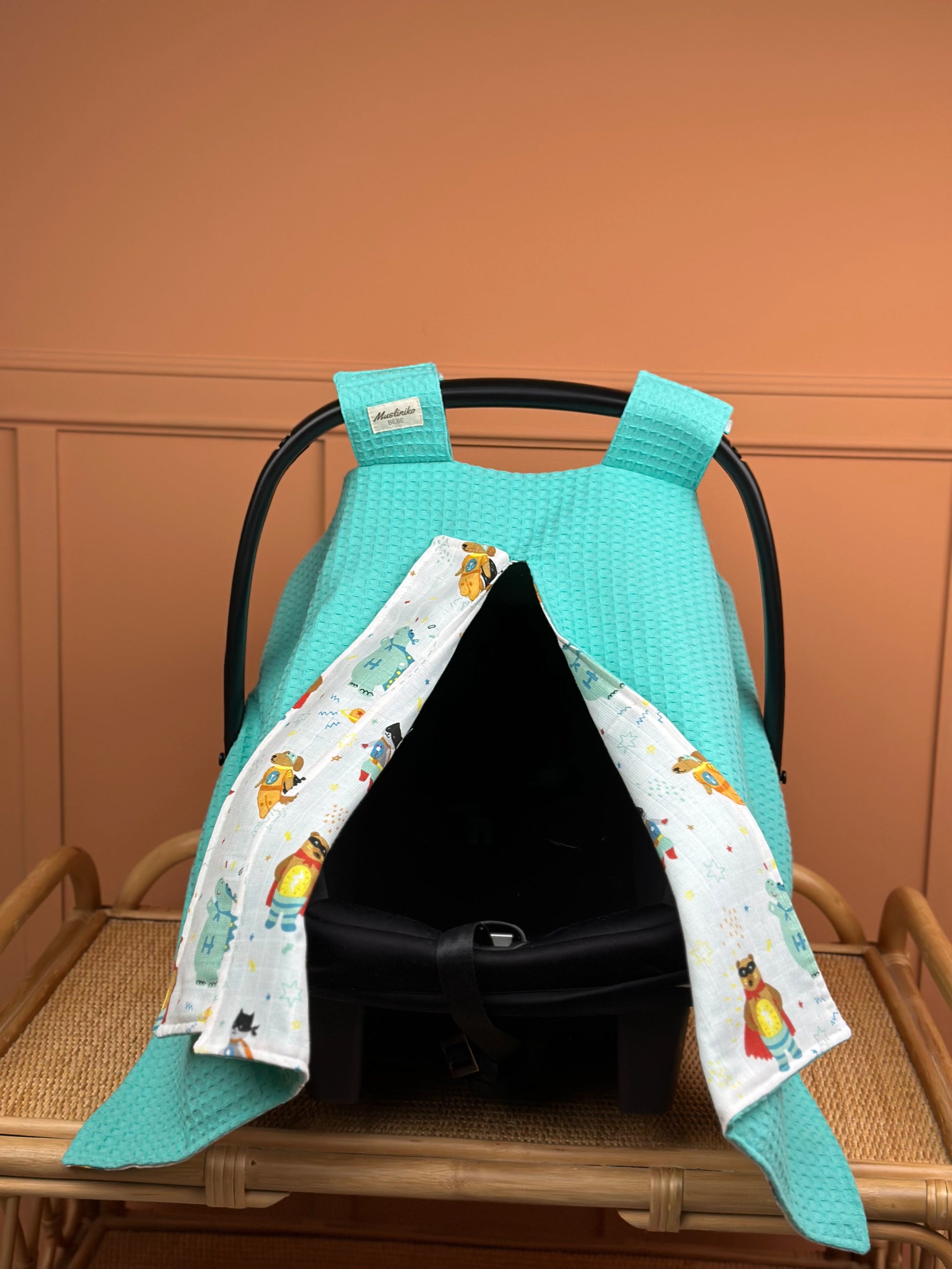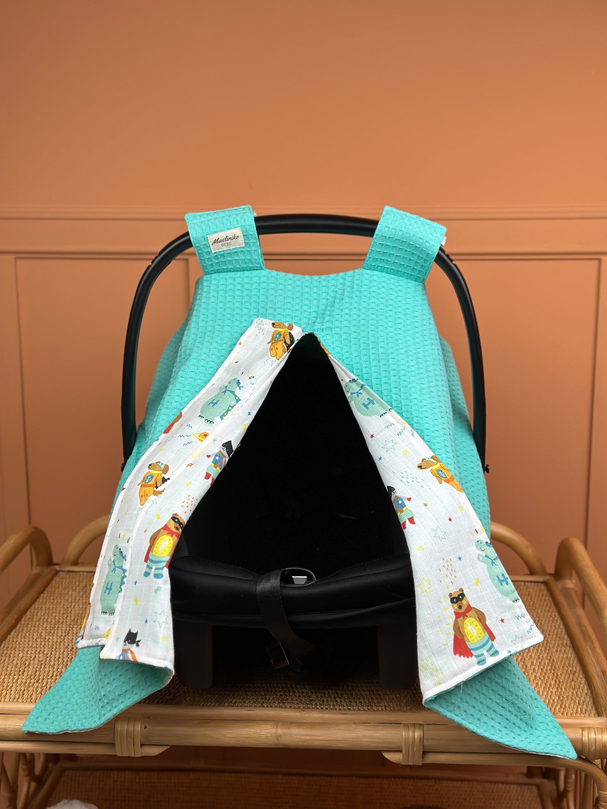 İndirimli Ürün - Çift Taraflı Puset Örtüsü - Nil Yeşili Petek - Süper Kahramanlar
