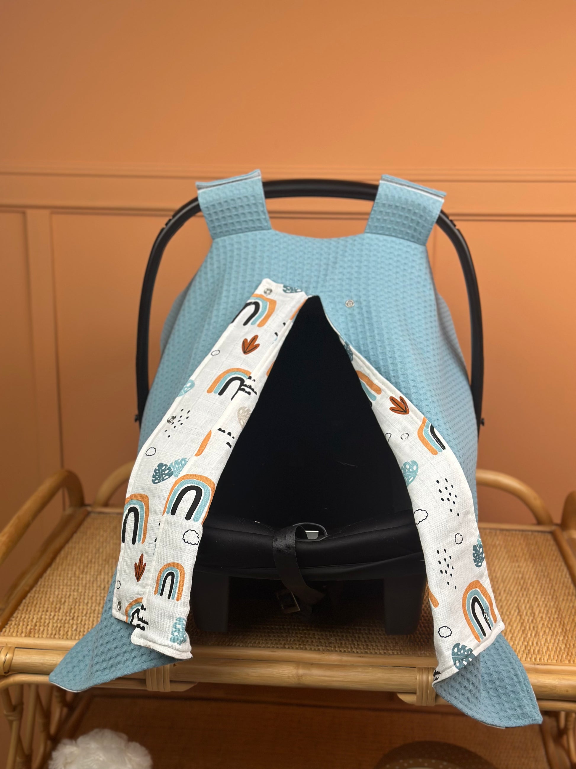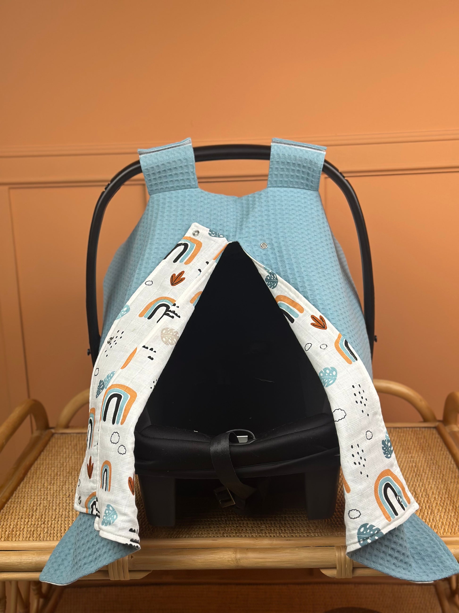 İndirimli Ürün - Çift Taraflı Puset Örtüsü - Petrol Mavisi Petek - Petrol mavisi gökkuşağı
