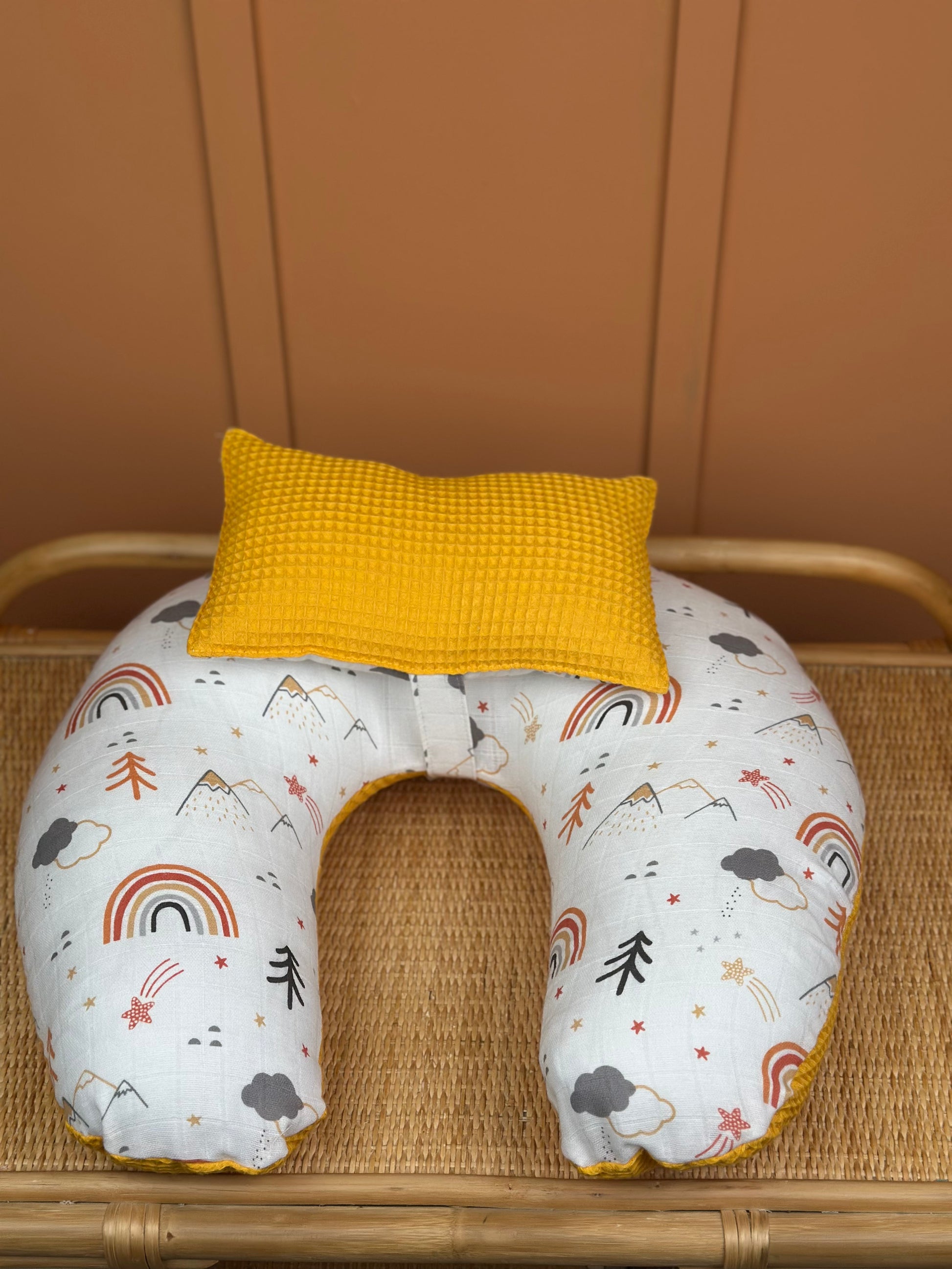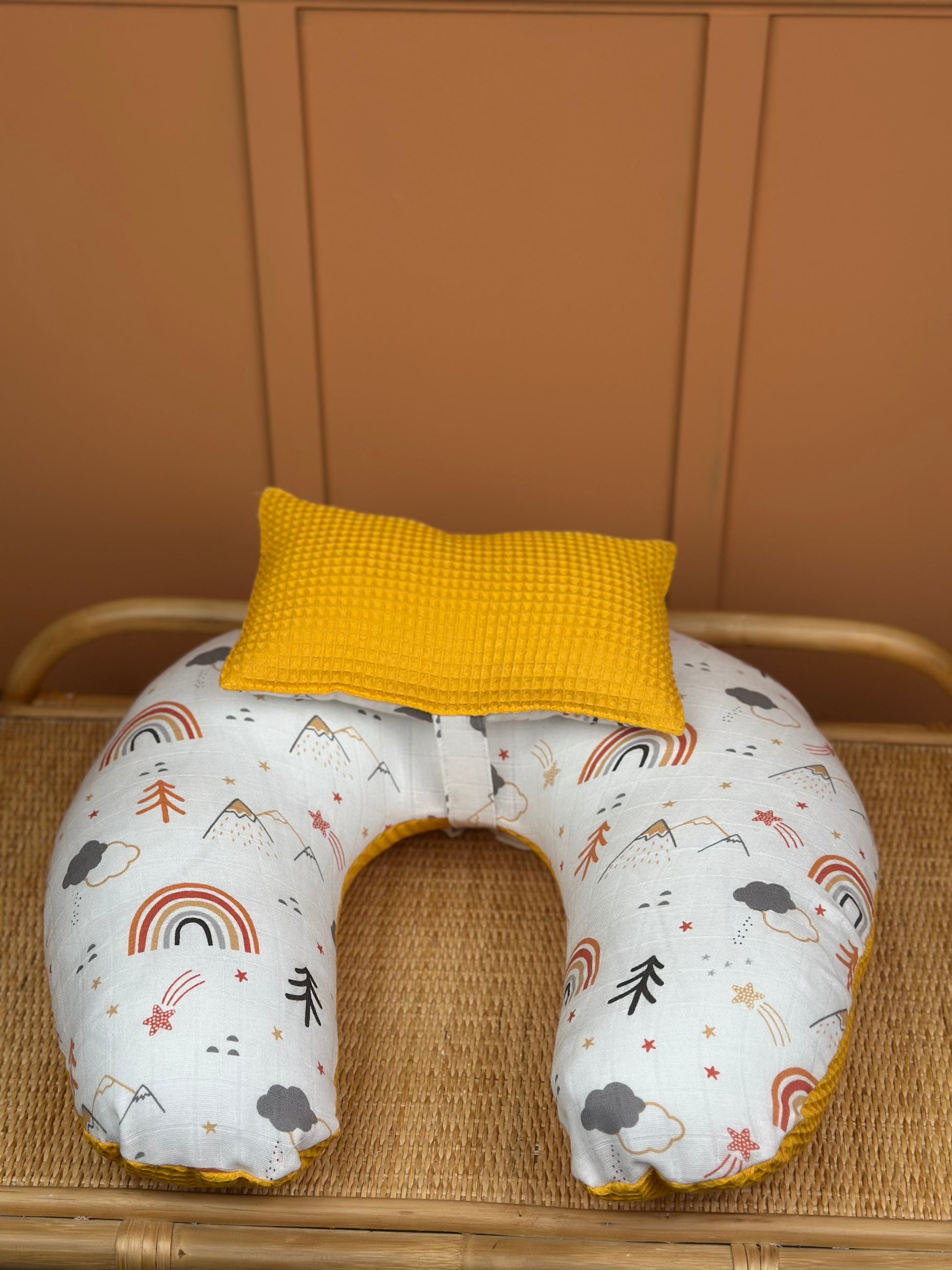 İndirimli Ürün - Emzirme Yastığı ve Yastık Set - Hardal Petek - Turuncu Kuyruklu Yıldız