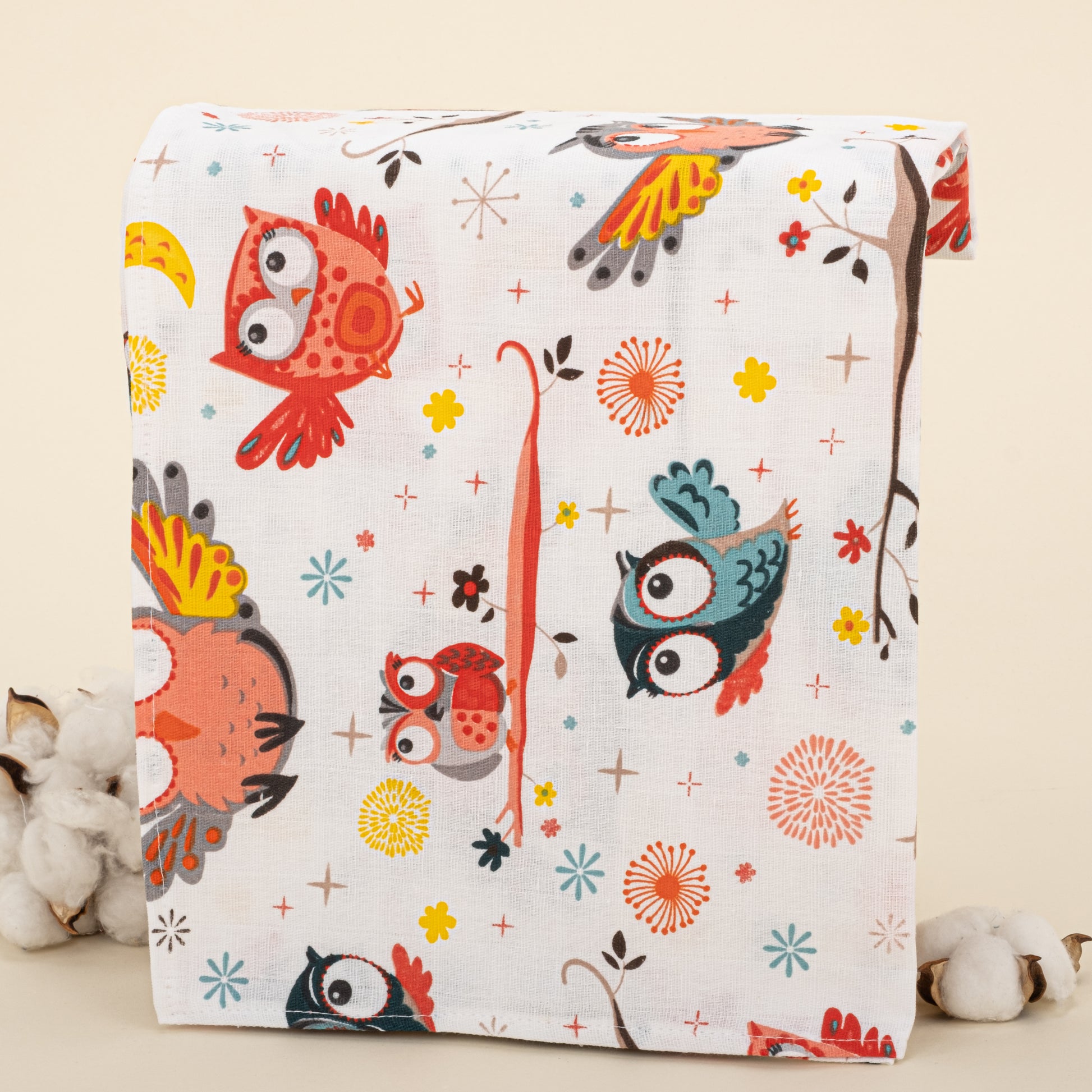 İndirimli Ürün - Müslin Örtü - Renkli Baykuşlar