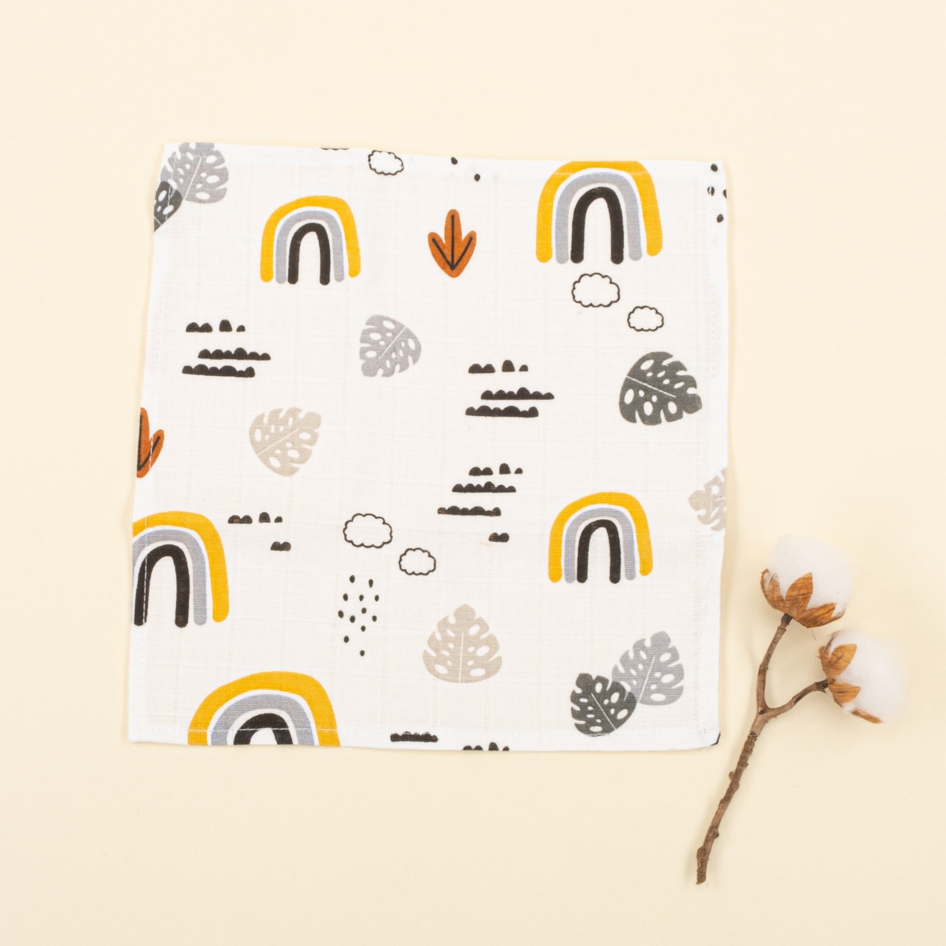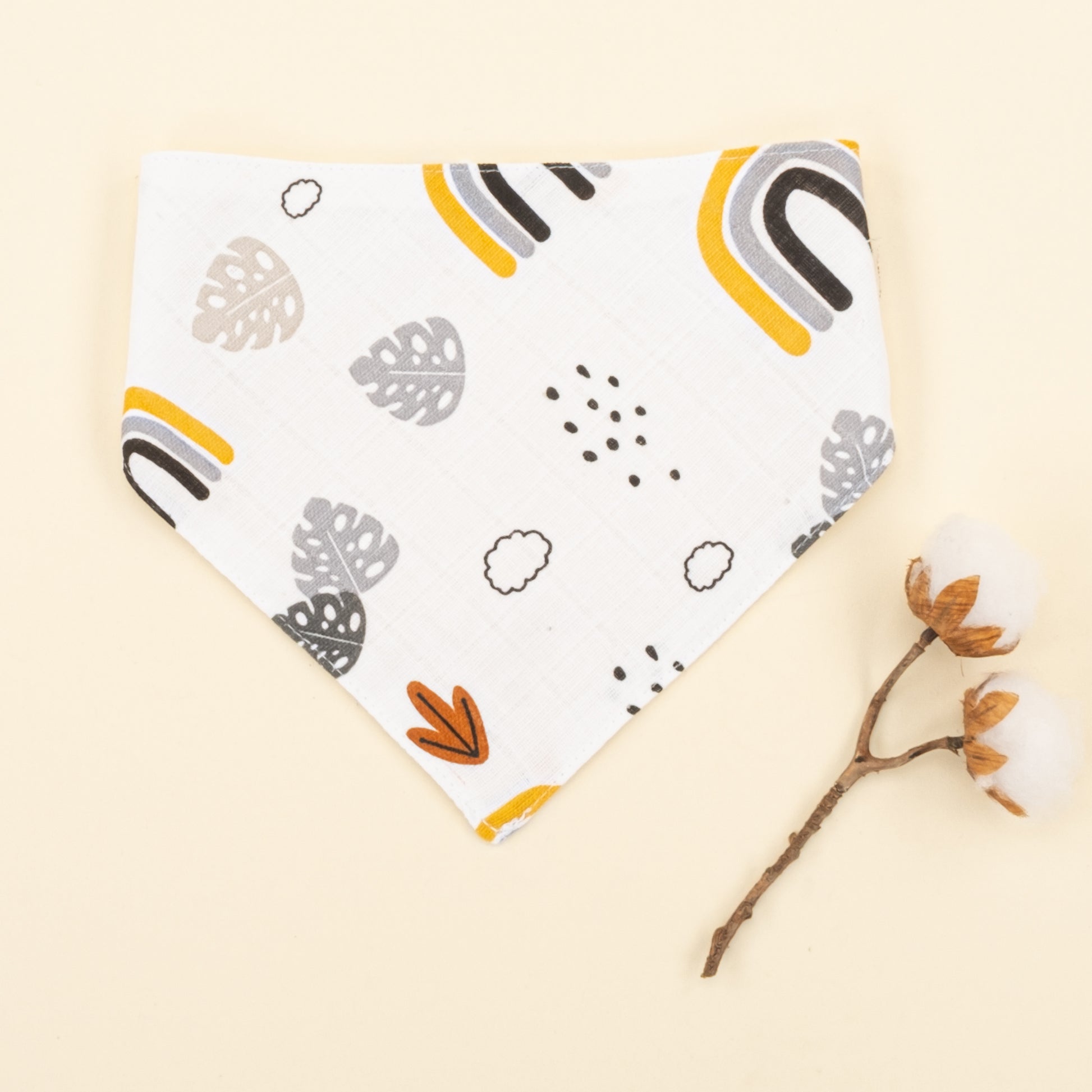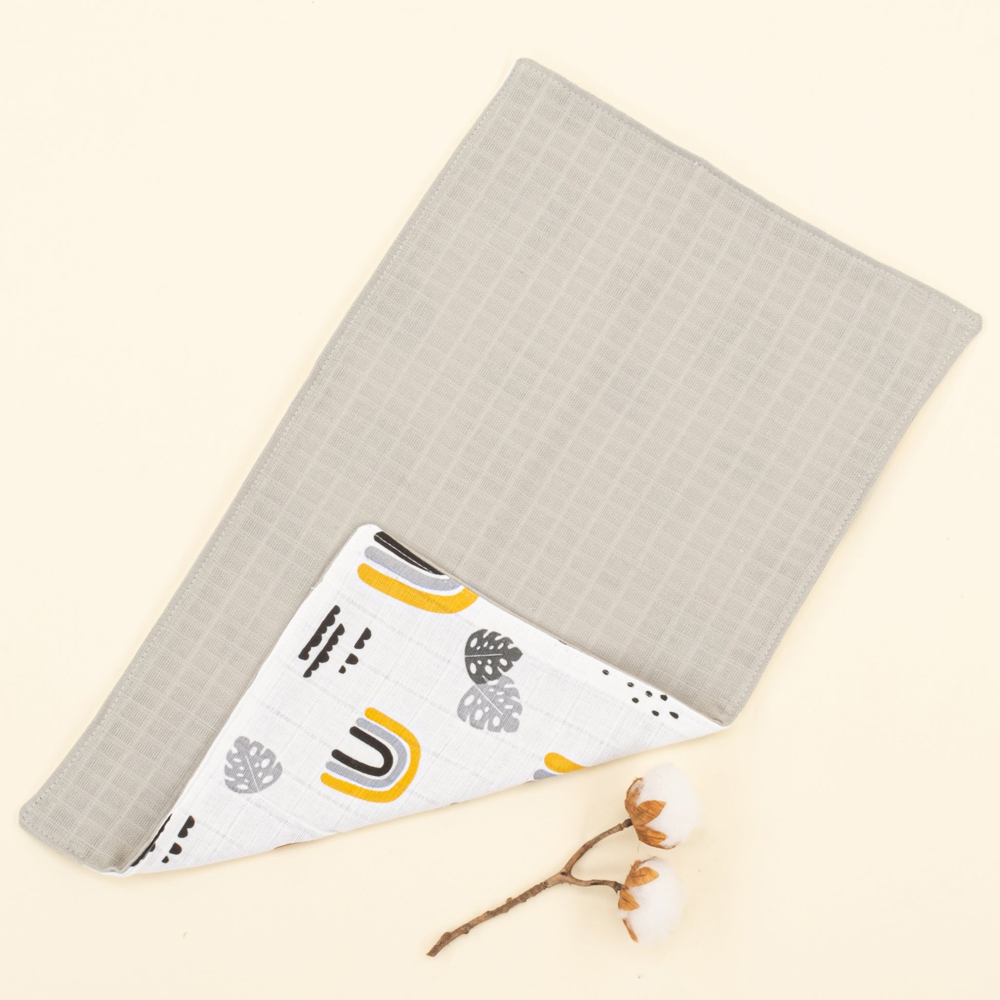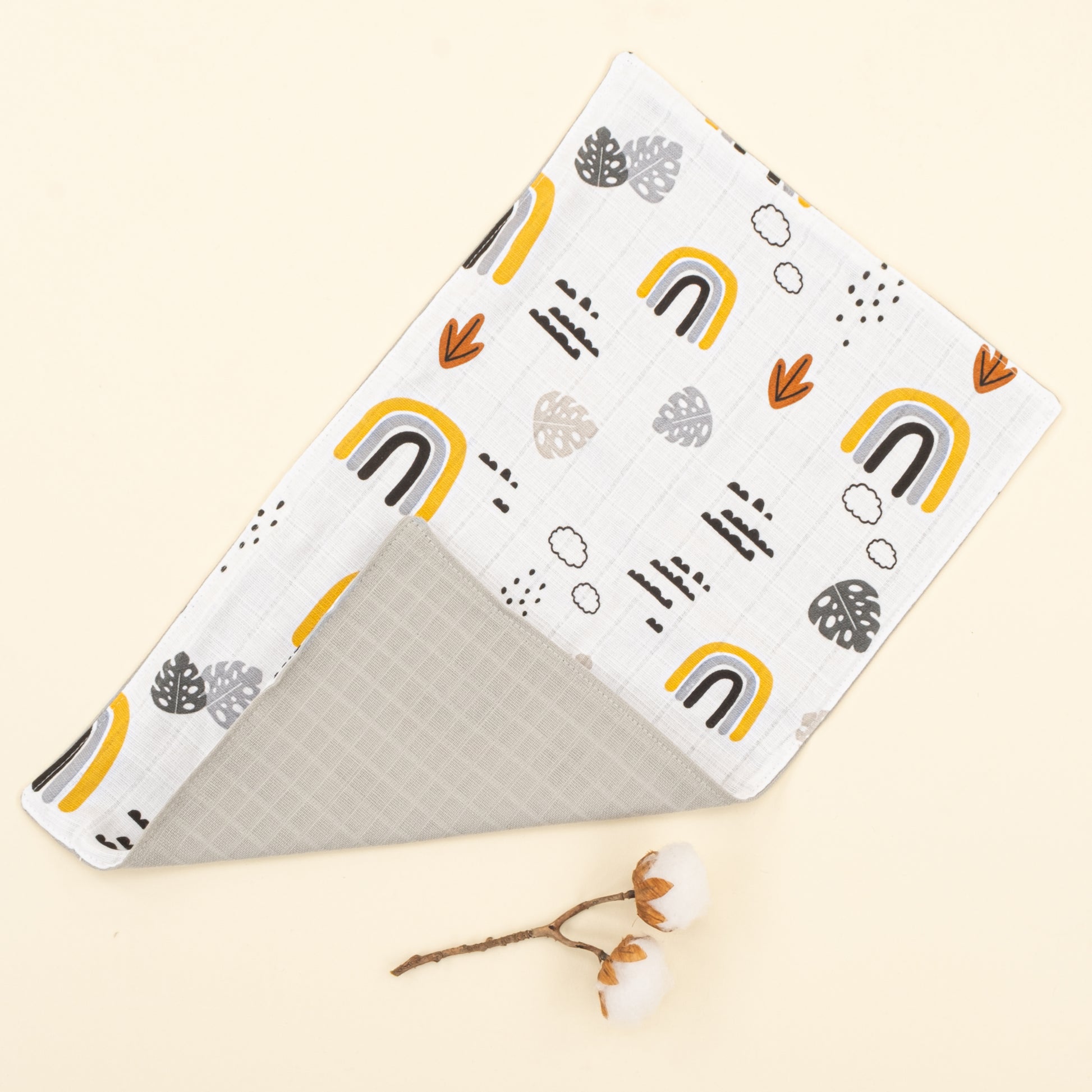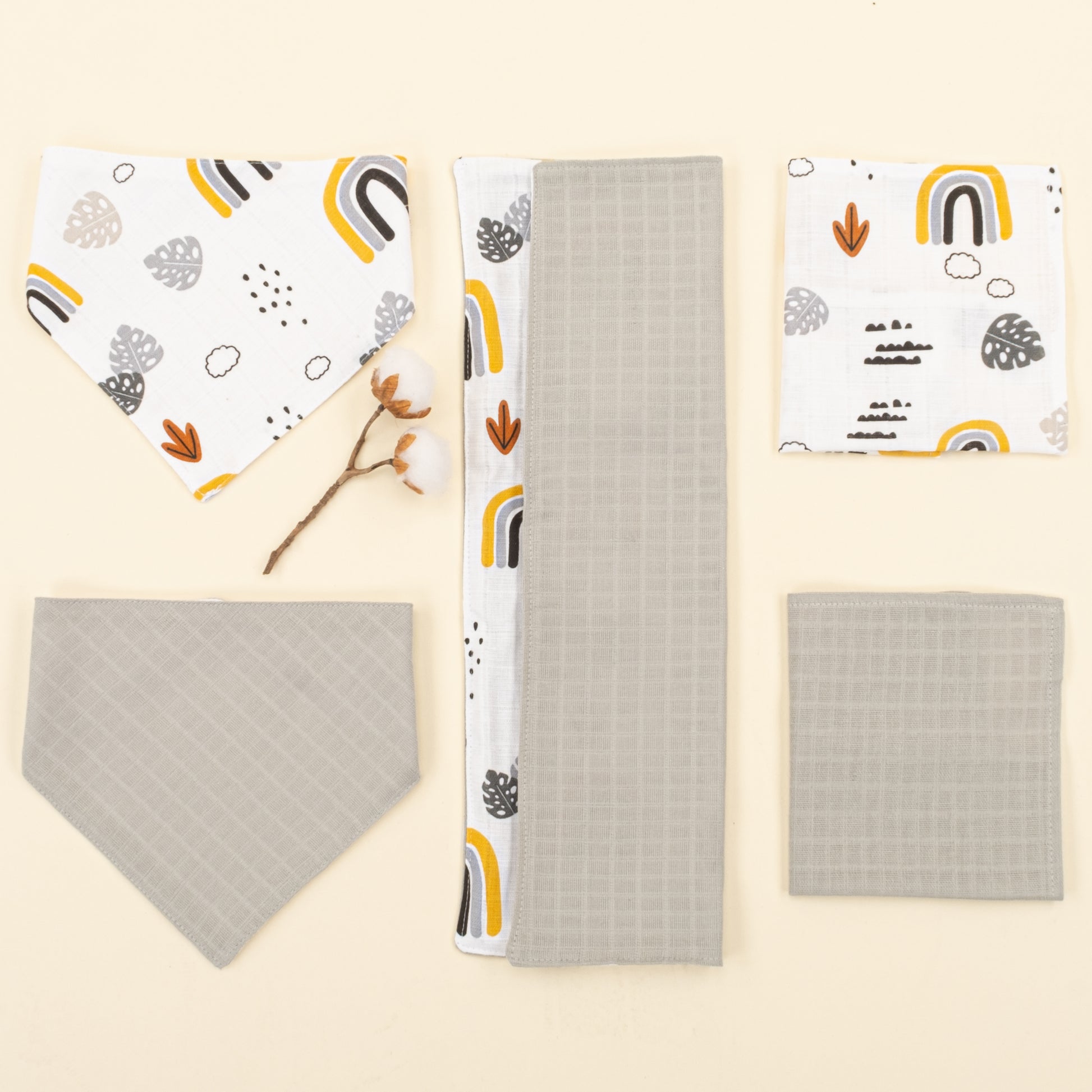 Önlük ve Mendil Seti - Çift Taraflı - Açık Gri Muslin - Hardal Gökkuşağı