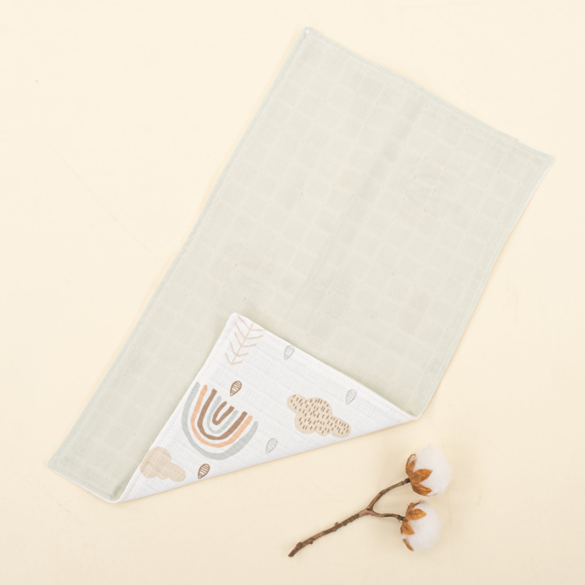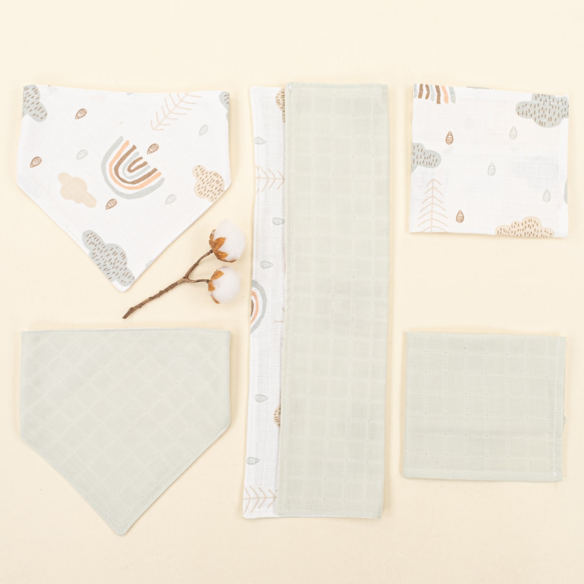 Önlük ve Mendil Seti - Çift Taraflı - Açık Yeşil Muslin - Yeşil Gökkuşağı