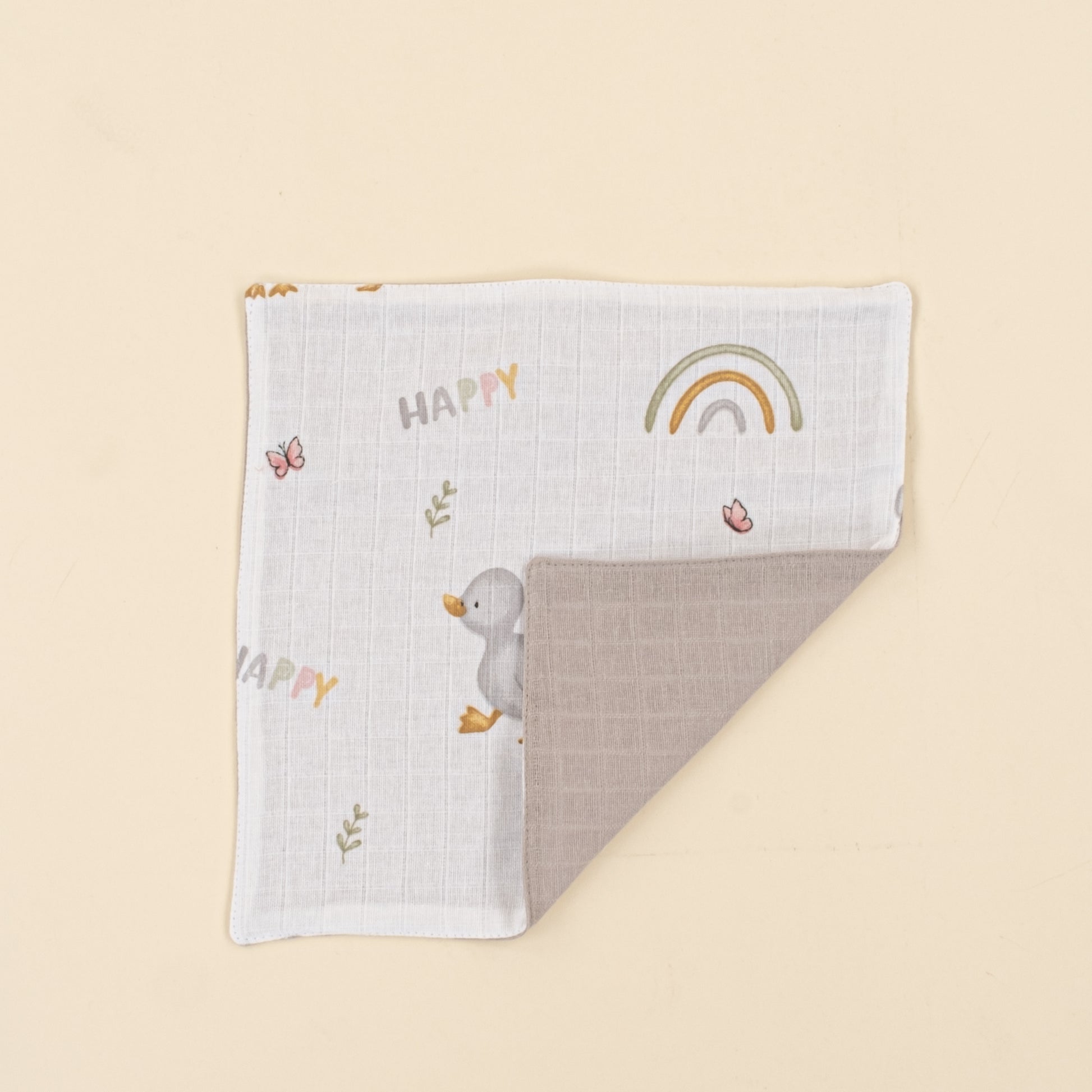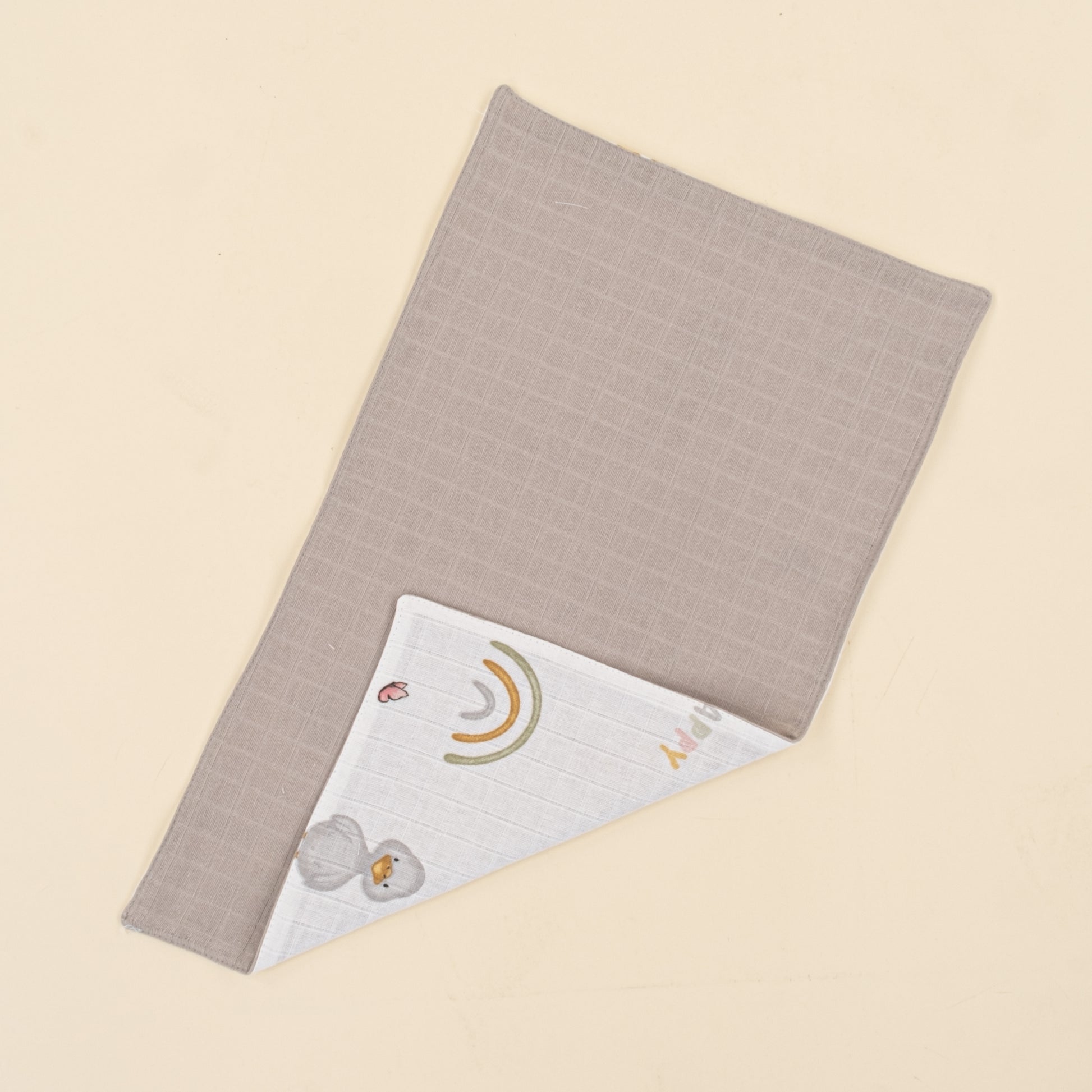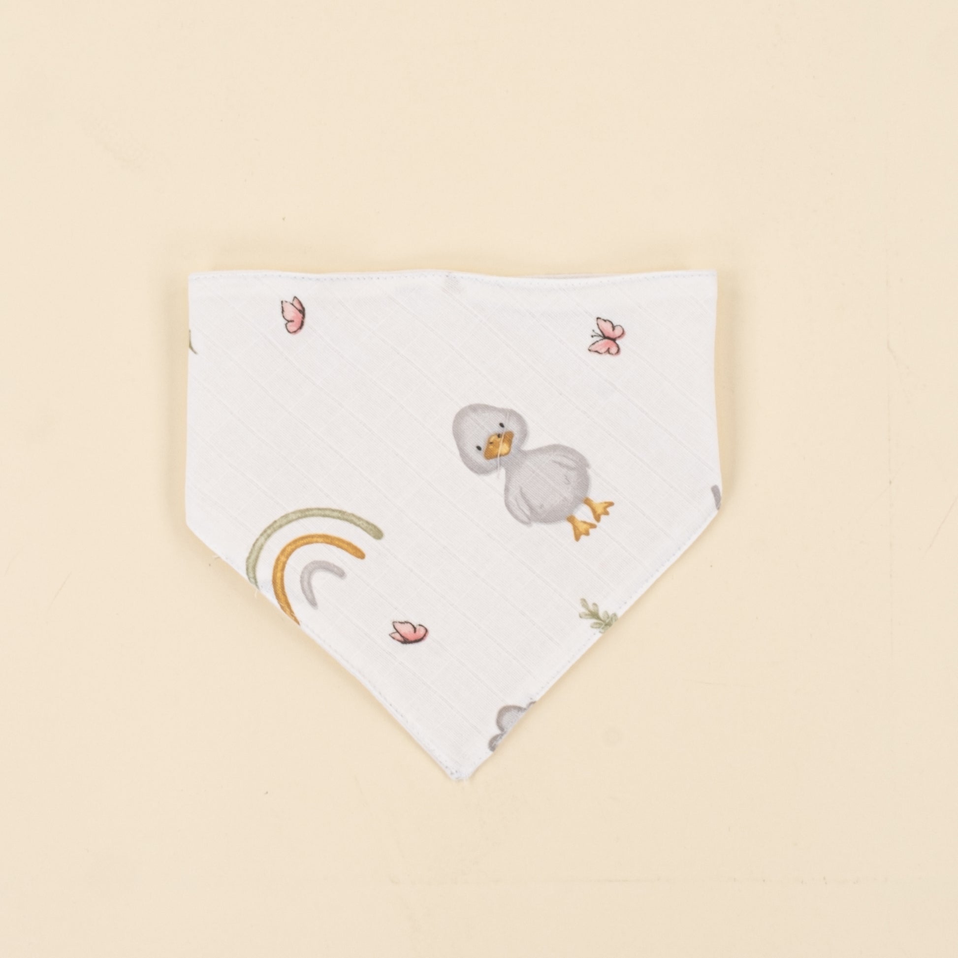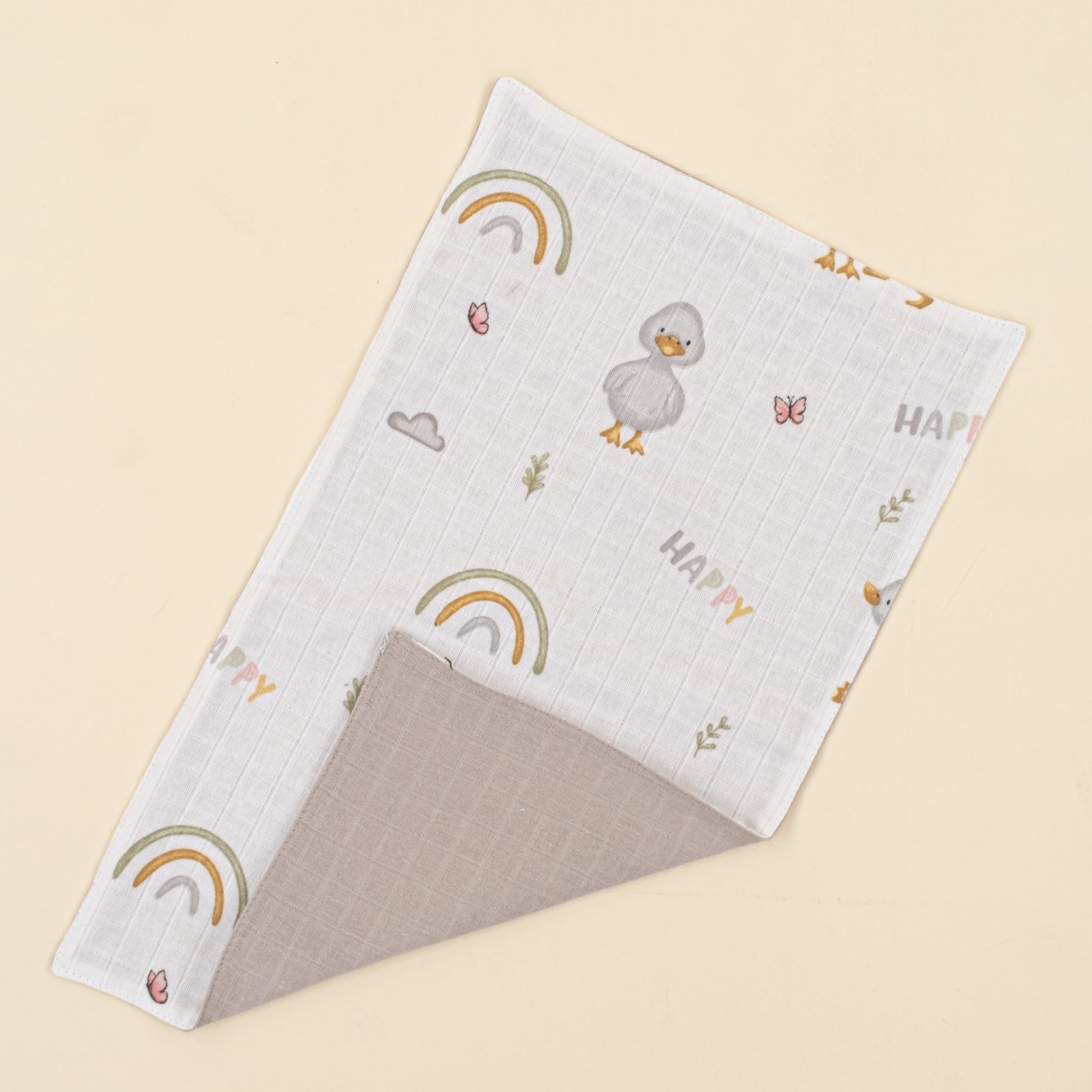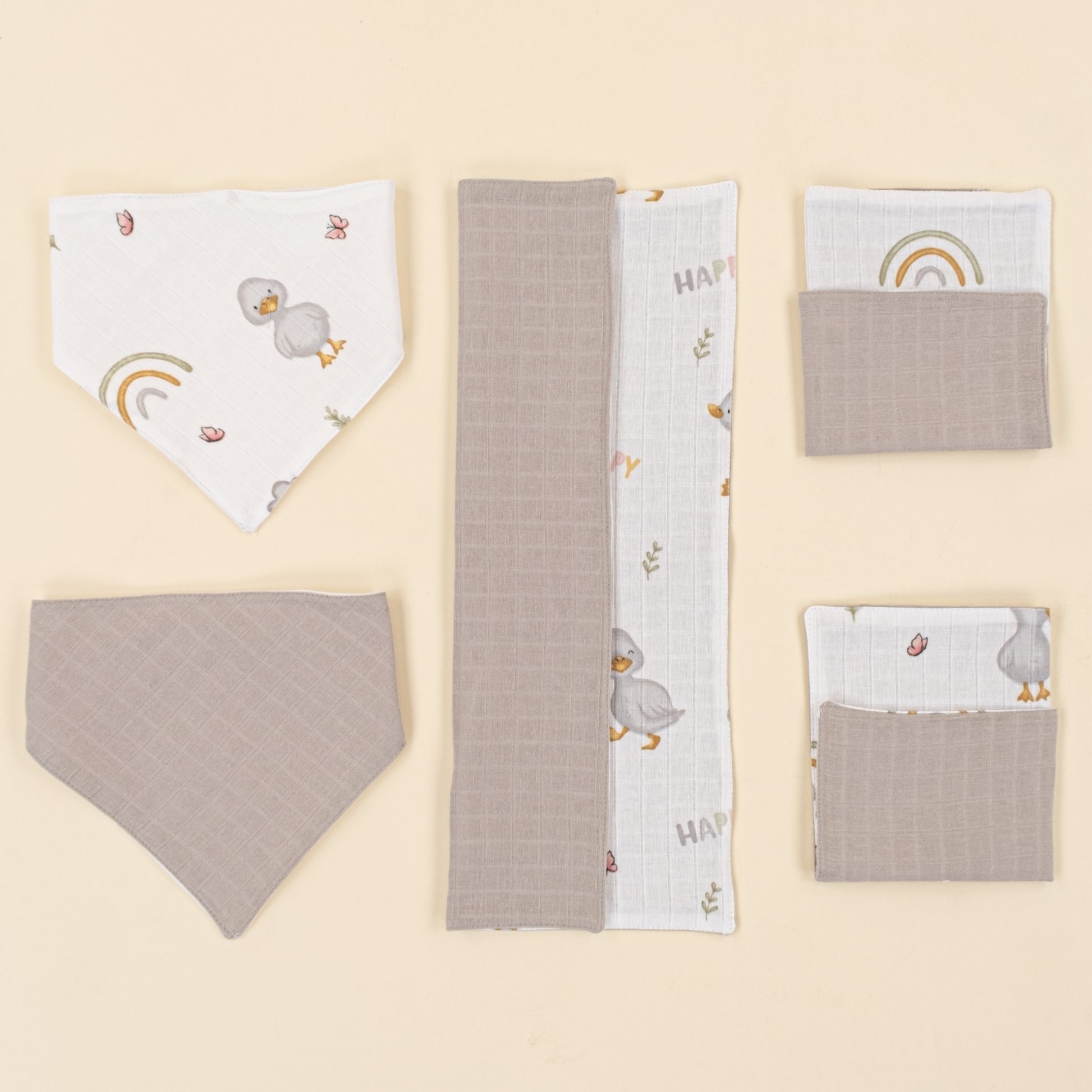 Önlük ve Mendil Seti - Çift Taraflı - Gri Muslin - Ördekler