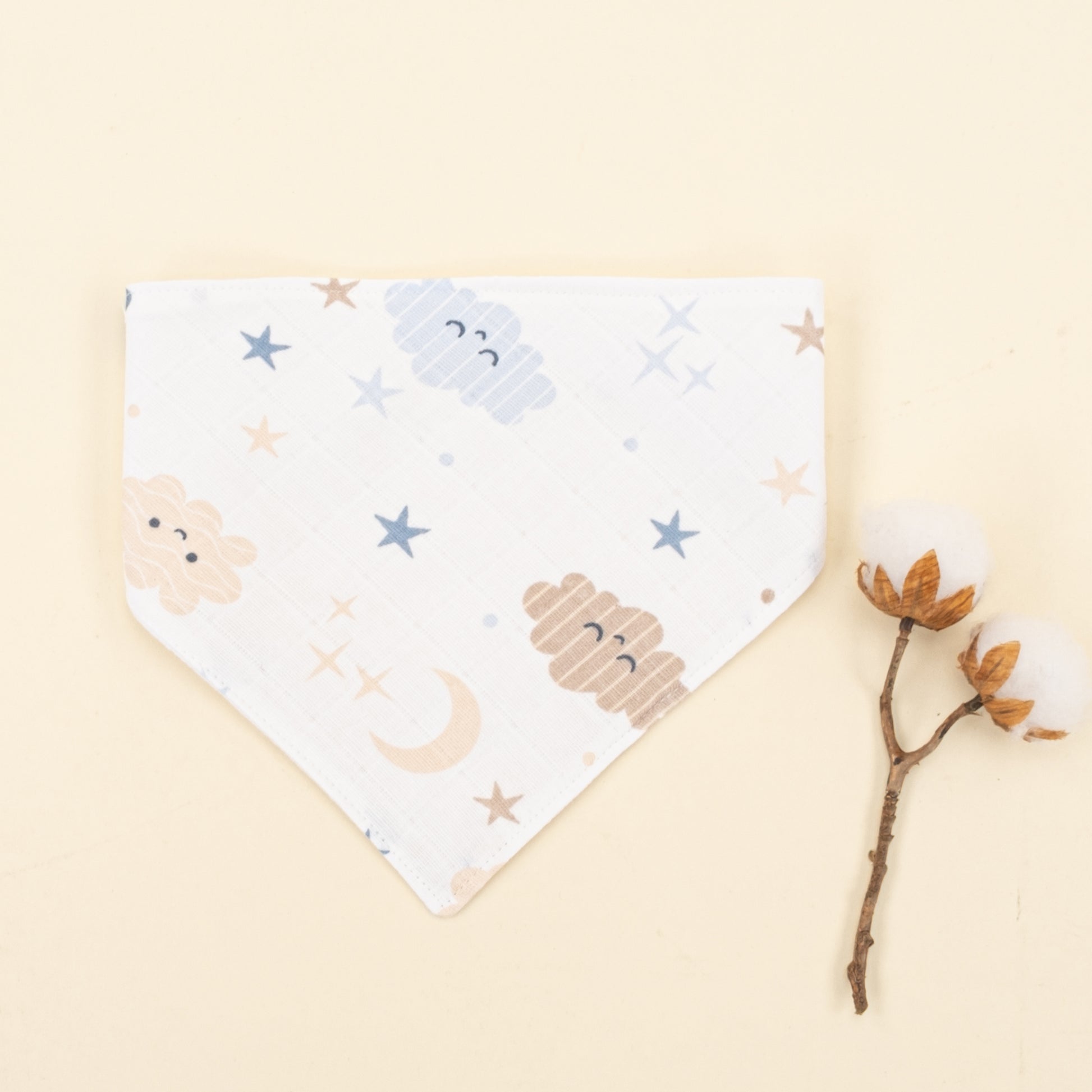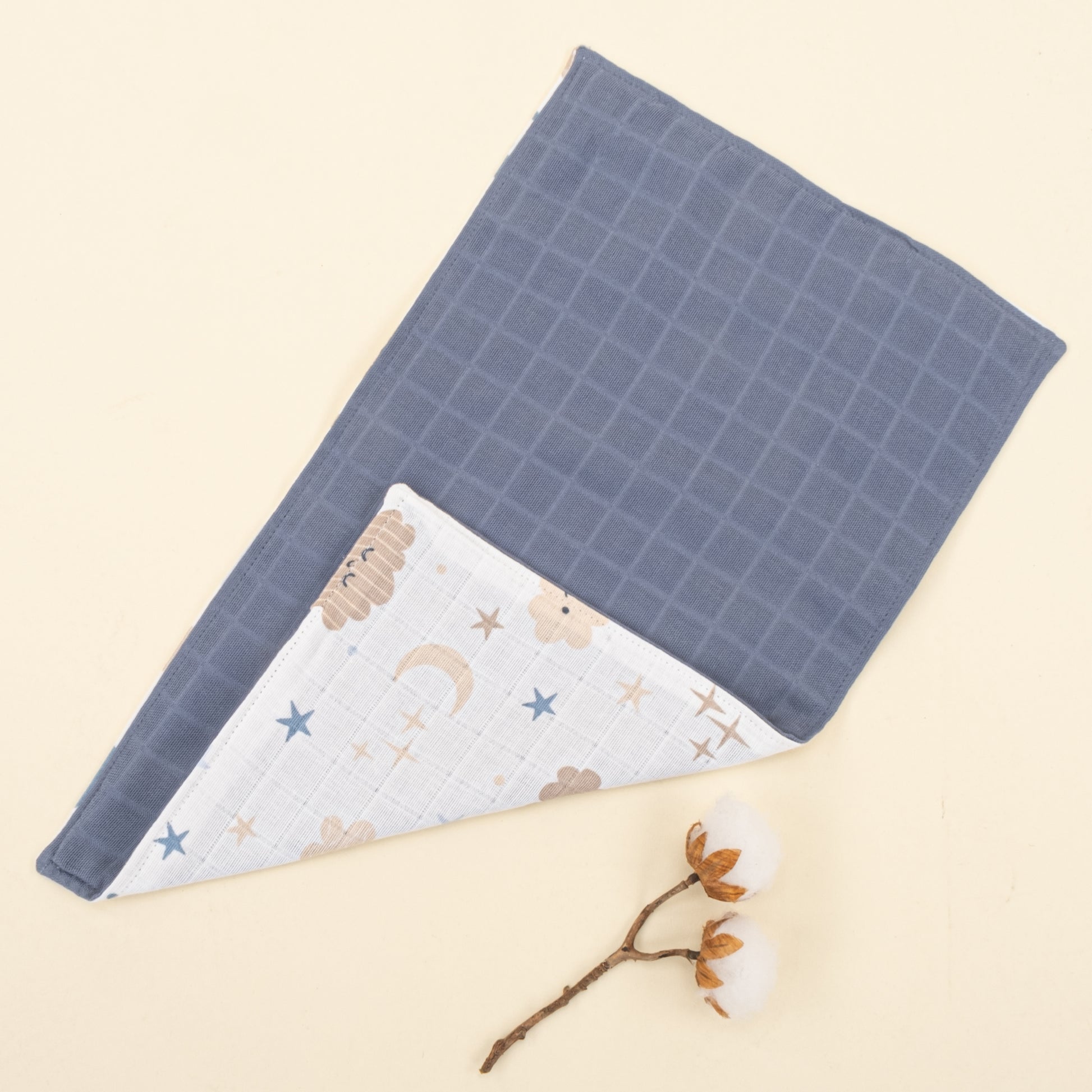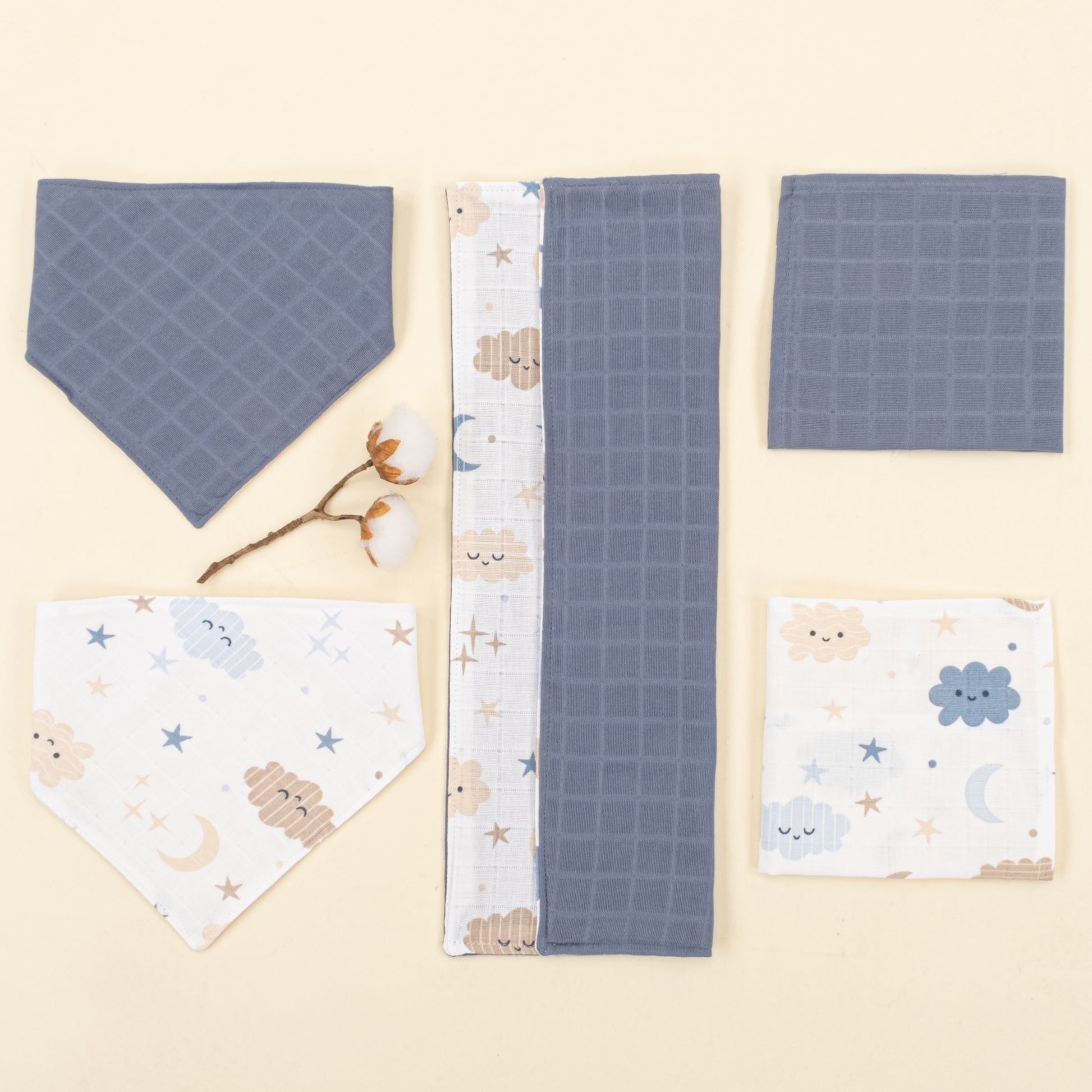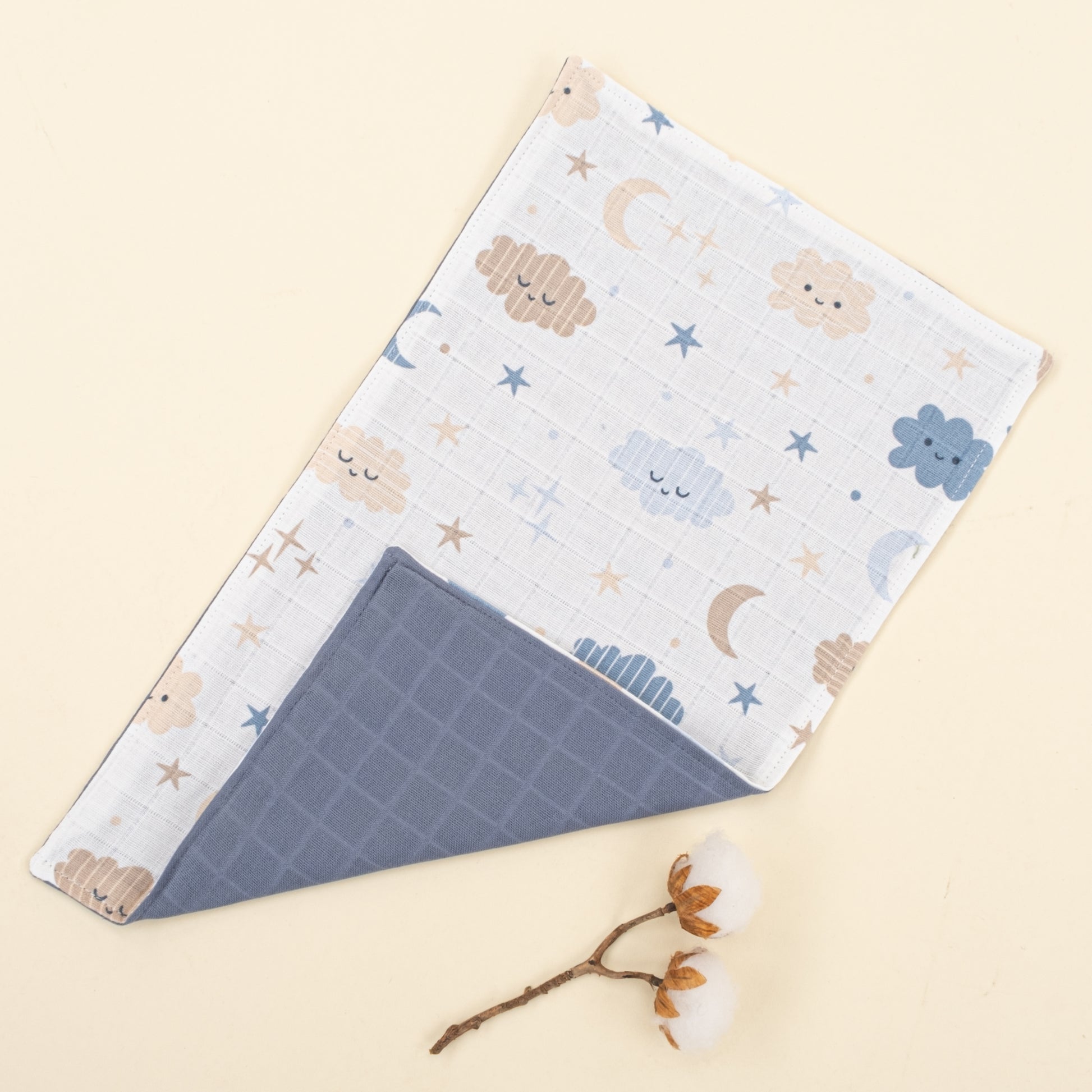 Önlük ve Mendil Seti - Çift Taraflı - İndigo Muslin - Mavi Bulut